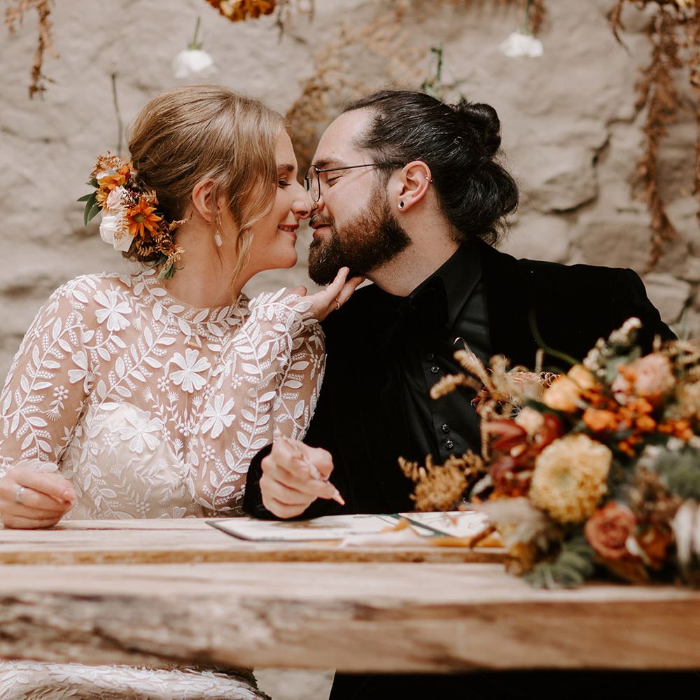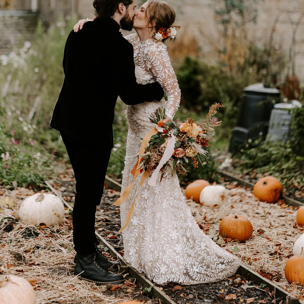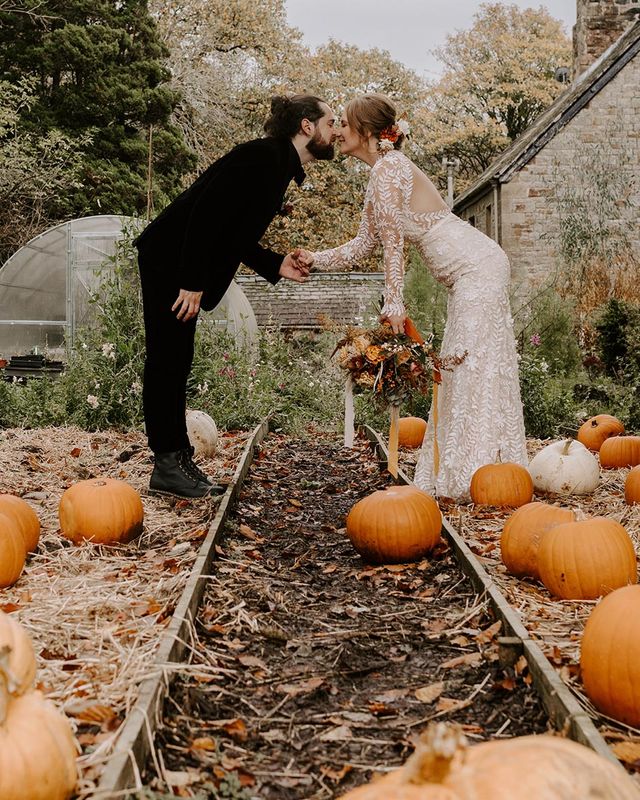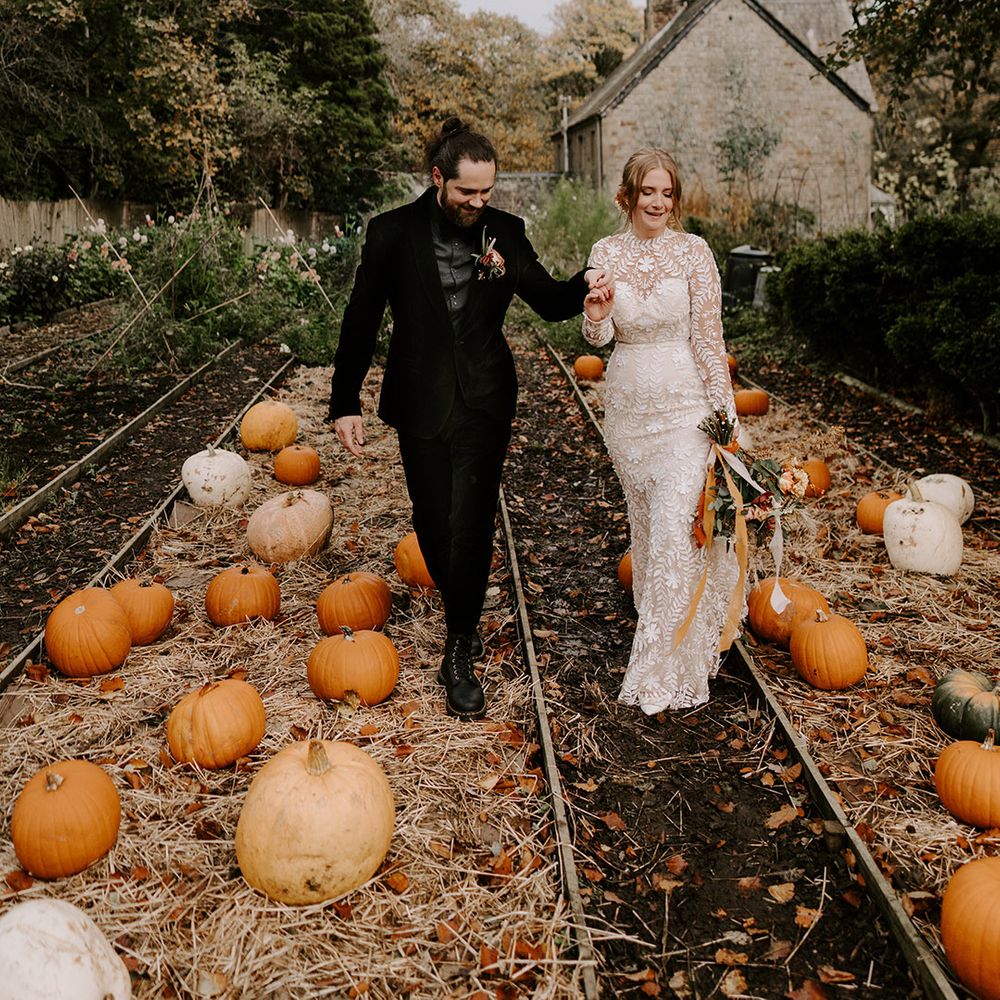 Lesbian Wedding With Pumpkin Wedding Decorations