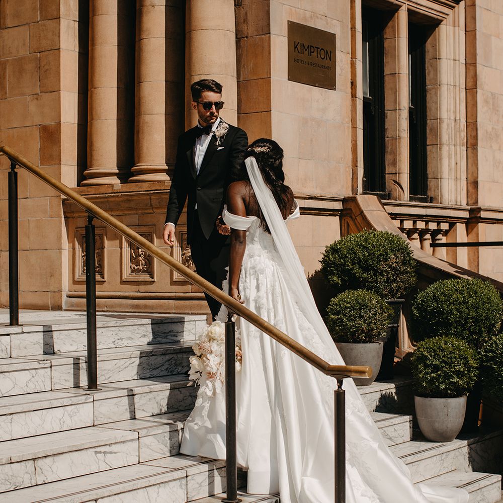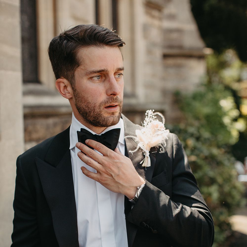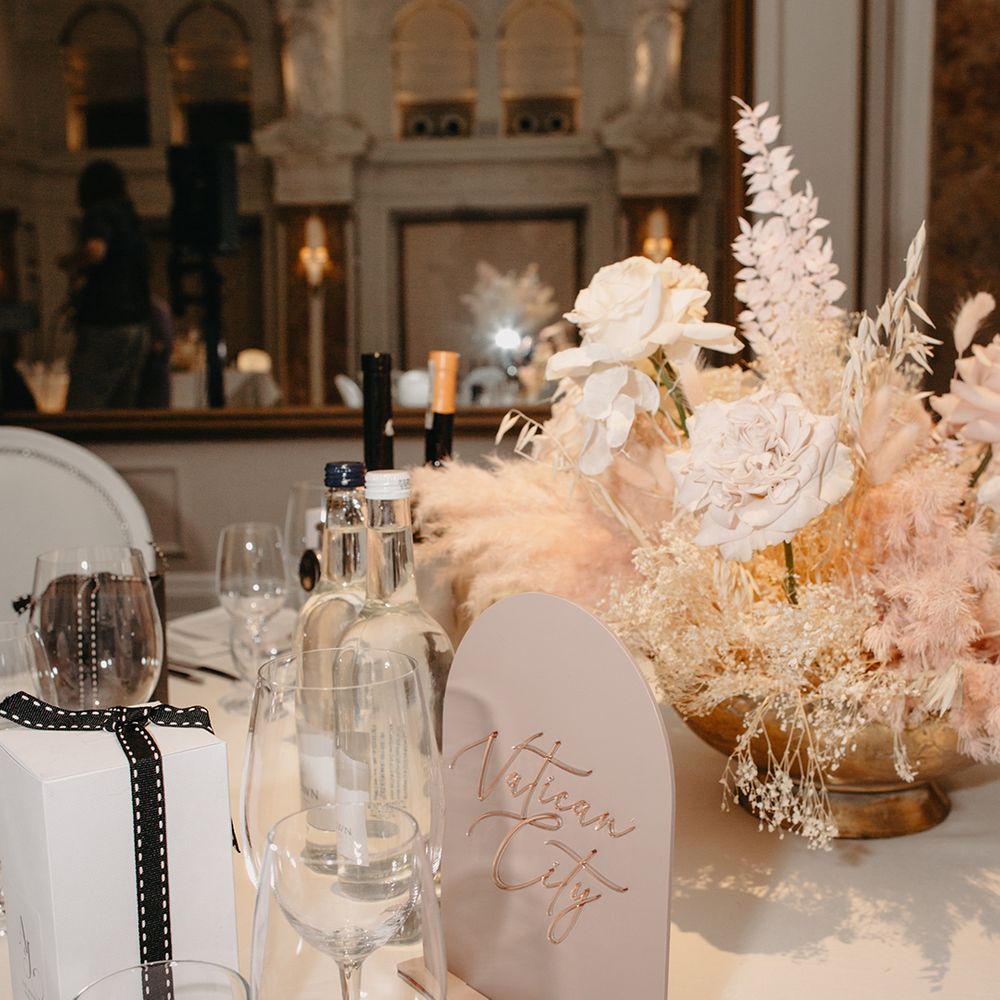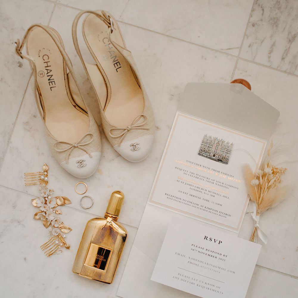 I found it very difficult to decide on a wedding dress because it’s such a big statement. Funnily enough, I actually ended up going with a custom version of the first dress I pinned on my Pinterest board from Leah da Gloria. My fitted off-the-shoulder fitted wedding dress exceeded my expectations and the overskirt was perfect for a bit of drama for the church. I went way over my budget on my dress but lucked out in finding the perfect cathedral chiffon veil for my dress on Etsy for £100. I felt like a princess!
