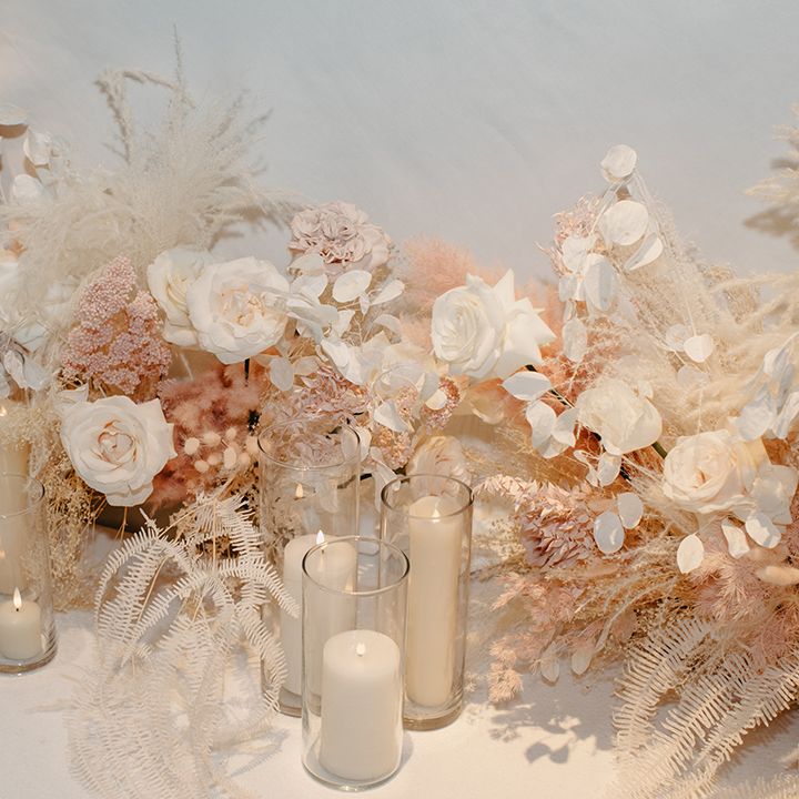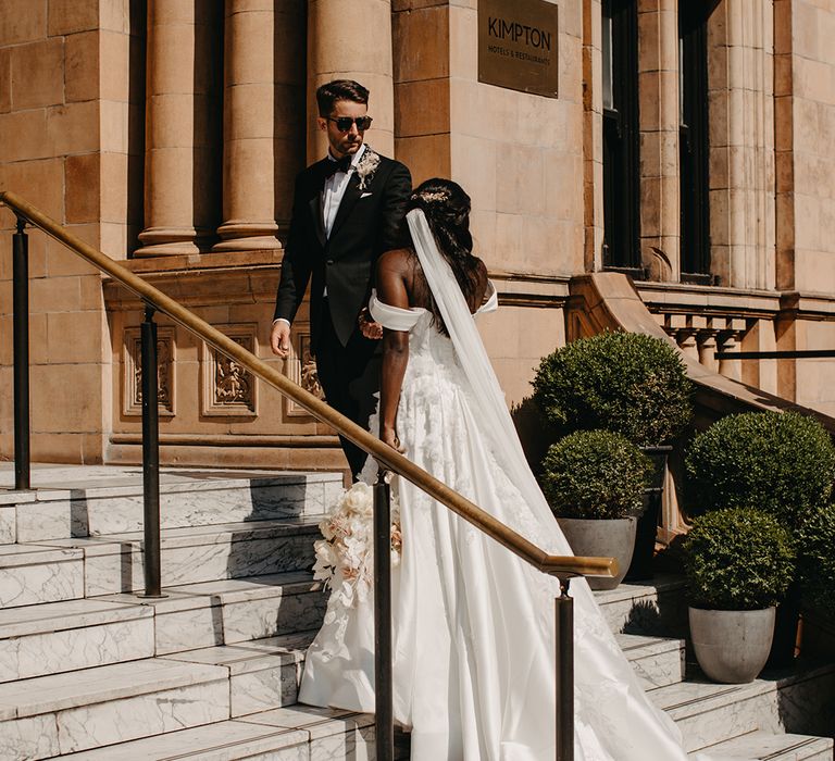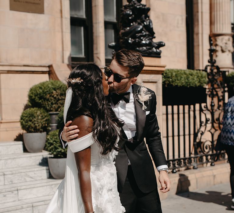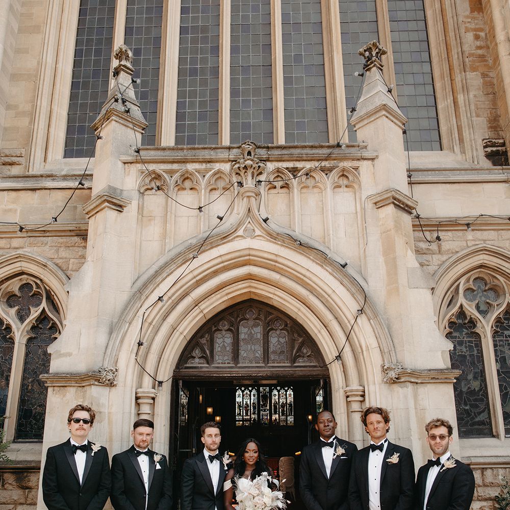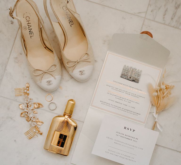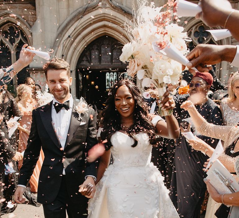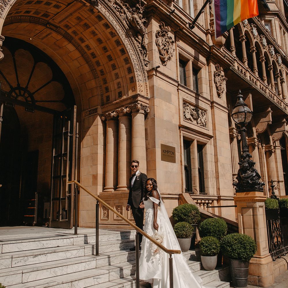 I found it very difficult to decide on a wedding dress because it’s such a big statement. Funnily enough, I actually ended up going with a custom version of the first dress I pinned on my Pinterest board from Leah da Gloria. My fitted off-the-shoulder fitted wedding dress exceeded my expectations and the overskirt was perfect for a bit of drama for the church. I went way over my budget on my dress but lucked out in finding the perfect cathedral chiffon veil for my dress on Etsy for £100. I felt like a princess!