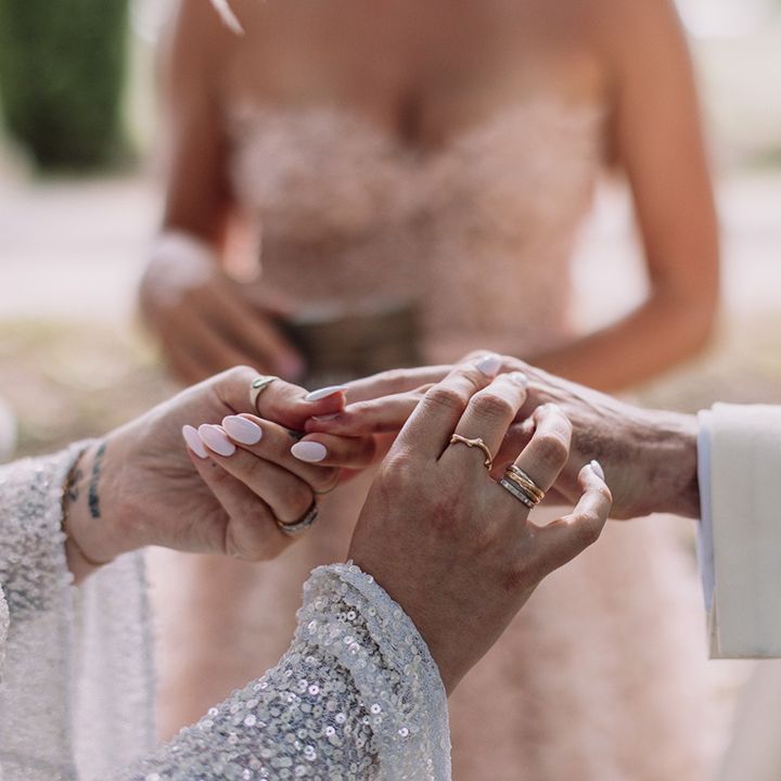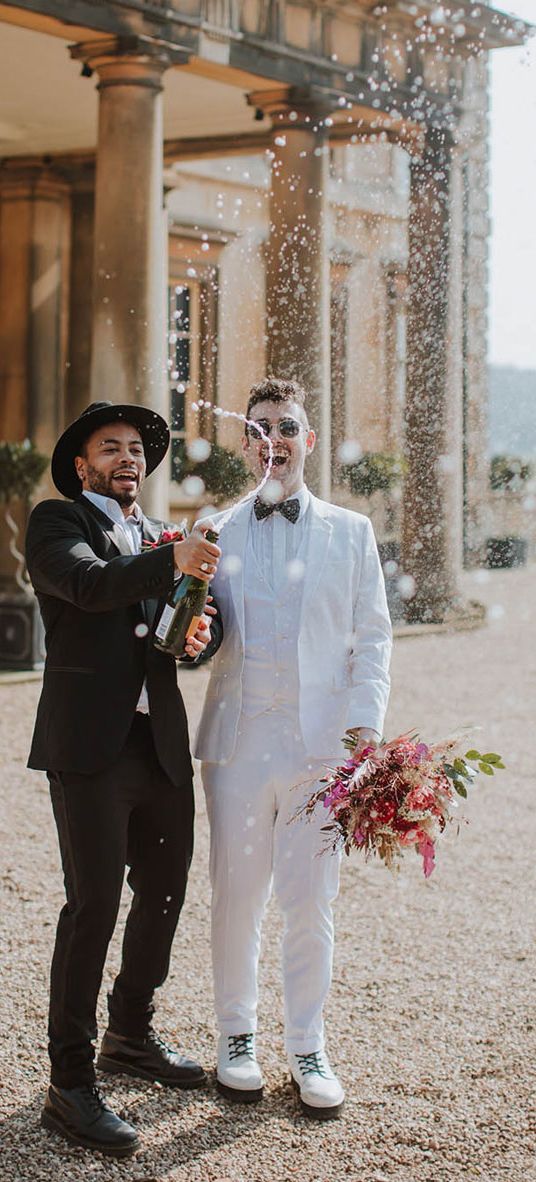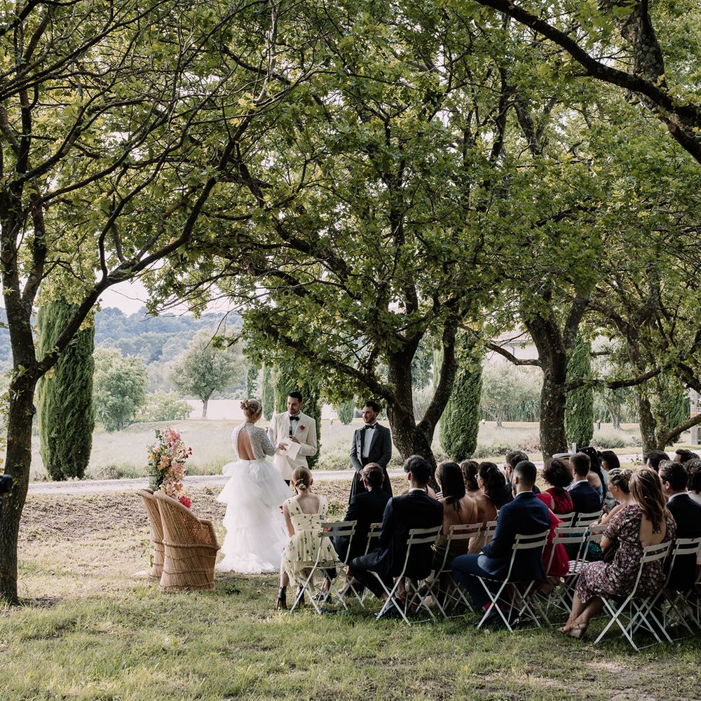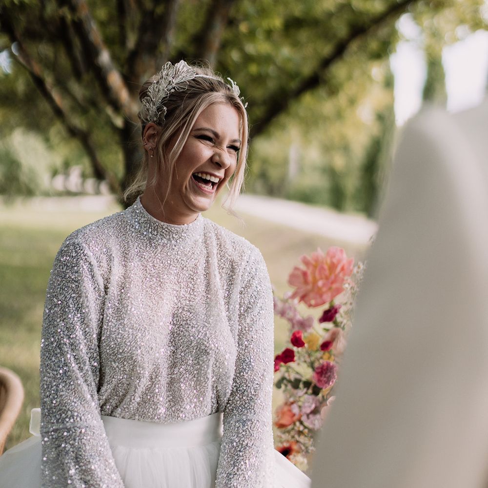 Alix & Raphaël chose to celebrate their wedding day in one of the most memorable ways by choosing The Domaines de Patras for their venue. Built in 1735, the Estate was once a holiday resort for the last kings of France before it was a coaching inn after the Revolution. Completely renovated ten years ago, the Estate has used its luxurious history to show off pure luxurious Provençal tradition. With stunning sparkly bridal separates, an epic champagne spray and iconic flower men, Alix & Raphaël completely nailed the balance of luxury and glamour while still being modern and relaxed. One epic DIY project we have to mention is that the couple wrote their names across many pink heart-shaped sunglasses for the wedding reception, which made for some truly iconic wedding photos!