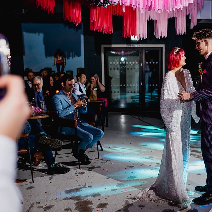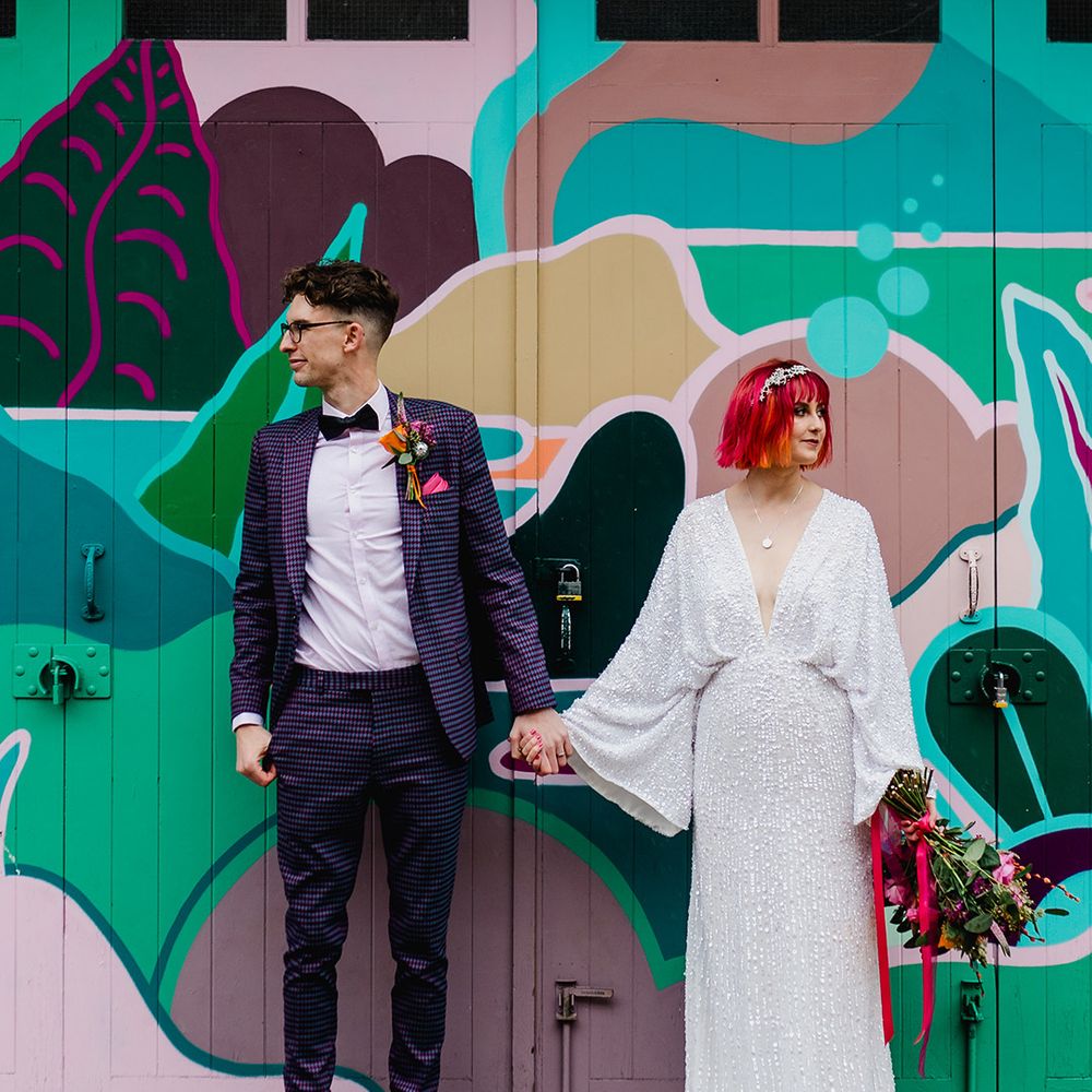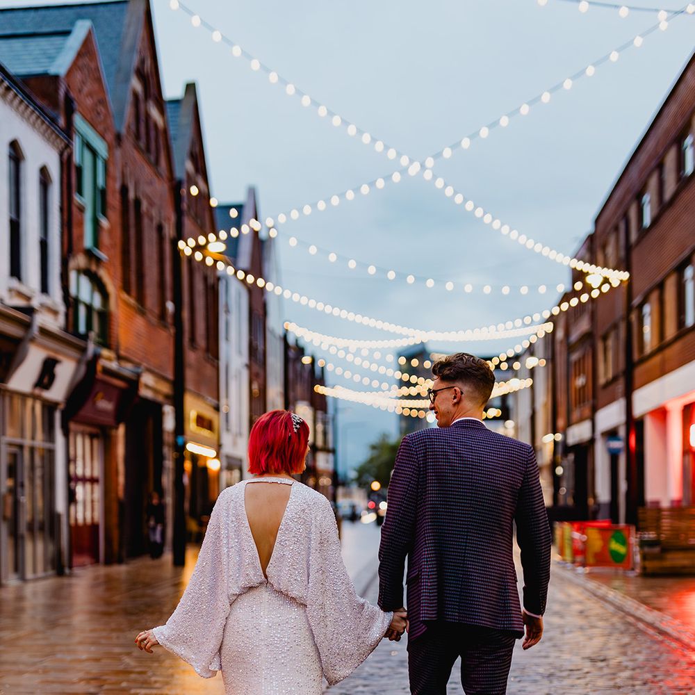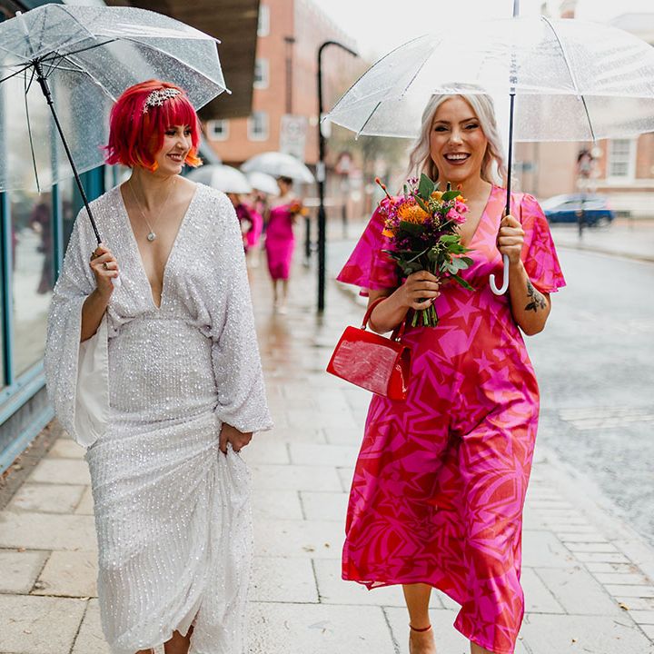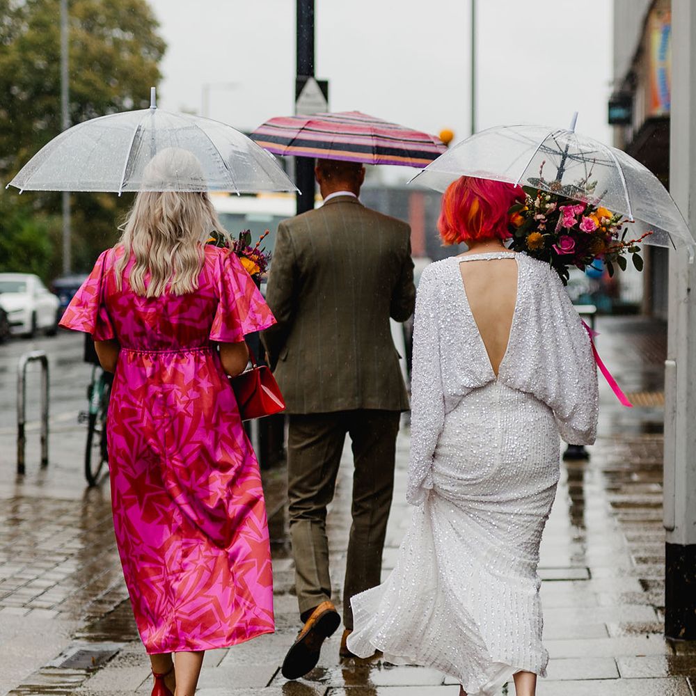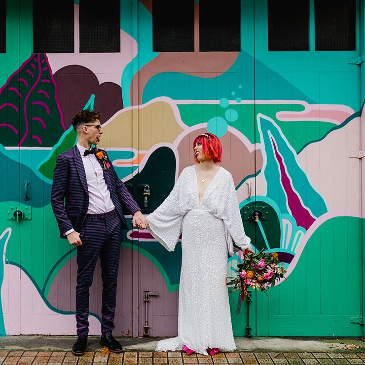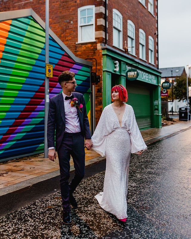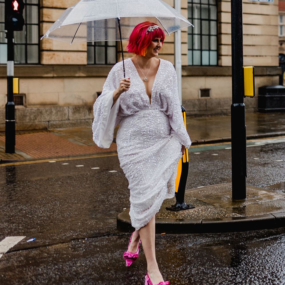 Shop The DressIn between our legal ceremony and all the guests arriving at the reception venue, Dan, our photographer took us all around the scenic spots of the city to take photos, it was absolutely pouring it down which somehow made it more fun, despite all the puddles and wet shoes. We'd like to give a massive thank you to our photographer who just got the exact vibe we wanted, to our venue's team who went above and beyond to help get our vision right and to Luna Moon Events whose streamers elevated the decor to another level.