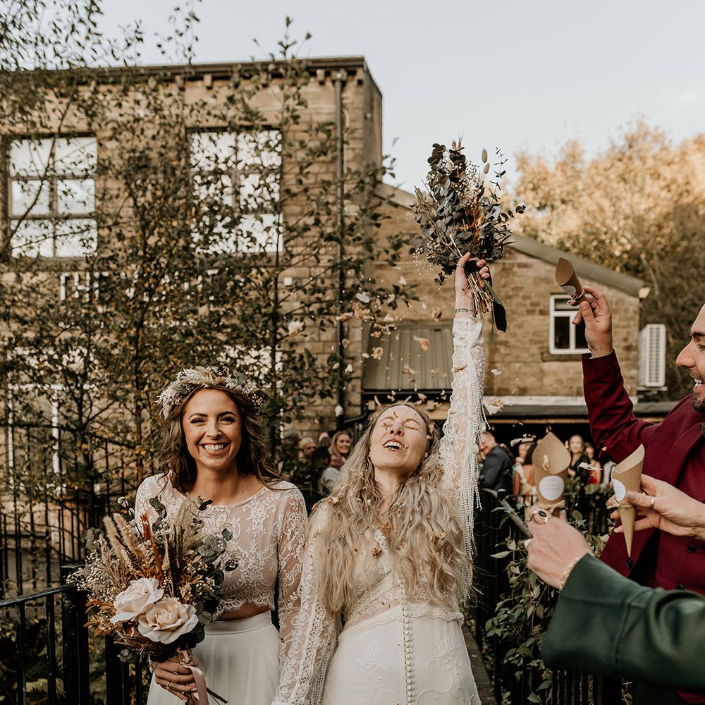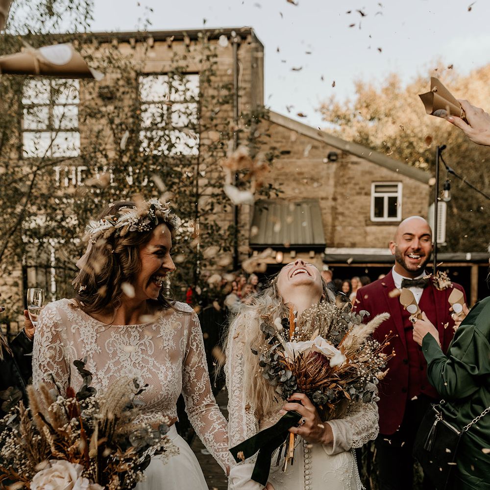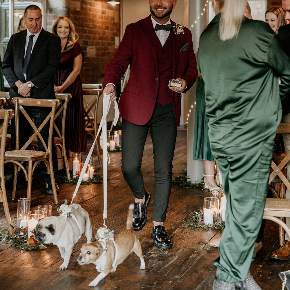 We both agreed on the morning after our wedding at Bowers Mill, that our favourite part of the day was the actual ceremony. We decided at the very beginning we wanted two aisles and for us to walk down the aisle at the same time and meet at the front, the venue set this up perfectly for us! It was also extra special that we had both our dogs as flower girls, we couldn't have said "I Do" without our fur babies being a part of the day.