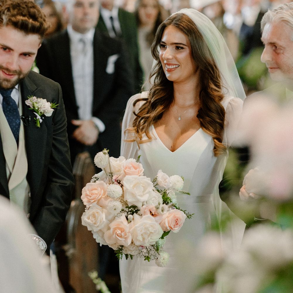 A romantic countryside wedding featuring a soft floral palette, a clear marquee at Hotham Hall, and a heartfelt church ceremony full of personal touches.