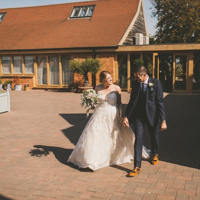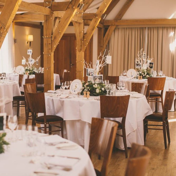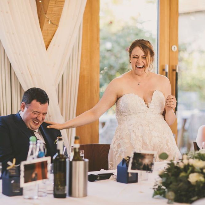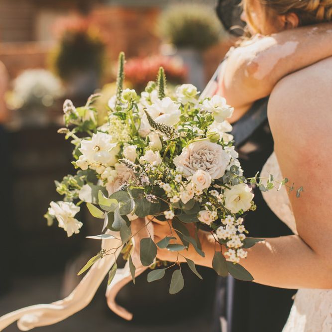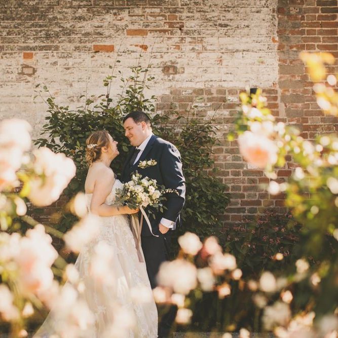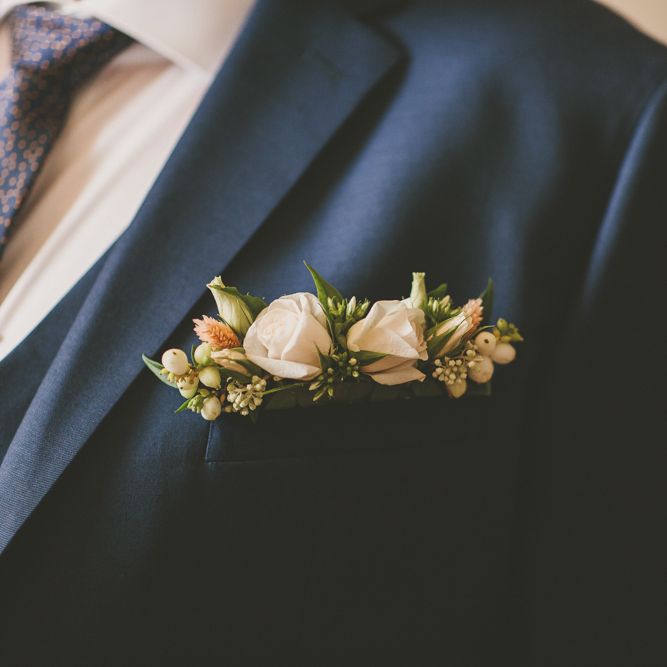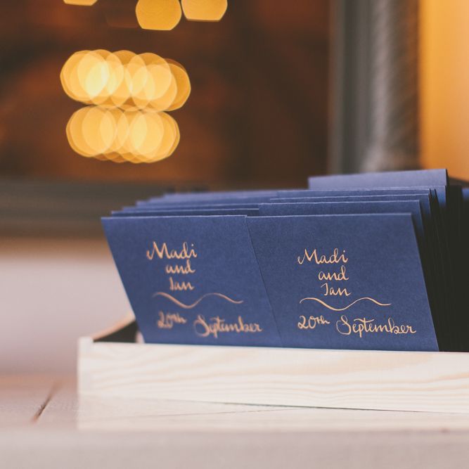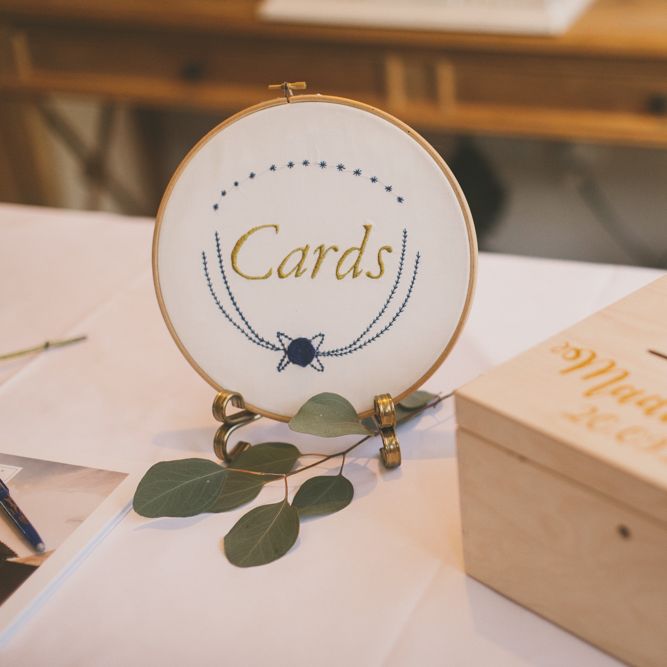 The words we used most often were ‘romantic elegance’ - we didn’t want things to feel overly formal but nor did we want to be too casual. Our suppliers did really beautiful work, making sure that everything looked natural and elegant at the same time; for example not forcing flowers to sit in a particular way but allowing them to fall in a way that showed off how gorgeous they were. We built a lot around the colours of navy, cream and gold - partly inspired by some materials Madi had lying around to embroider our table numbers!