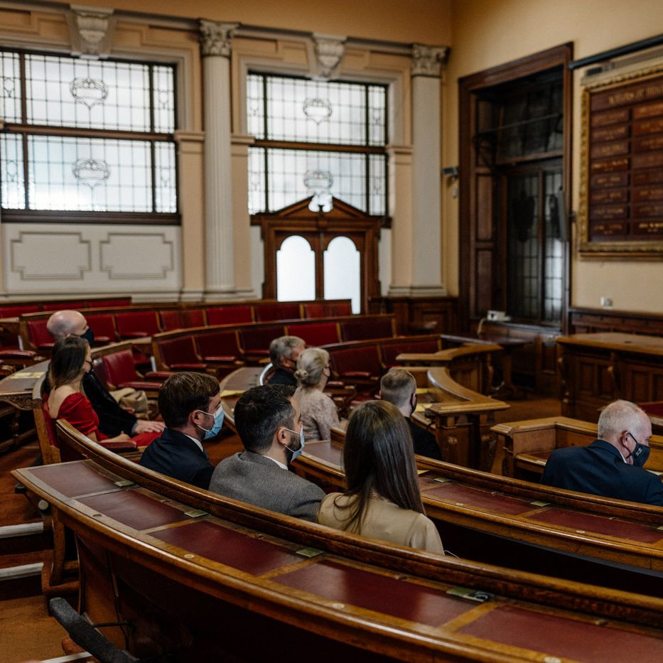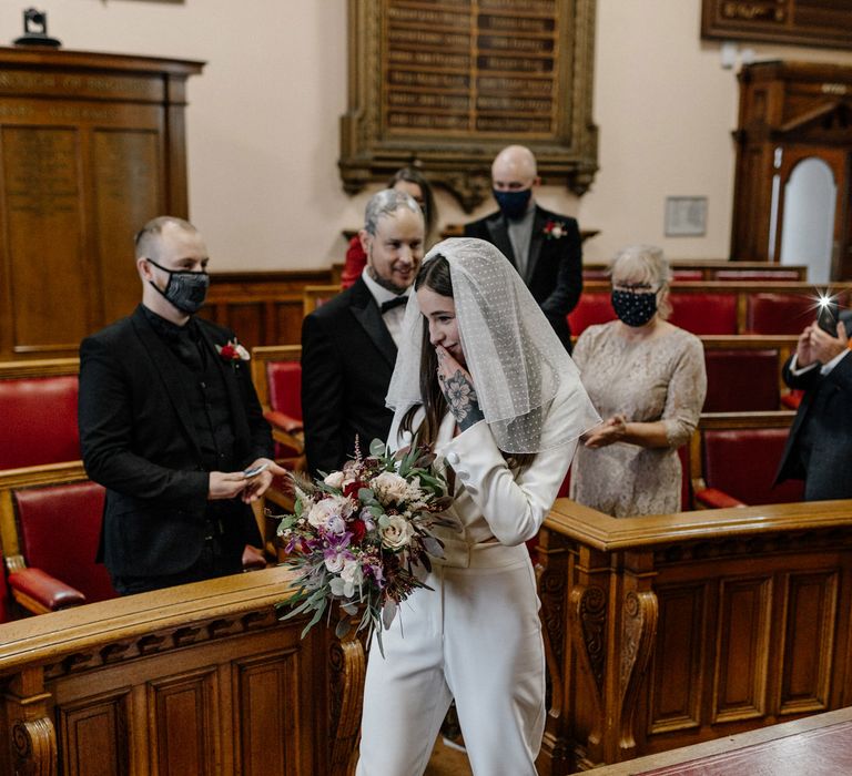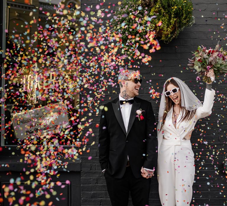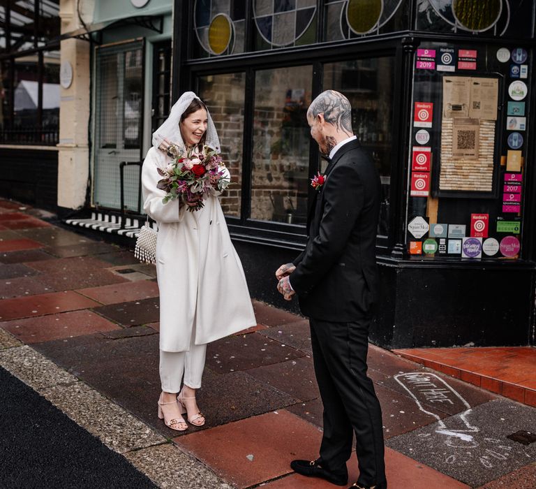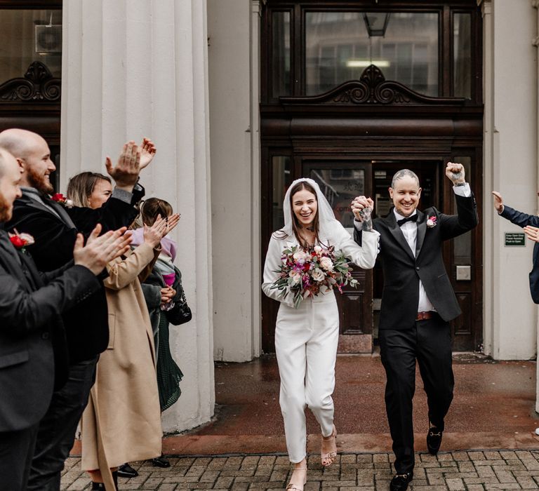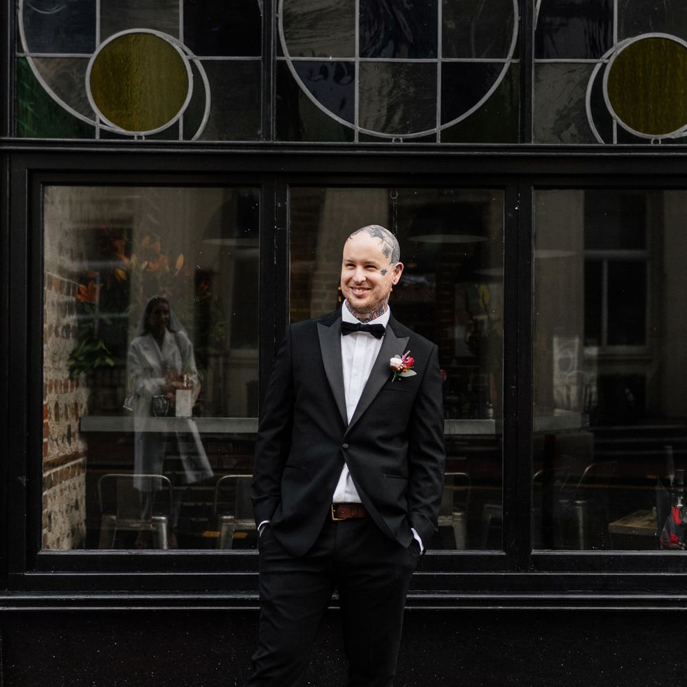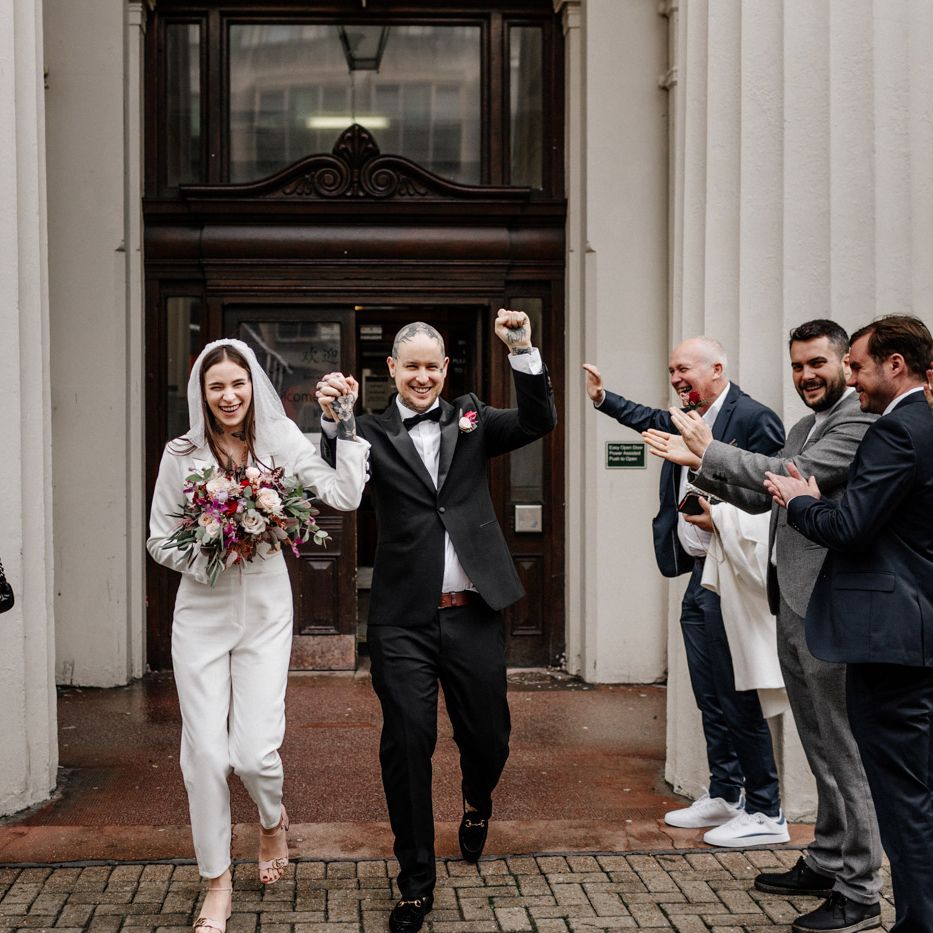 Hackney Town Hall Micro Wedding with Taco Food Truck & Pink Suit
