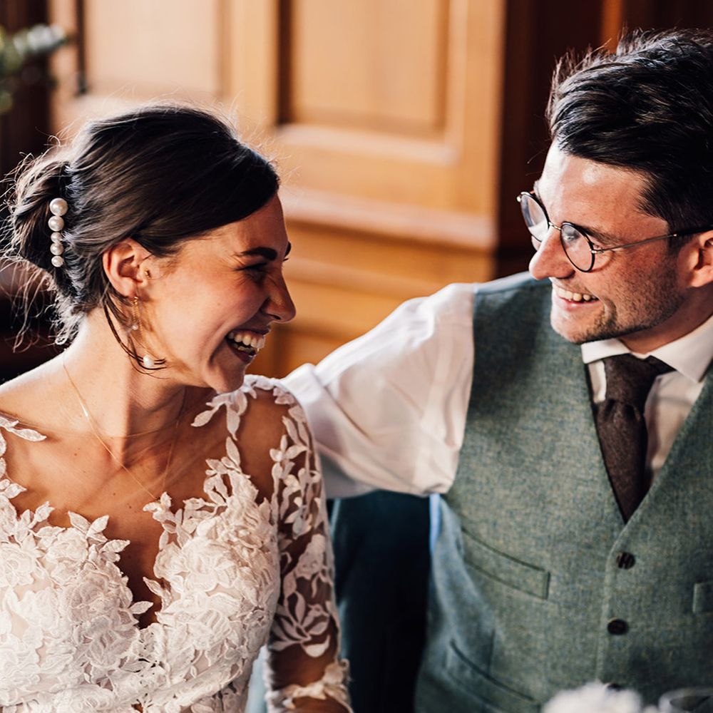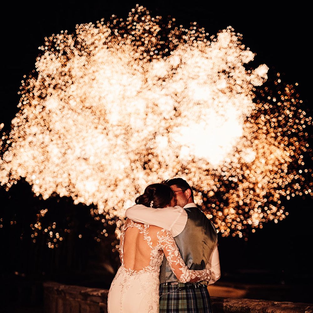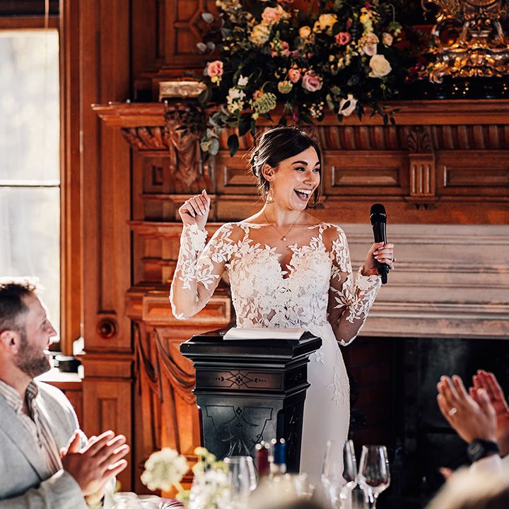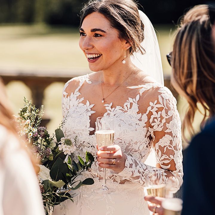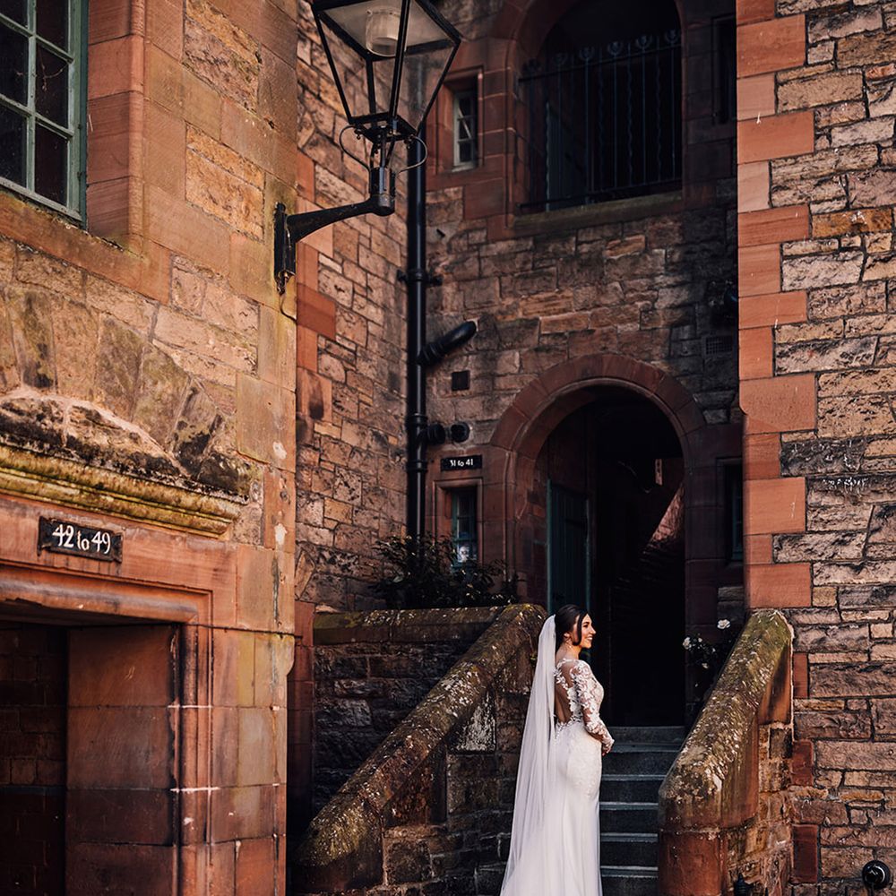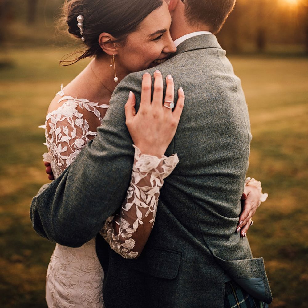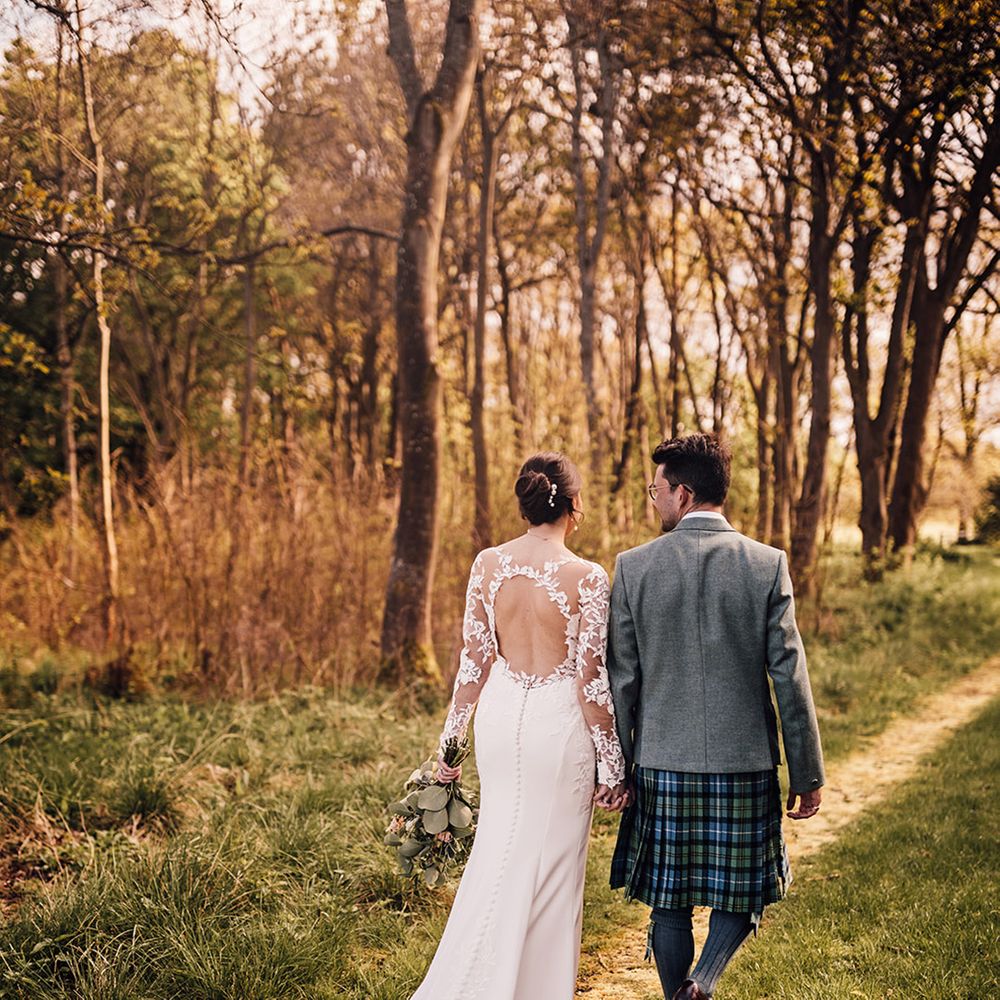 Bryony & Andrew’s wedding day can be described as traditional vintage luxury. The couple wanted to celebrate their Scottish roots woven with parts of their personalities and shared experiences. They decided Barnbougle Castle was the perfect choice for them as the venue is full of unique and charming character. That being said, despite the luxury vibes of the castle, they still aimed for a relaxed and fun-loving vibe. For decor, Bryony & Andrew kept things traditional with white flowers and lots of foliage. The bridesmaids also looked so elegant in navy blue bridesmaid dresses. For the evening, the bridesmaids and groomsmen, along with the incredible band, were amazing at keeping the dance floor jumping all night long. Bryony & Andrew’s first dance was a ceilidh dance that included all of our friends and family and also really helped get the party started.