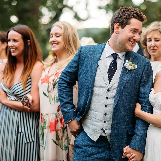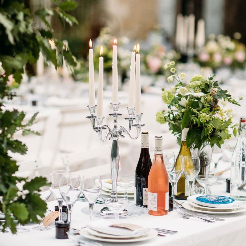 We wanted a relaxed fun vibe for our day, with the amazing help of Emma we created a soft, pale, floaty, romantic feel. For the tables we wanted everything to twinkle, we had cut glass, candelabras and lots of different sized vases with flowers running down the centre of the tables, it was loose and floaty but still felt modern. I love peonies and wanted them to be our main flower, Emma paired them with natural flowers, blush pinks, greens and creams. We had Festoon lights hanging in the courtyard and we wanted candles everywhere. It was just perfect and better than we could have ever imagined, it really was the most special day of our lives.