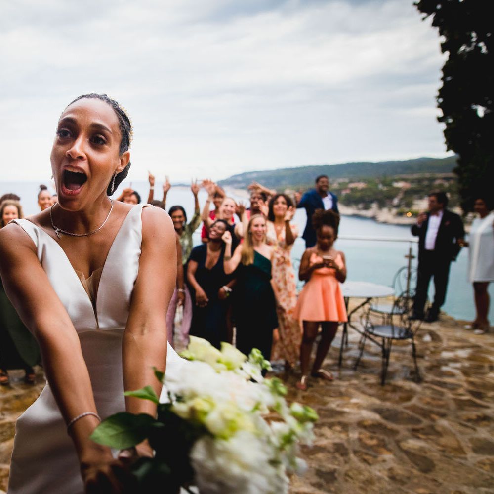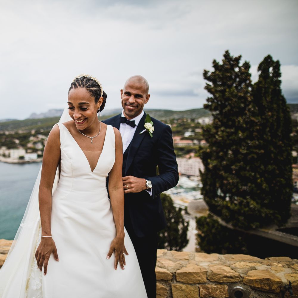 We wanted a wedding that felt sunny, festive, fun and warm, just like Guadalope. It's where we met and were both born. That's why we chose to marry at Chateau de Cassis in sunny South of France. We wanted a classy venue, but with fun vendors for the reception. We had a famous Guadeloupean singer and Ragga dancehall DJ, and a photographer/videographer duo to capture the party atmosphere. It was so much fun - dancing, cocktails, the party and the next-day pool party were amazing!