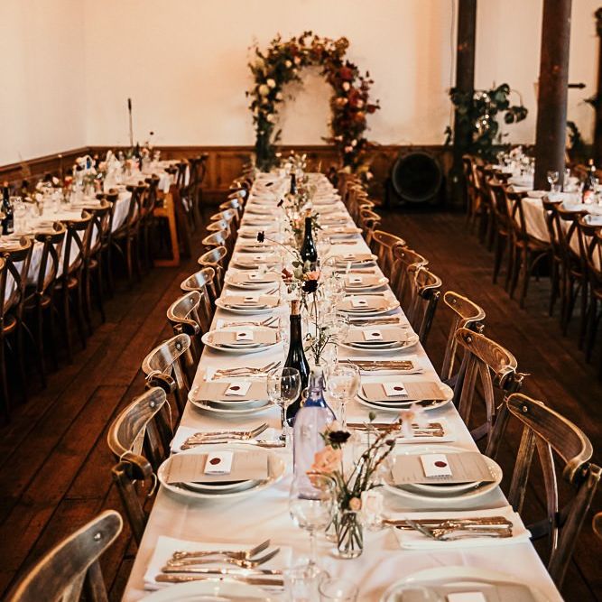 We wanted a relaxed feel to the whole day and we wanted our guests to feel comfortable from start to finish. The venue is stripped back but absolutely beautiful so we did not want to overfill it and hide its natural charm. Design by Nature worked closely with us to ensure that we did just that by creating the most stunning and unique floral installations which were the central part of our styling. In the evening we just wanted it to feel like a big party with our guests doing what we love - drinking, socialising and celebrating. We only needed a select few suppliers and we chose those that were either close to our hearts, recommended or local to our home and the venue. We wanted to source as much from small and local businesses as we possibly could.