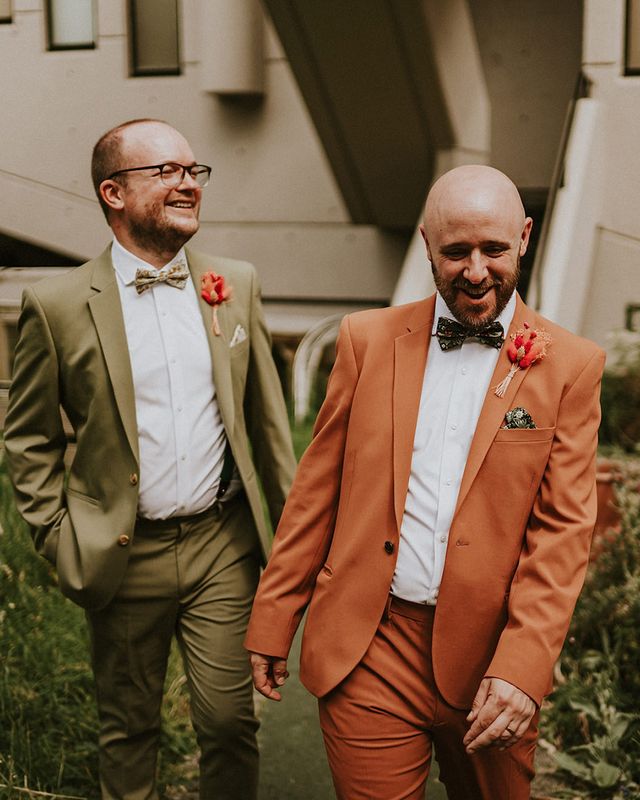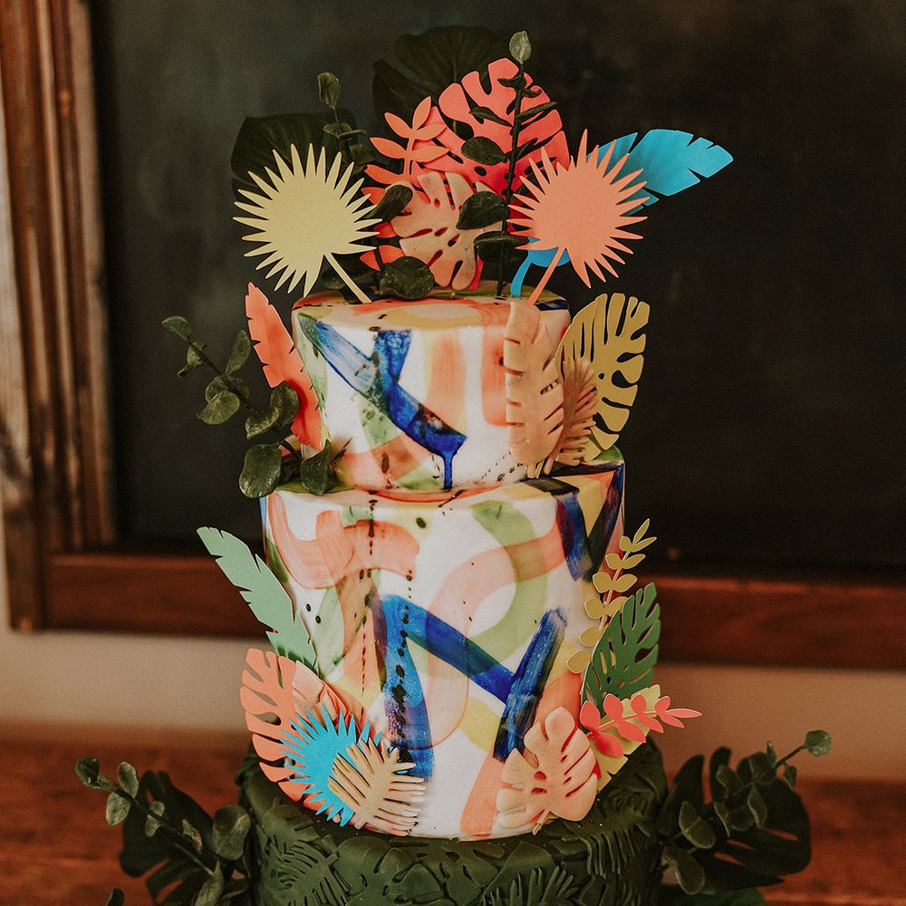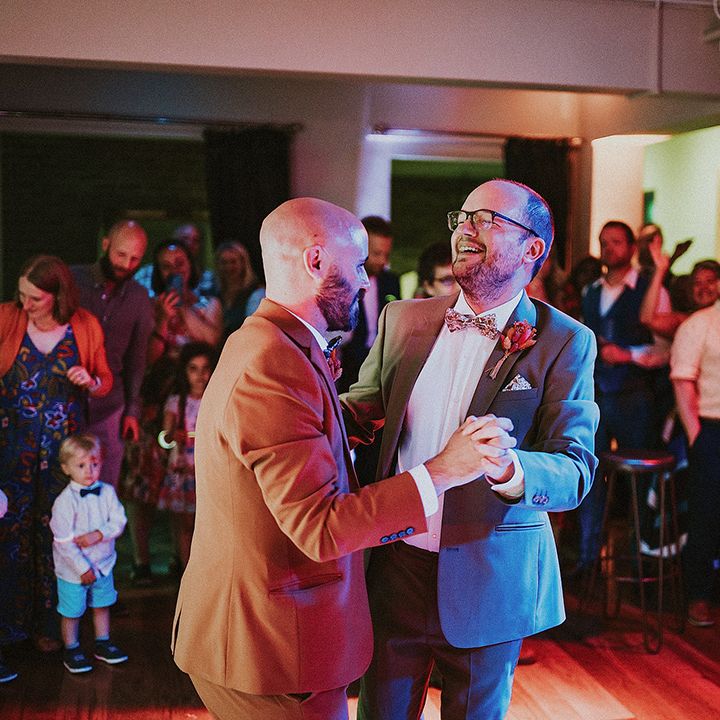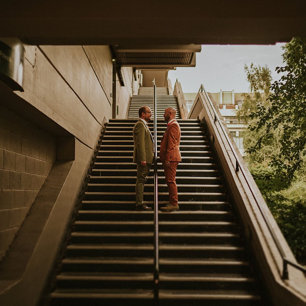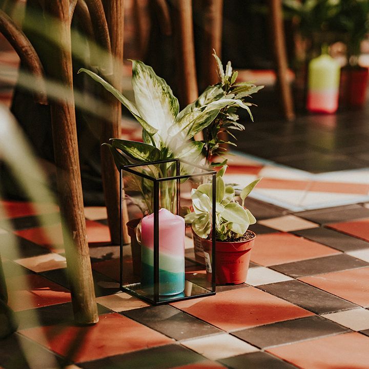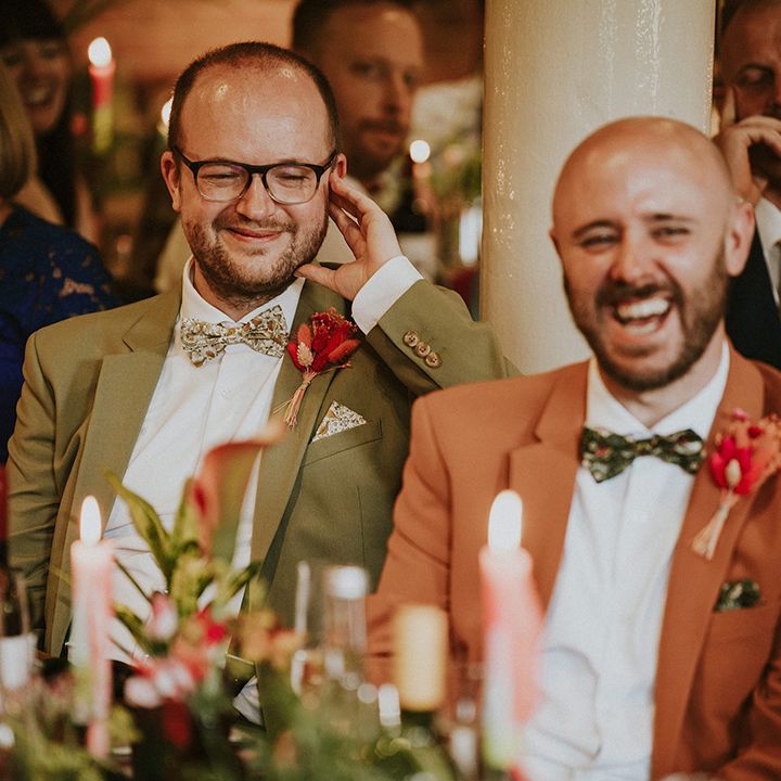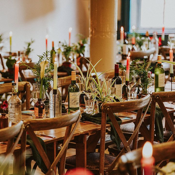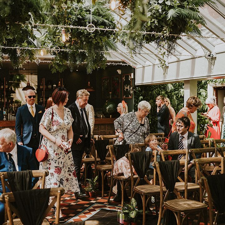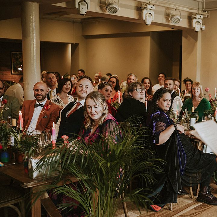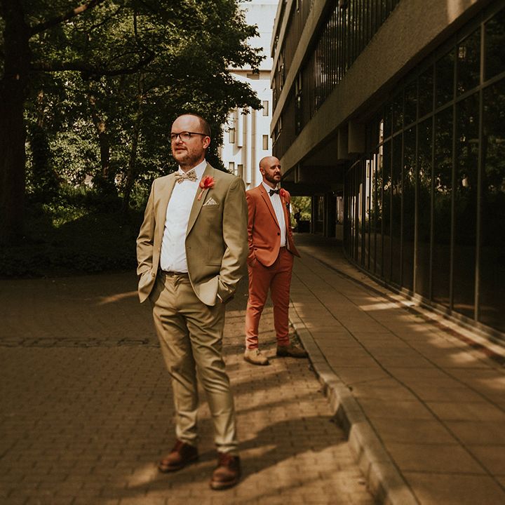 A vibrant wedding bursting with plants, personal touches, and a neon twist. Discover inspiration for colourful suits, DIY florals, and bold wedding style.