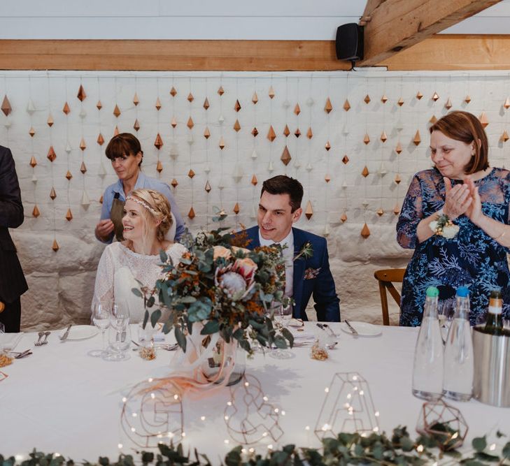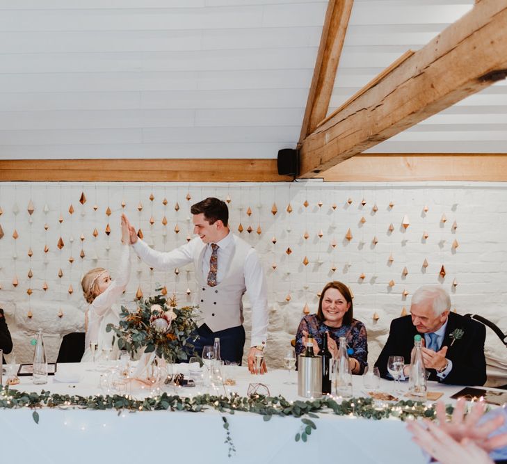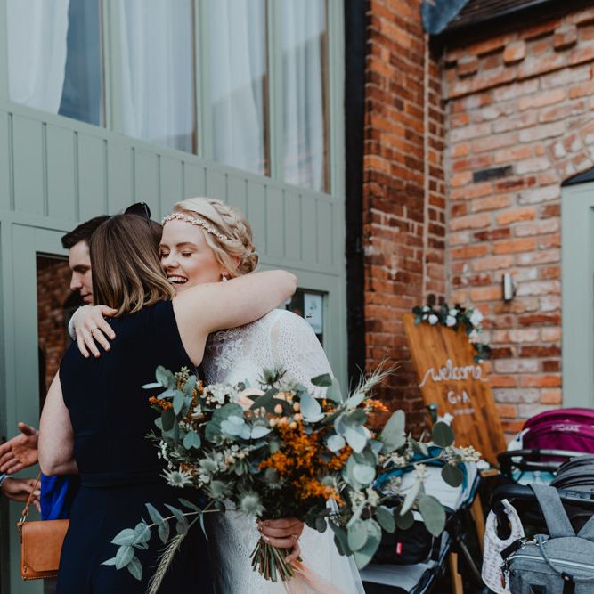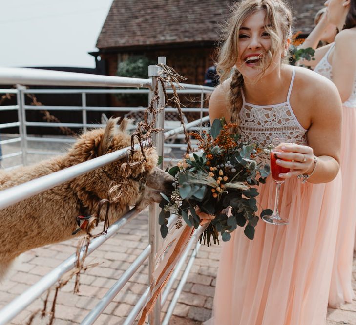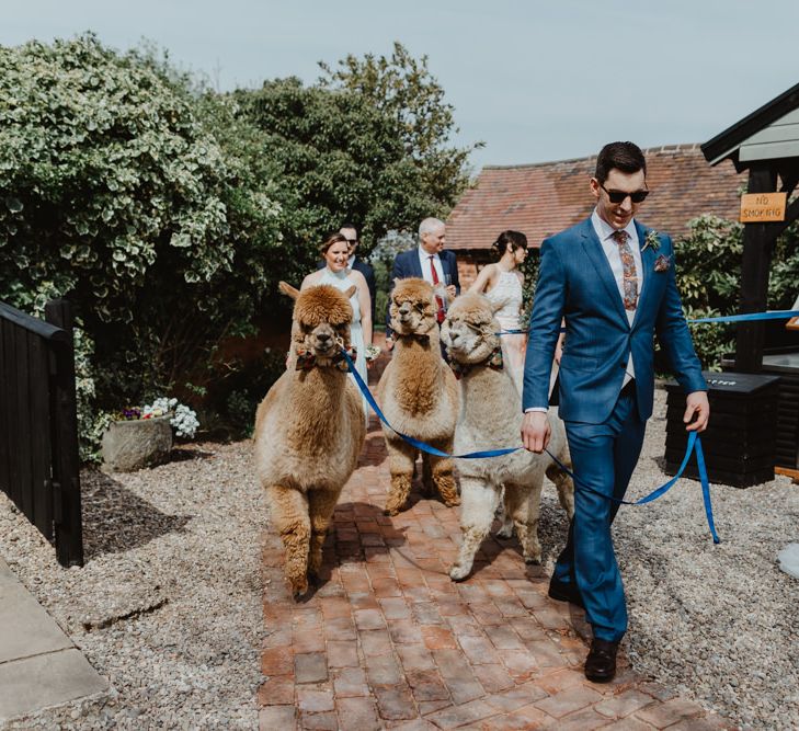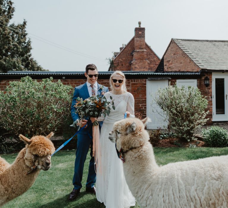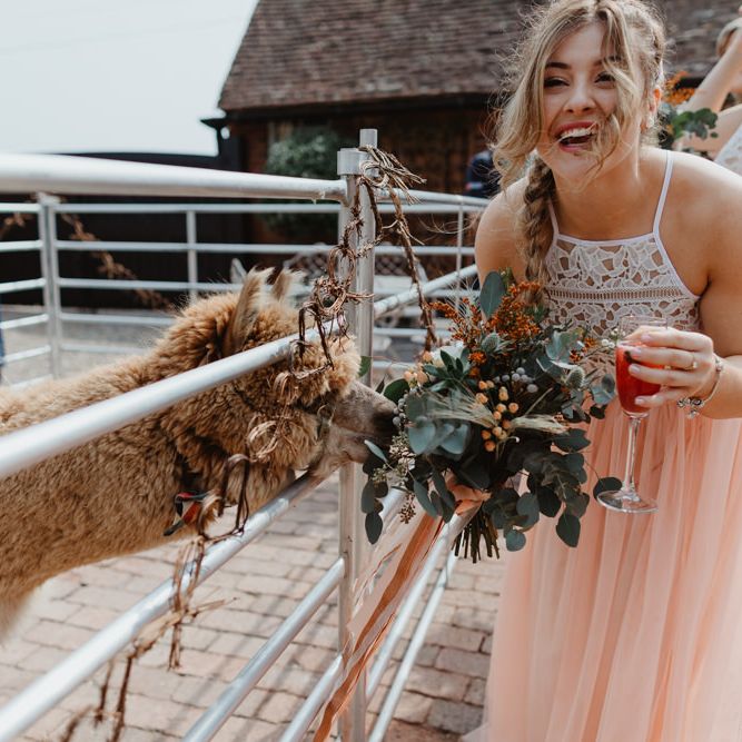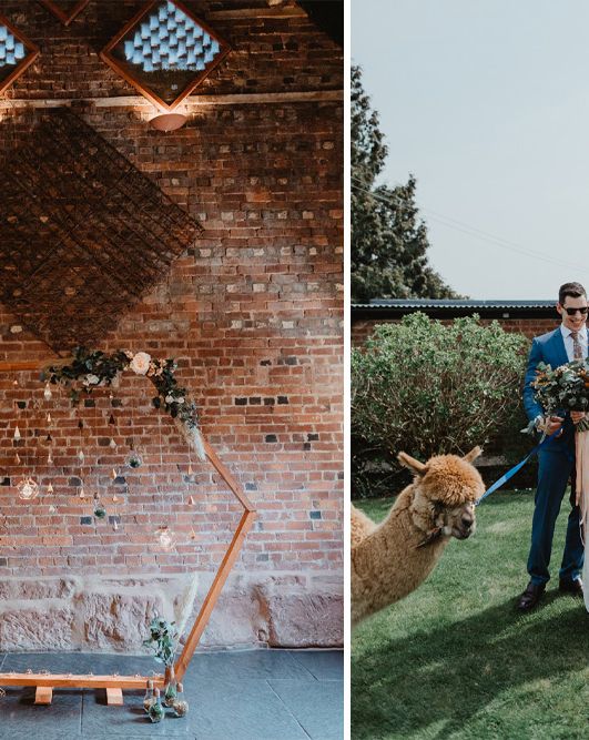 Our guests all expressed how unique the ceremony was, as it was led by friends and not a typical registrar. It was all about us, and we didn't care if this went against tradition. We got legally married a few weeks before the 'Big Day' so we could have our actual wedding exactly the way we wanted. The homemade touches, such as hand-drawn place cards for each guest, and the arbour, made it really personal, and the wacky bits like the alpacas and the pinata reflected who we are, and the fun we have in our relationship.