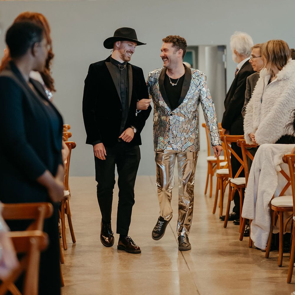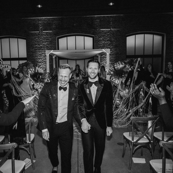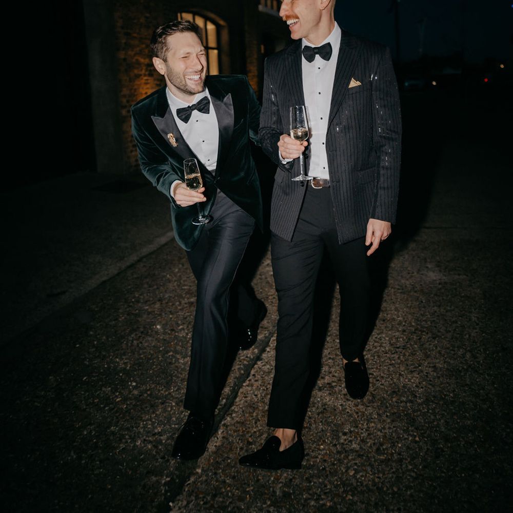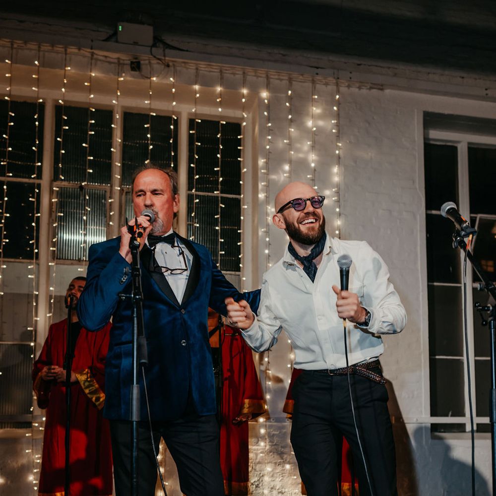 The day was a fusion of everything we are and love: a diy-queer-jewish-welsh-musical-pop culture- glamour-karaoke-shawarma-fest! We wanted the day to be filled with so much love and for every single one of our guests to have the best time. We made sure to have personal touches throughout: self-written vows, friends and family performing, doing readings, writing the ceremony, baking, and personal speeches - it was a magical day we will never forget.
