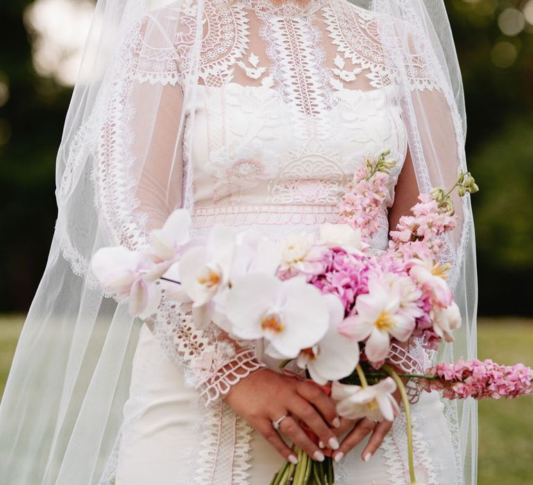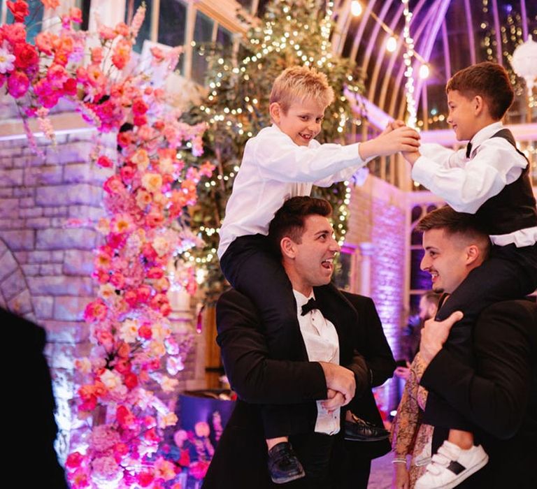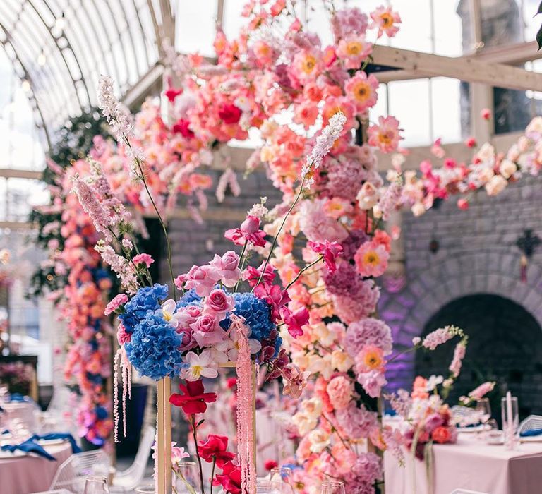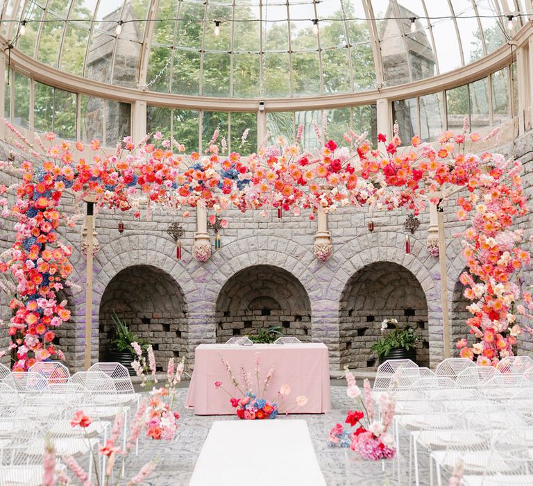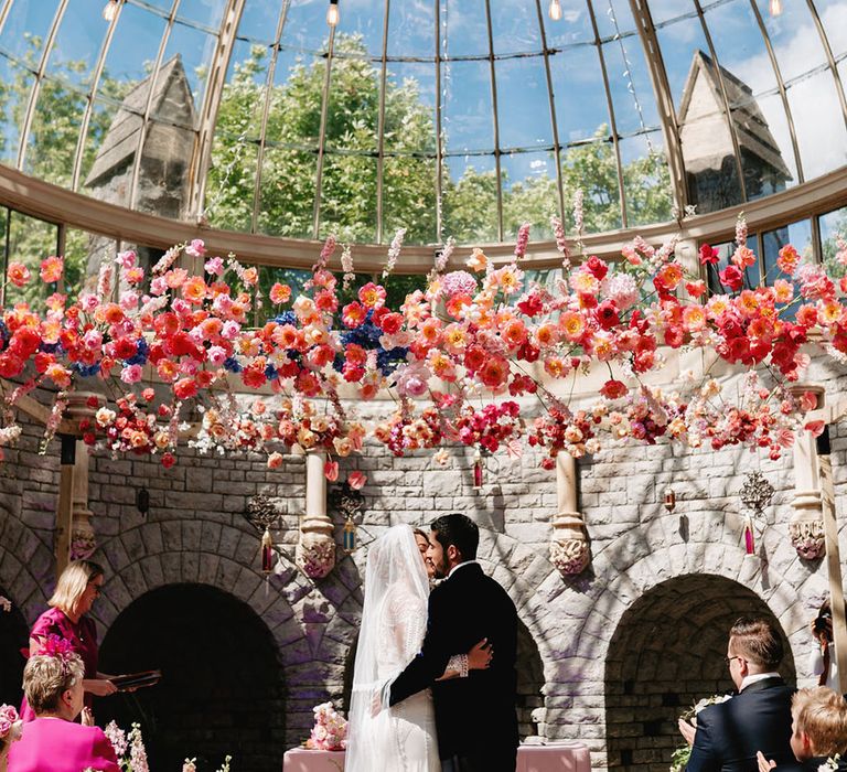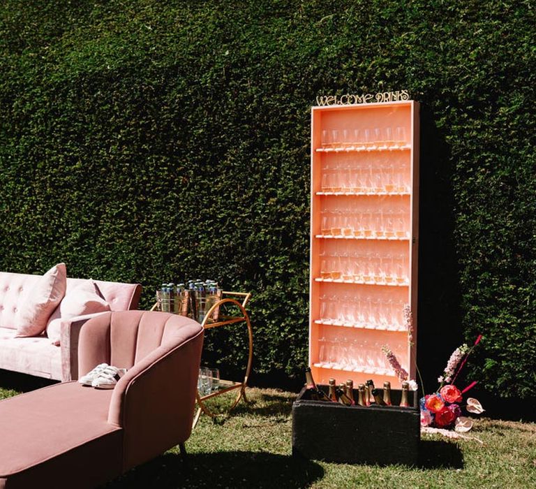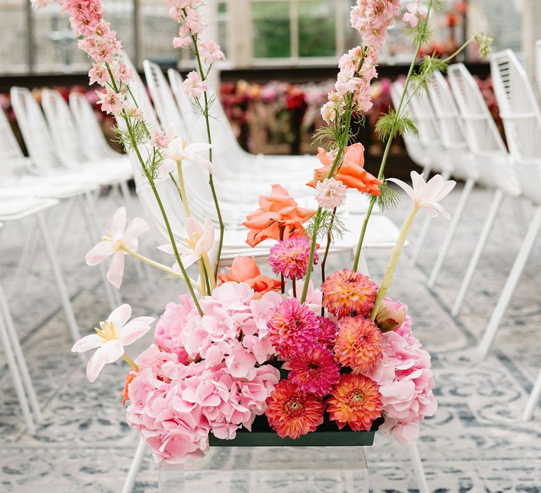 I love peonies so there was an abundance of them around our cabana that framed our ceremony and then we later moved them to frame our top table. Finally, the floral arrangement was the stage for our amazing DJ who we danced in front of, all of which made for incredible photographs to remember forever. It was a big feature for our wedding and had that "WOW!" factor when you walked into the vast glass space of the Orangery at our Tortworth Court wedding.