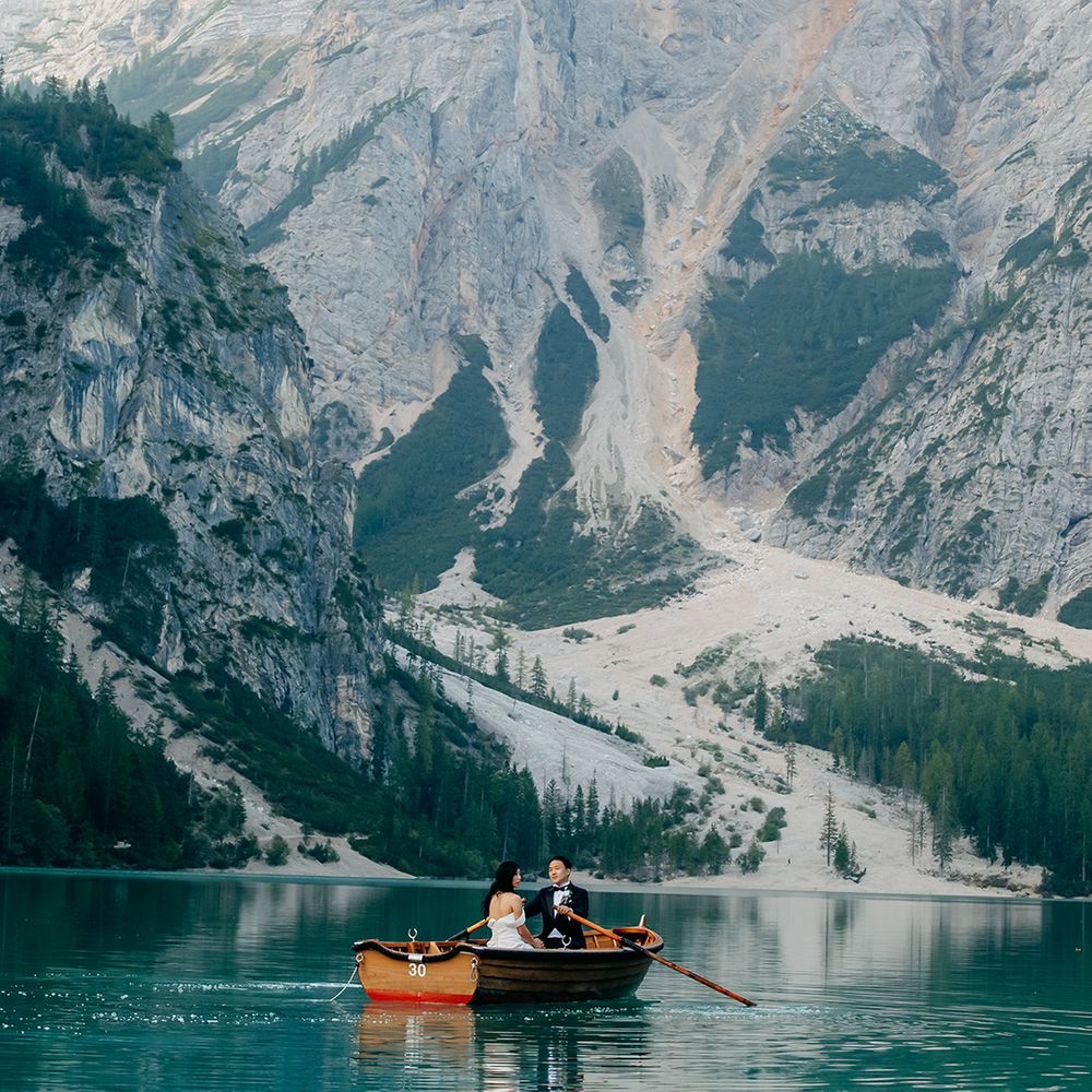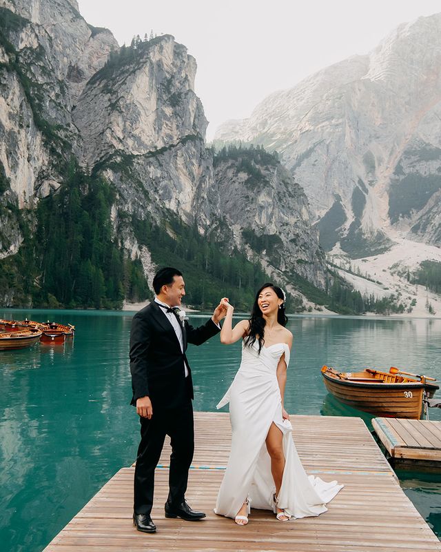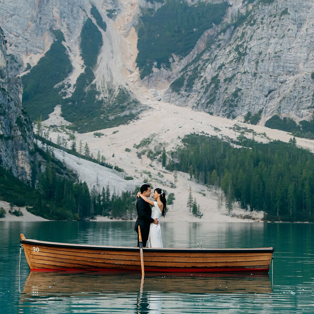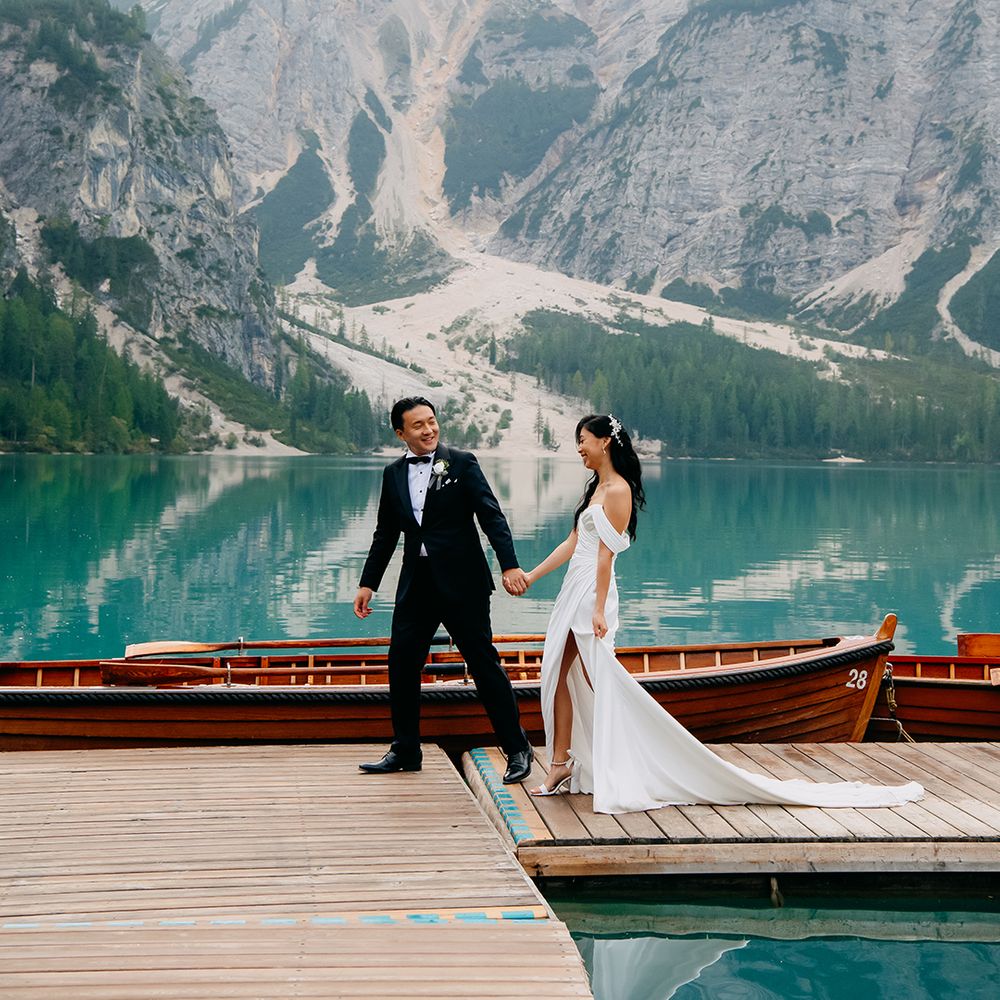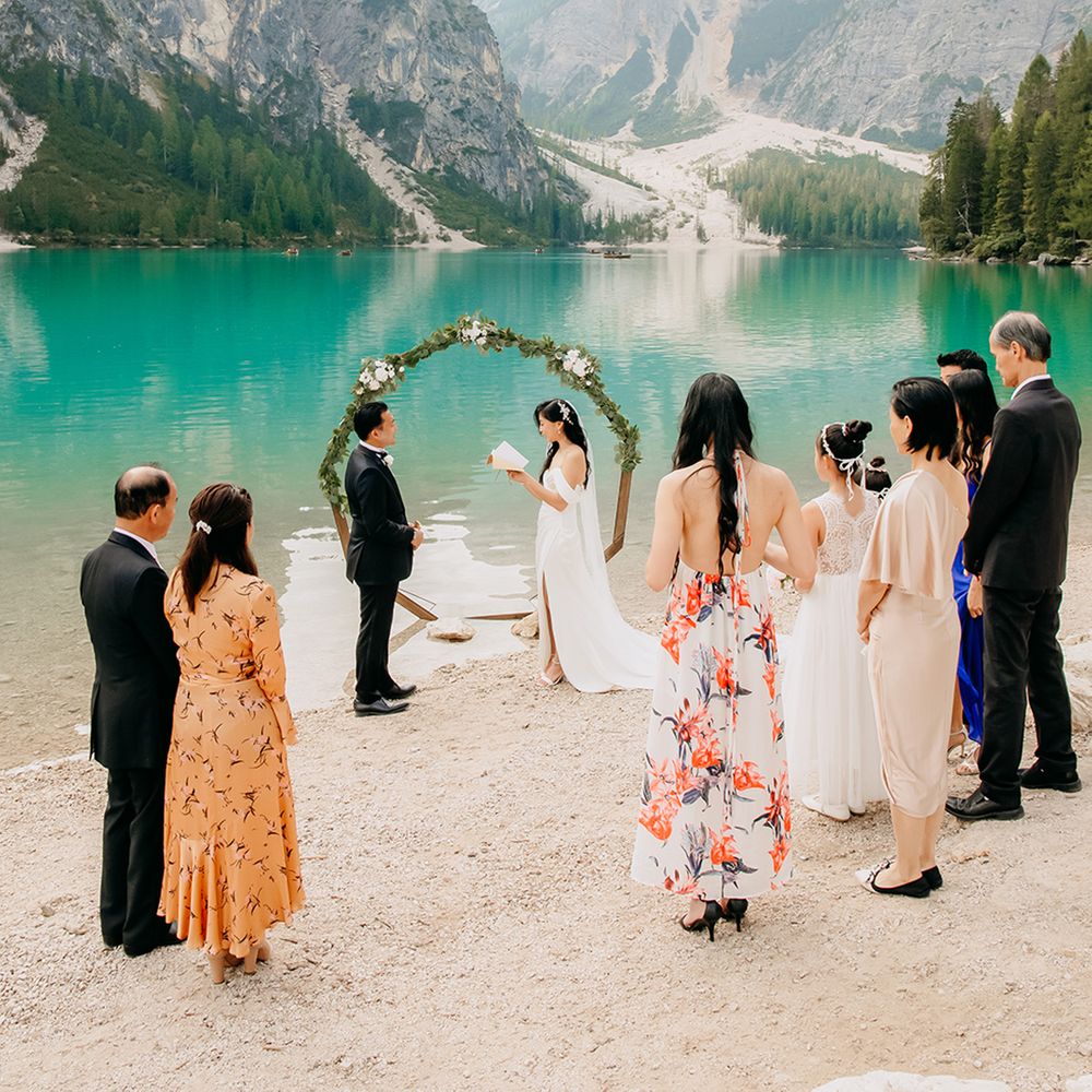 One of our favourite moments from our special day was the vow and ring exchange. Since we had rented Lago di Braies, the lake and its boat docks, the vow and ring exchange was very intimate. We were able to hear each other’s promises for a lifetime with our closest family. The bonus part was being surrounded by beautiful and surreal views.