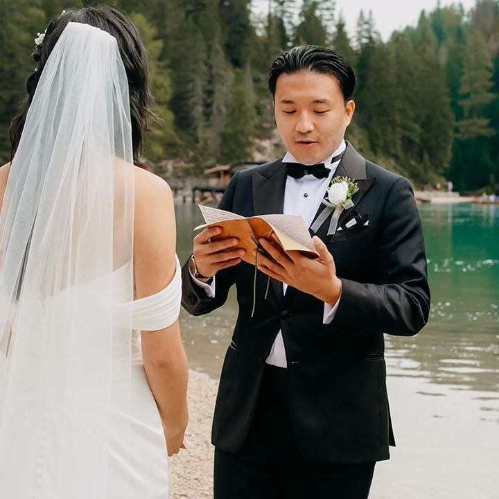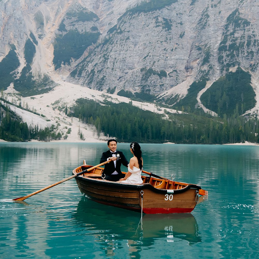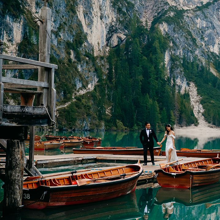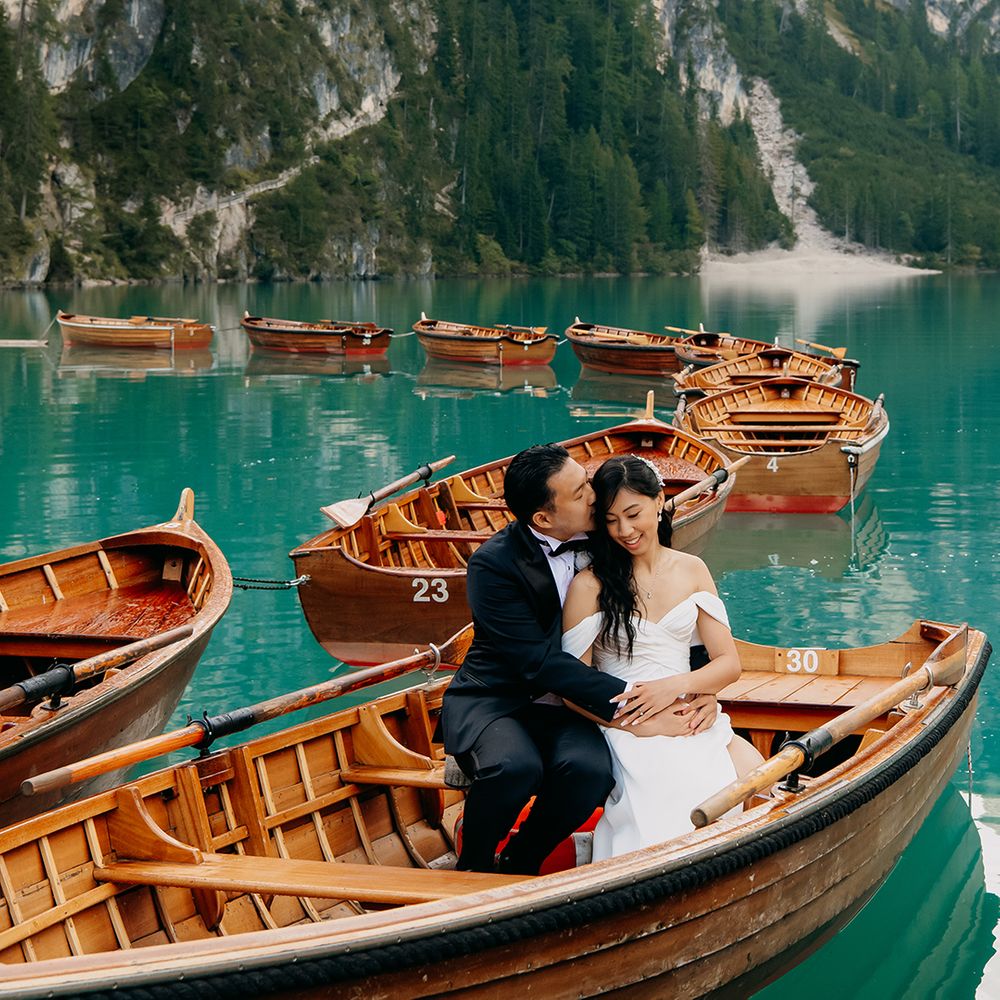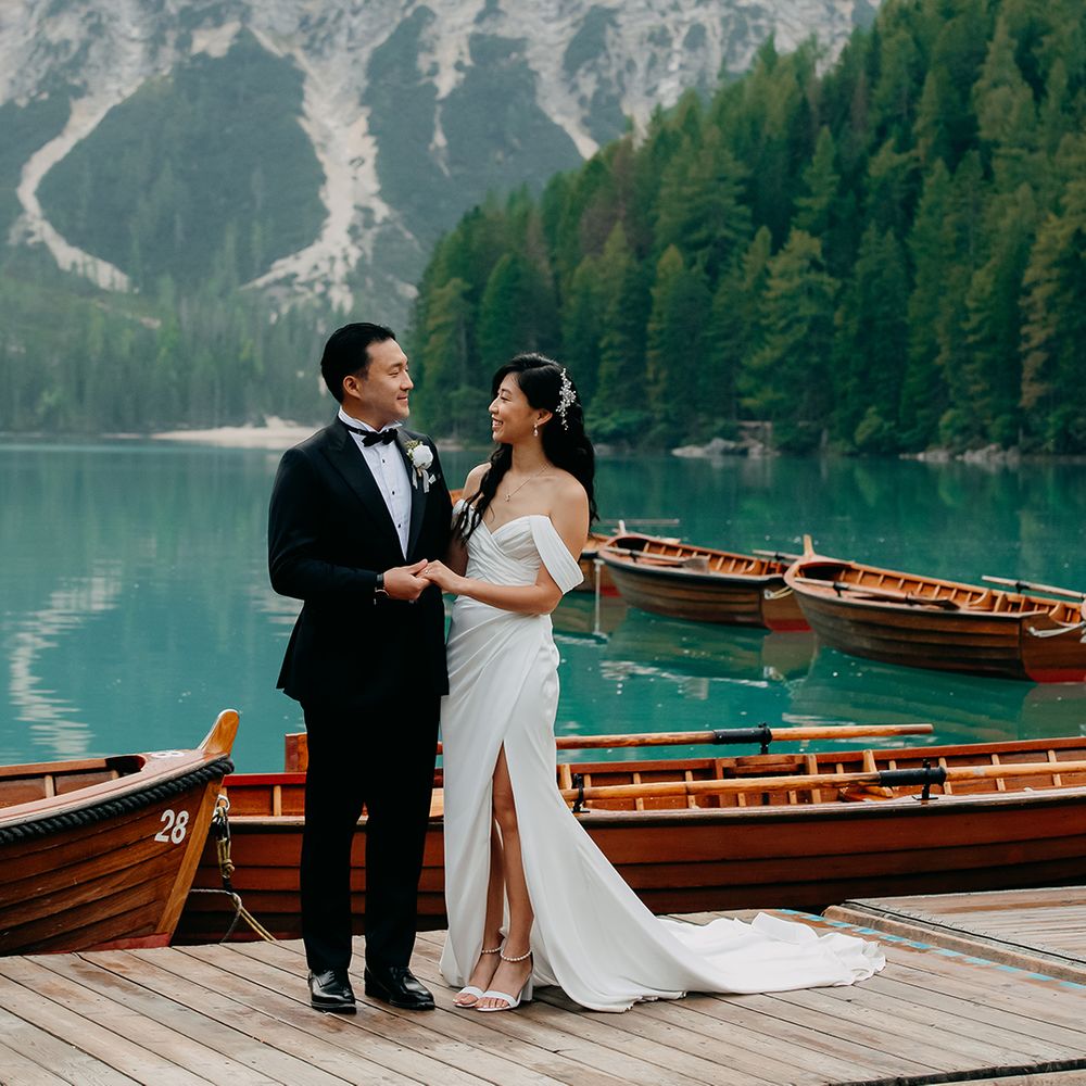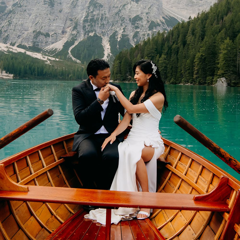 One of our favourite moments from our special day was the vow and ring exchange. Since we had rented Lago di Braies, the lake and its boat docks, the vow and ring exchange was very intimate. We were able to hear each other’s promises for a lifetime with our closest family. The bonus part was being surrounded by beautiful and surreal views.