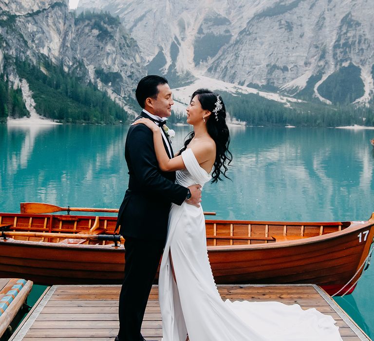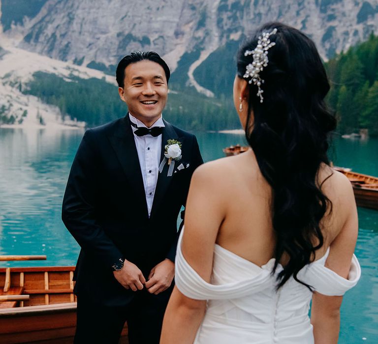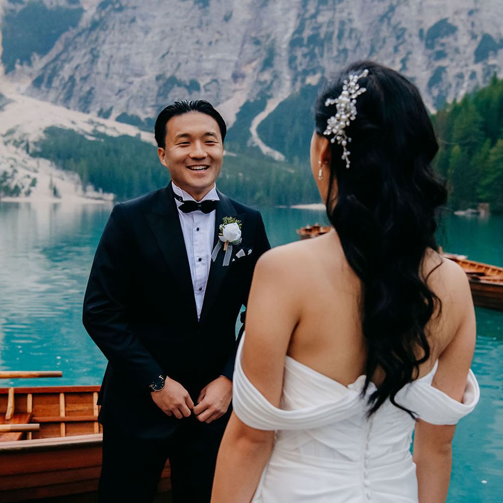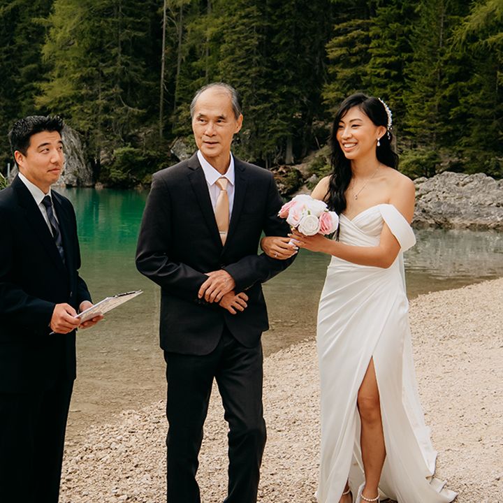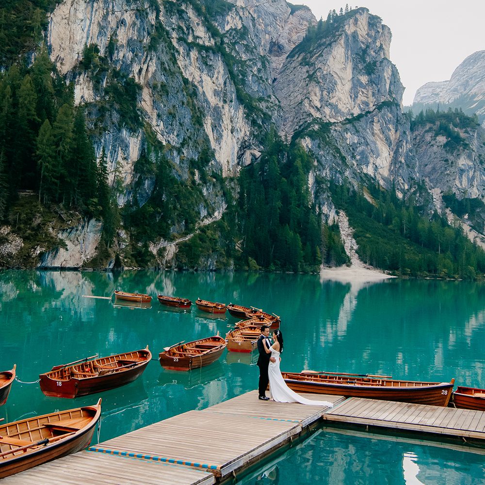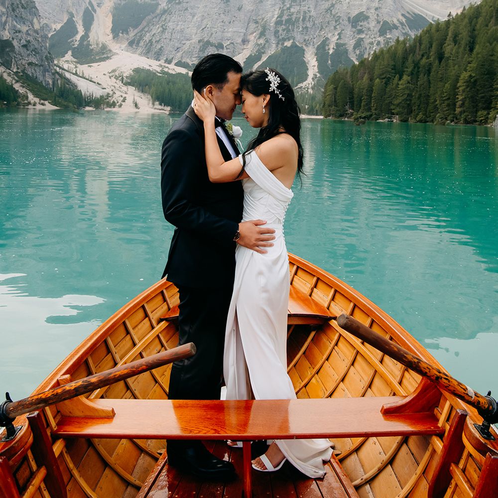 One of our favourite moments from our special day was the vow and ring exchange. Since we had rented Lago di Braies, the lake and its boat docks, the vow and ring exchange was very intimate. We were able to hear each other’s promises for a lifetime with our closest family. The bonus part was being surrounded by beautiful and surreal views.