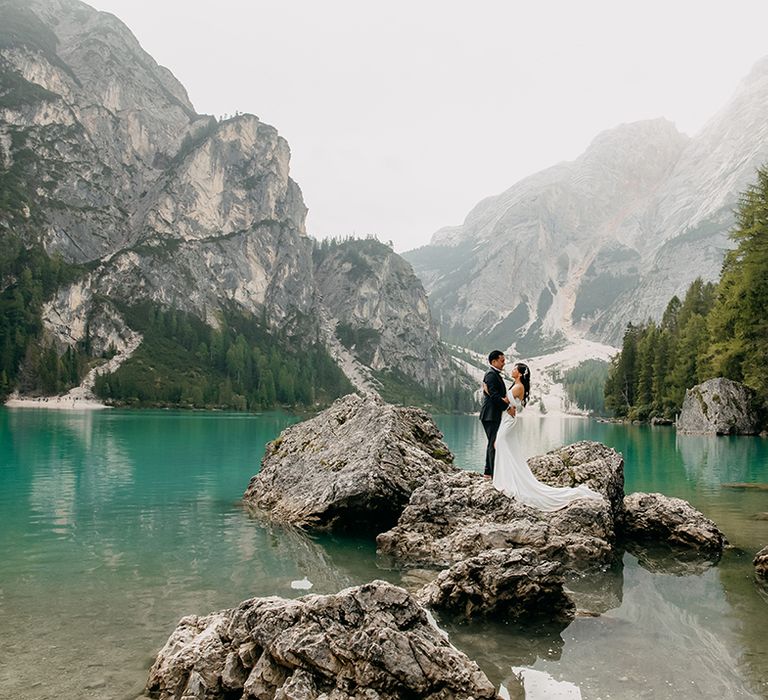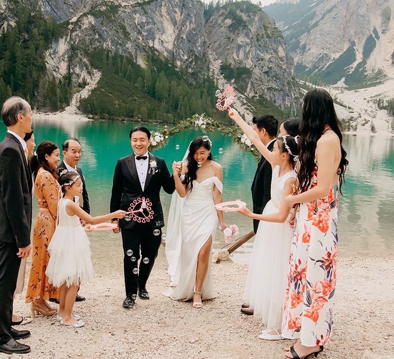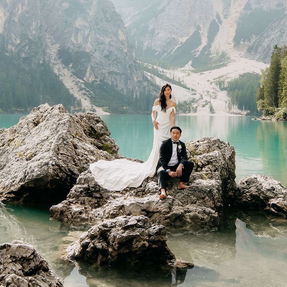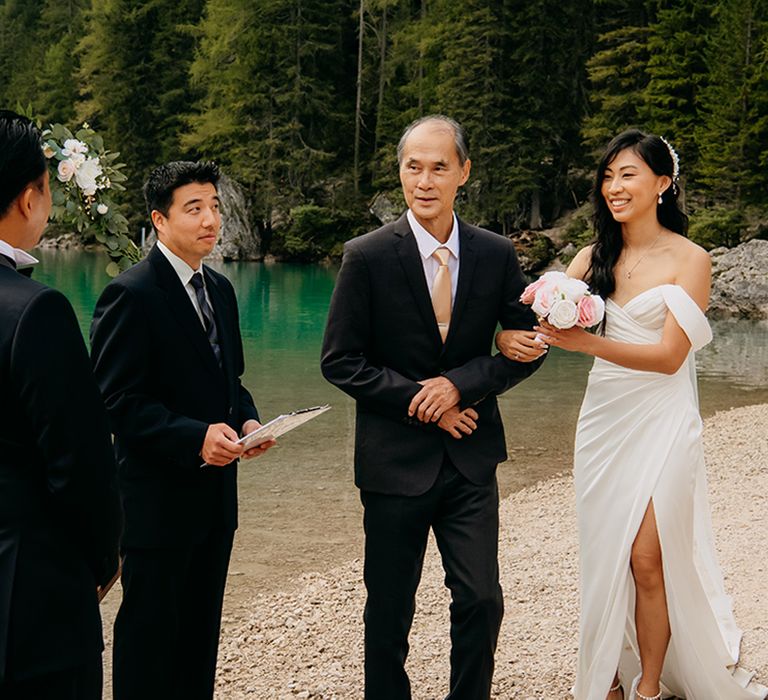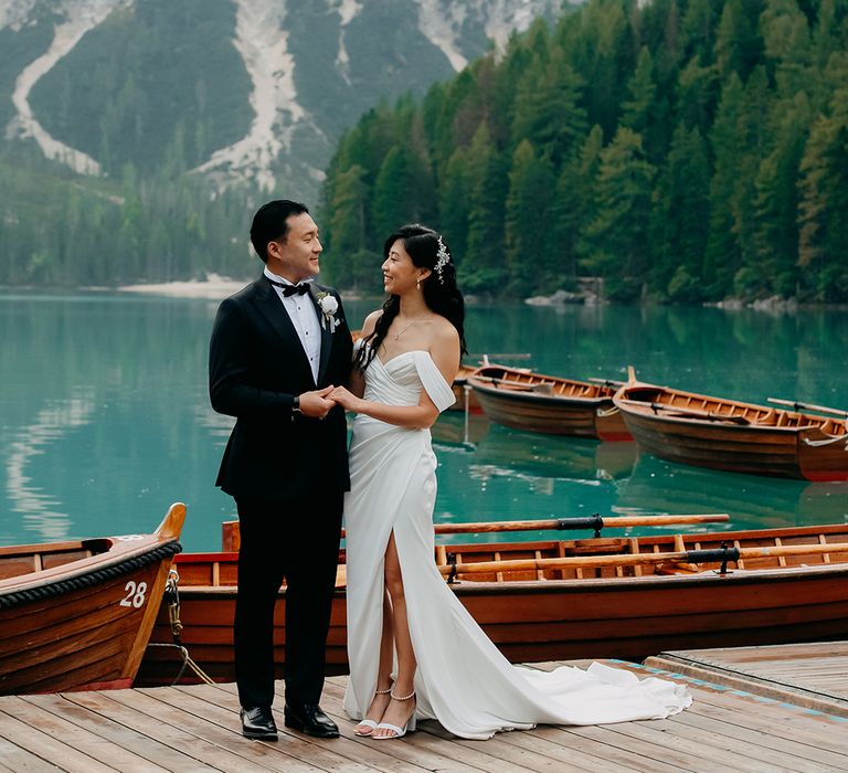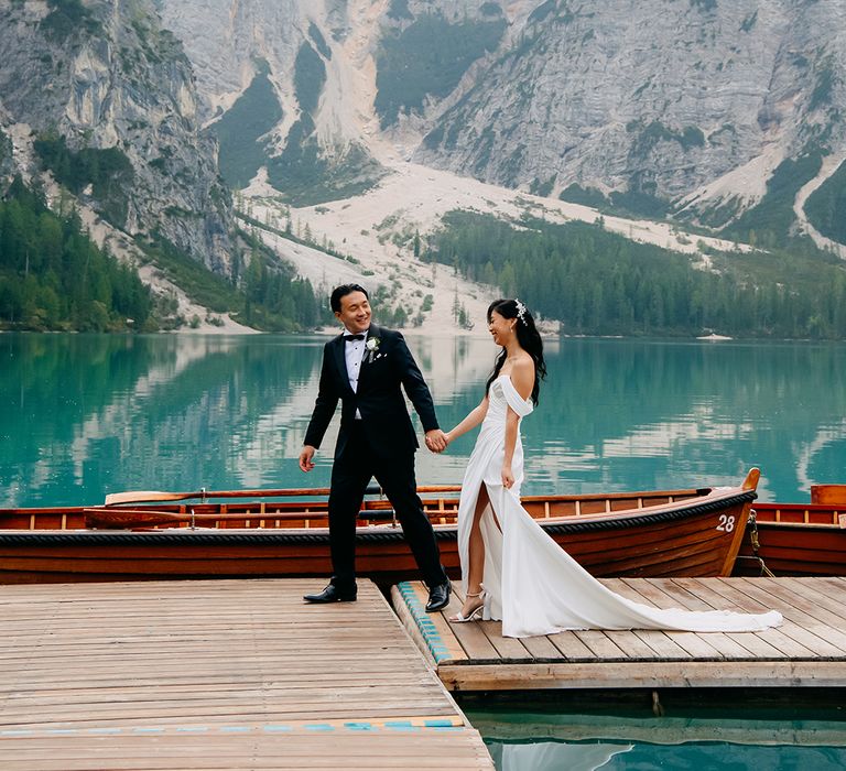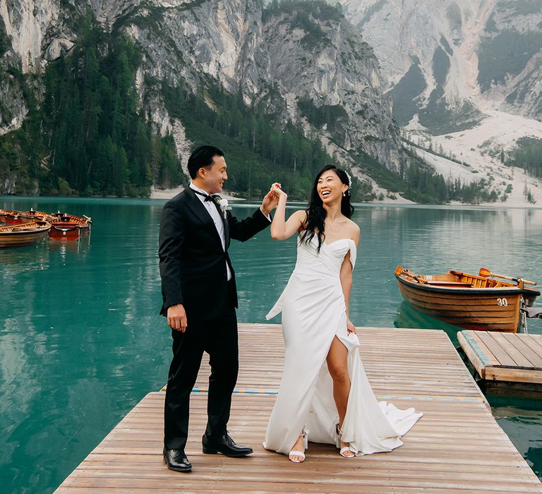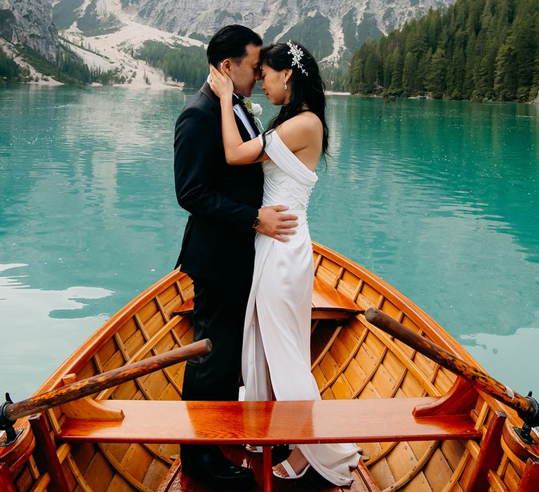 One of our favourite moments from our special day was the vow and ring exchange. Since we had rented Lago di Braies, the lake and its boat docks, the vow and ring exchange was very intimate. We were able to hear each other’s promises for a lifetime with our closest family. The bonus part was being surrounded by beautiful and surreal views.