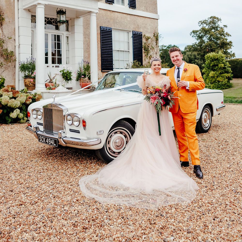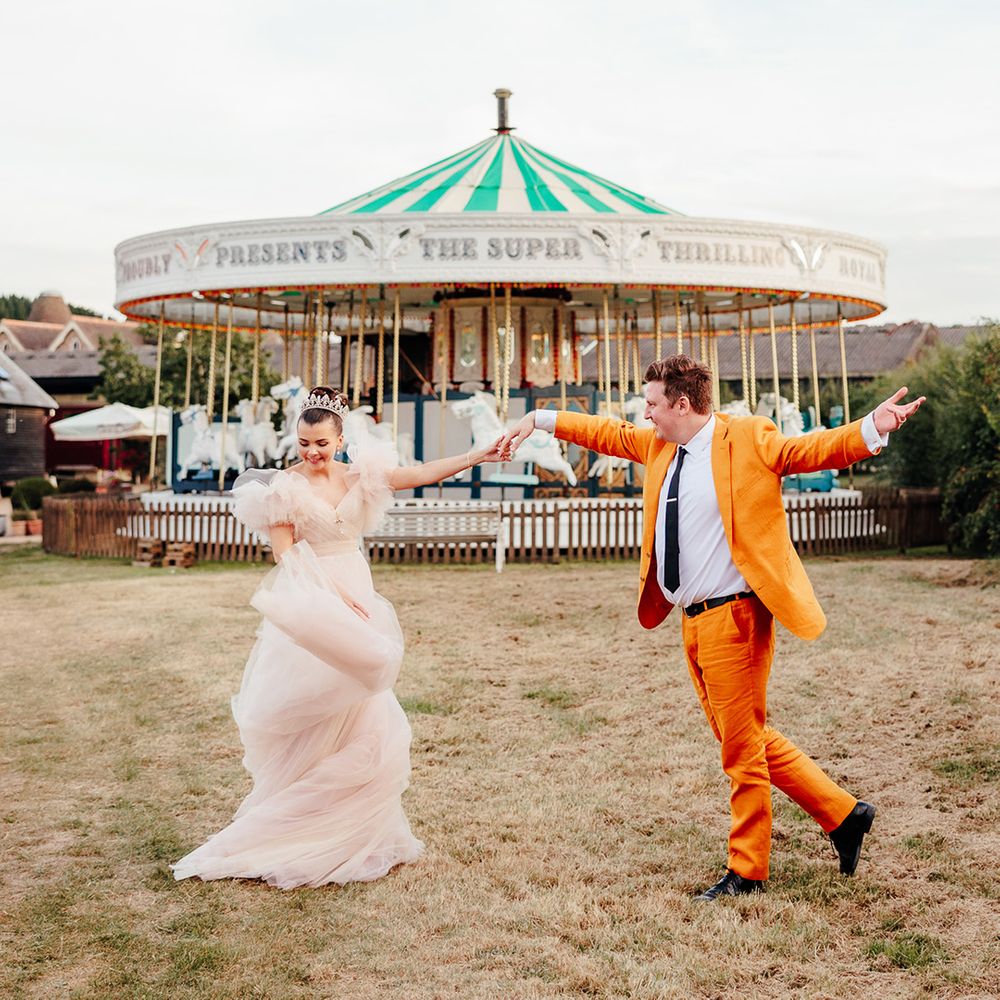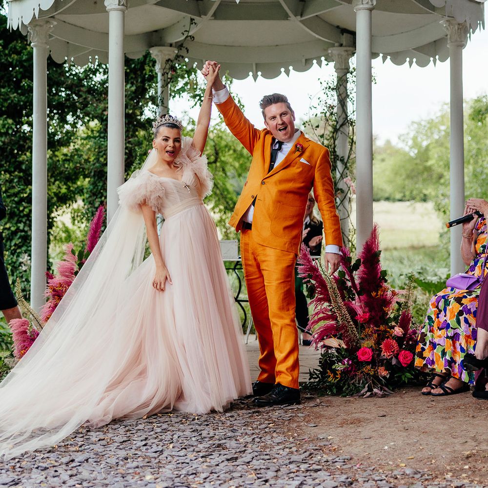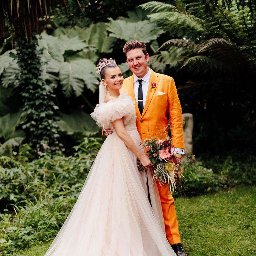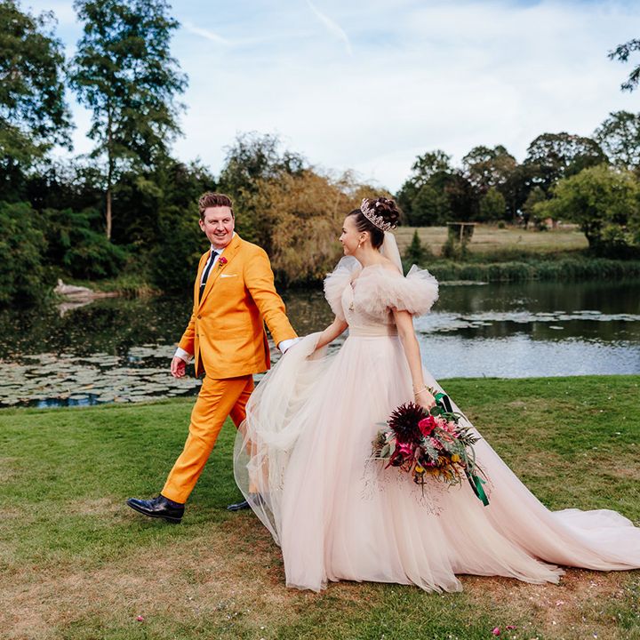 Pink Wedding Dress & Mustard Wedding Suit For Colourful Wedding