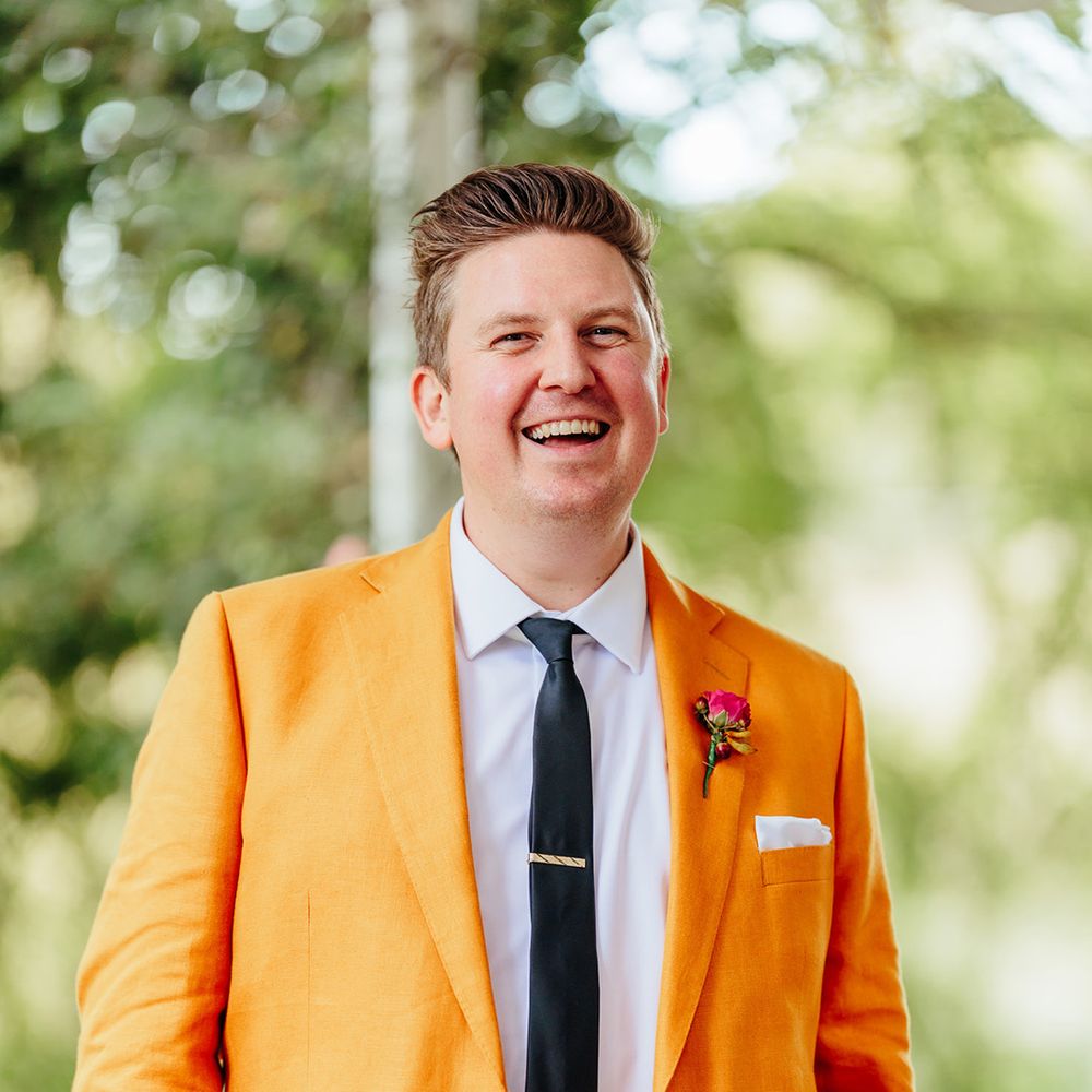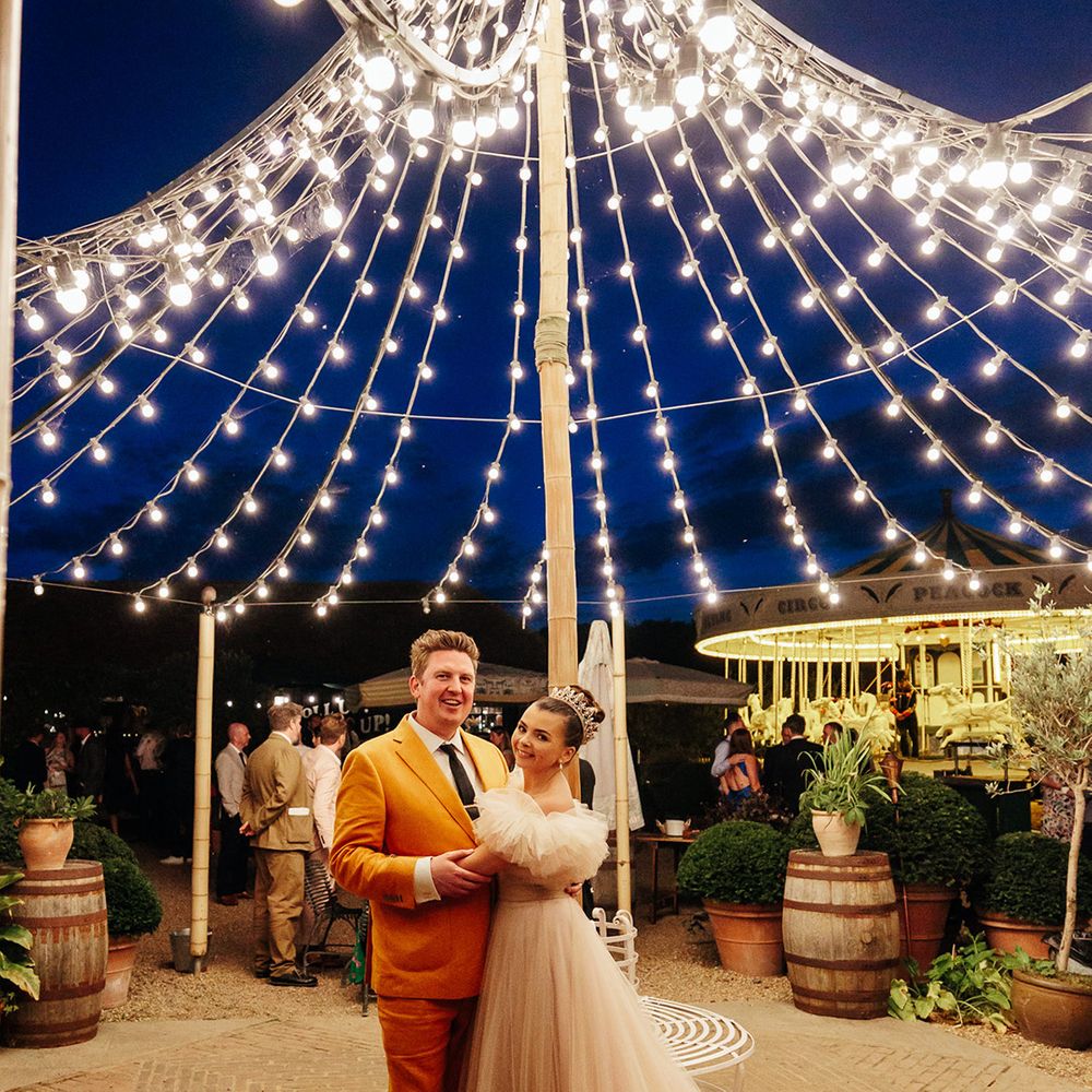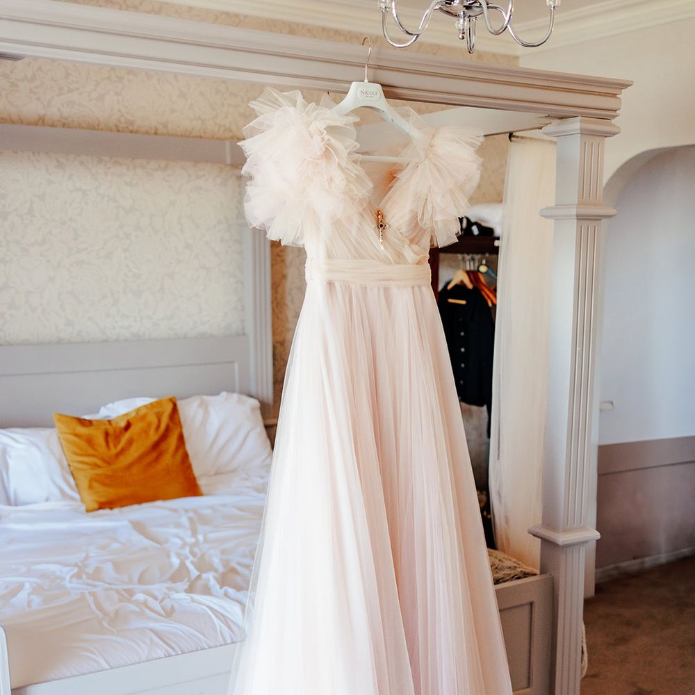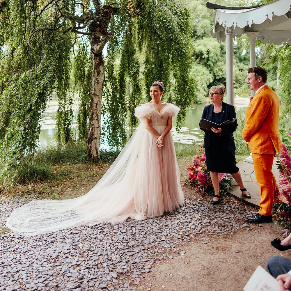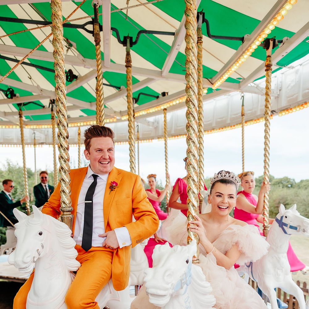 Pink Wedding Dress & Mustard Wedding Suit For Colourful Wedding