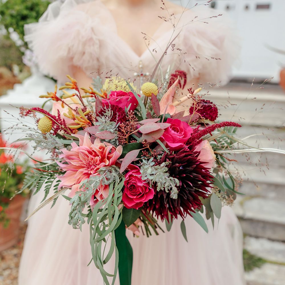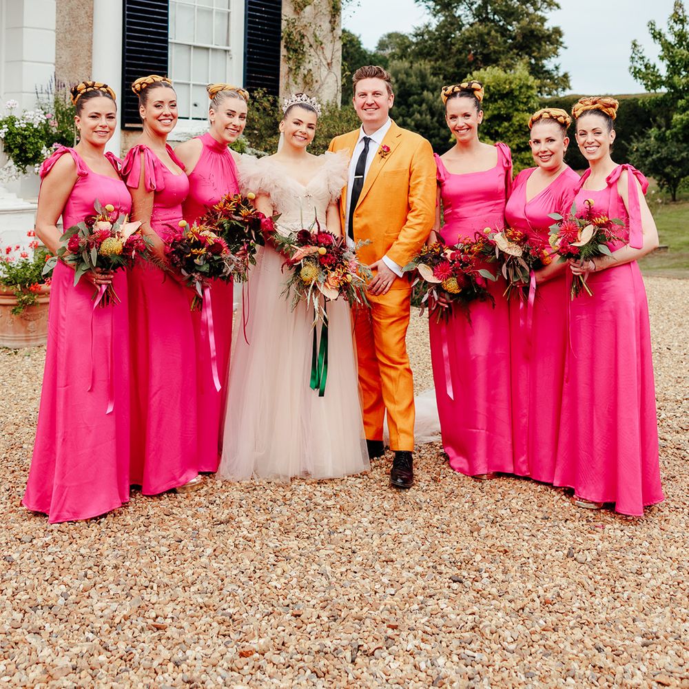 We didn't start with a theme, but it accidentally ended up being heavily influenced by Mexico, through the colours and textures. We went to Mexico years ago and we fell in love with everything about it, as it reflects our personalities - bold, colourful, vibrant. I've also been a massive Frida Kahlo fan, and I actually used one of her paintings as a 'mood board' pic for my florist. I also chose to do my bridesmaids’ hair exactly how Frida Kahlo wore hers, by braiding fabric and pinning it to the tops of their heads, which I absolutely loved.