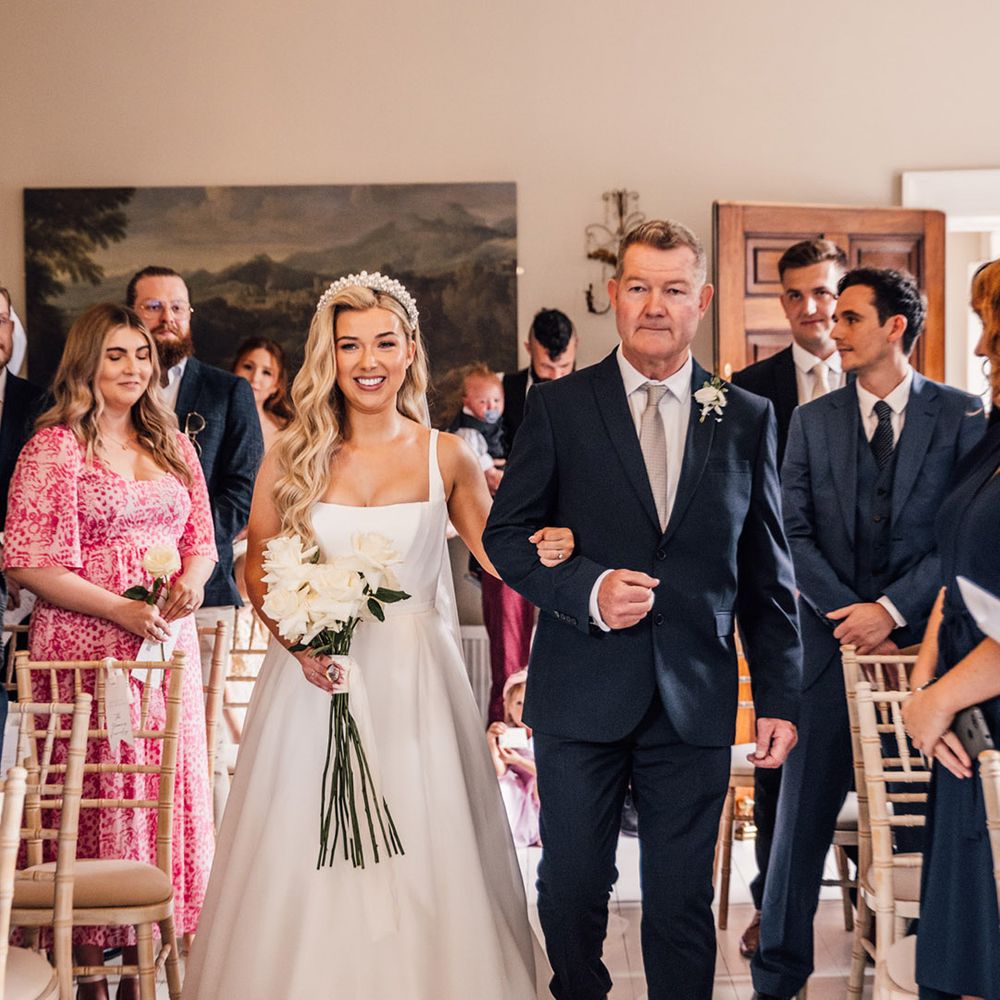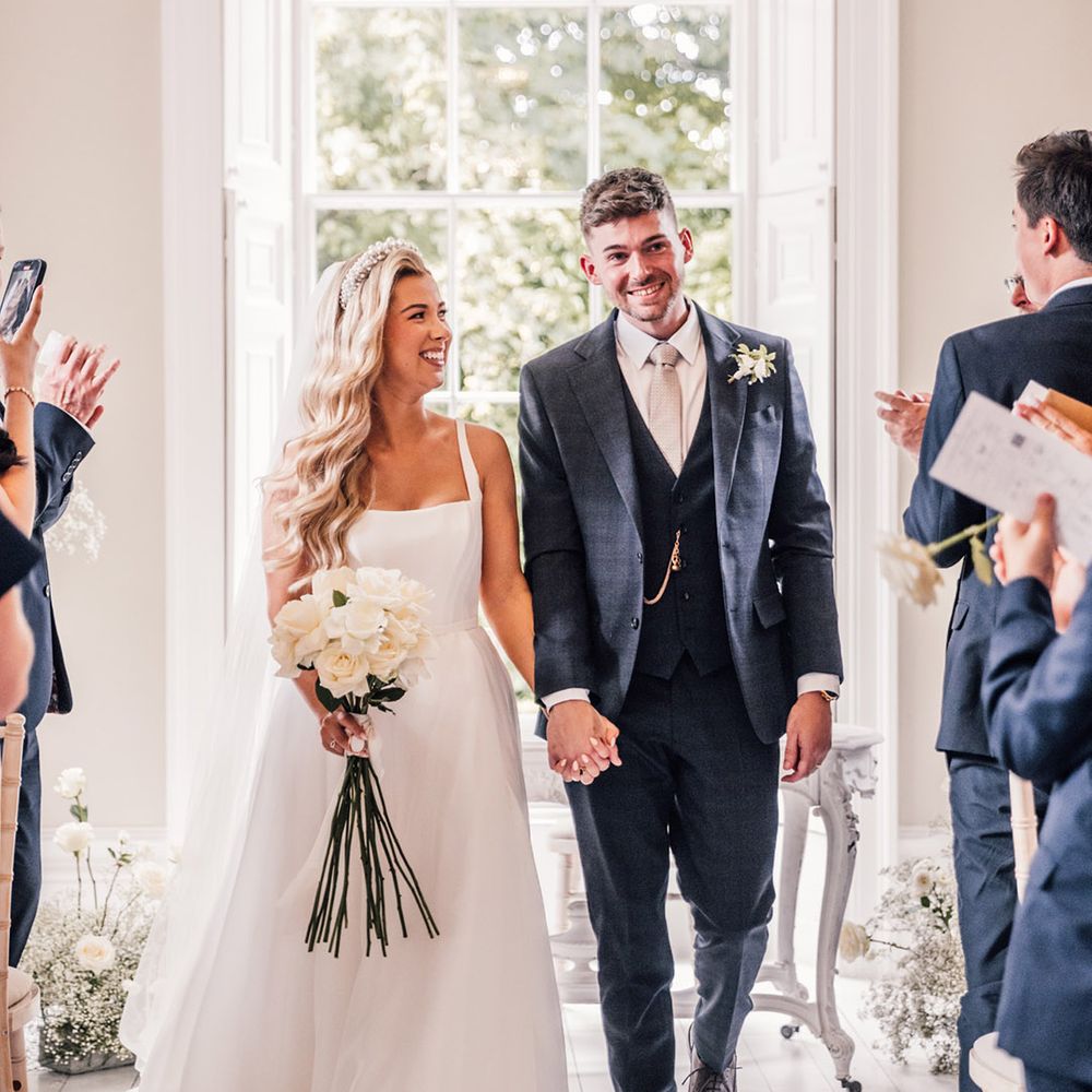 I was actually really nervous before walking down the aisle, which I didn’t expect. Once I saw Jordan, I felt completely calm and we just had the best time. After the ceremony, we had five minutes on our own with a glass of champagne before walking out to see everyone for the first time, which was so special!