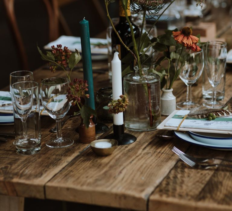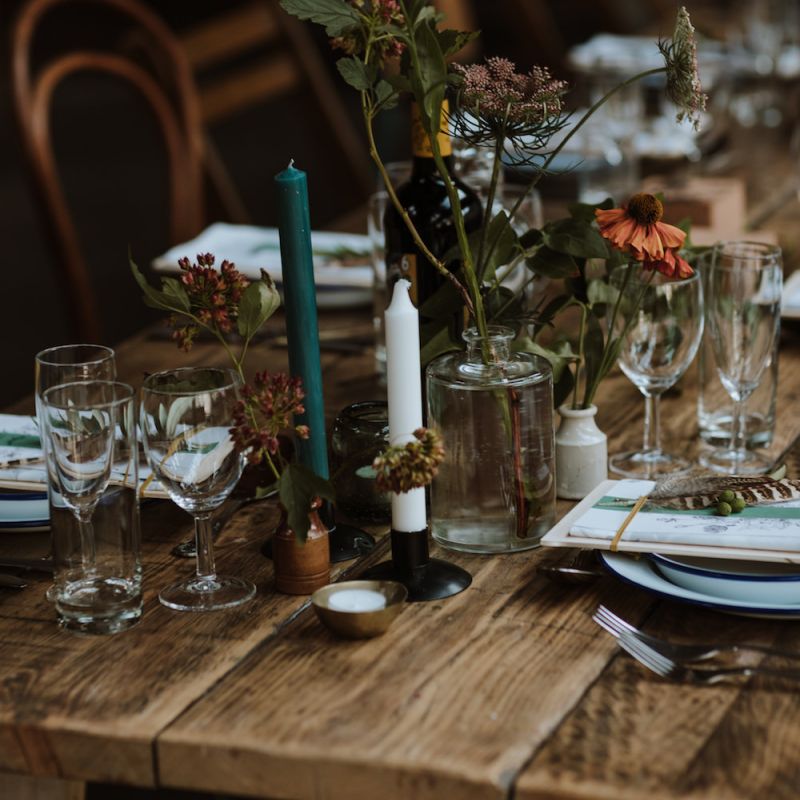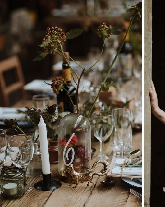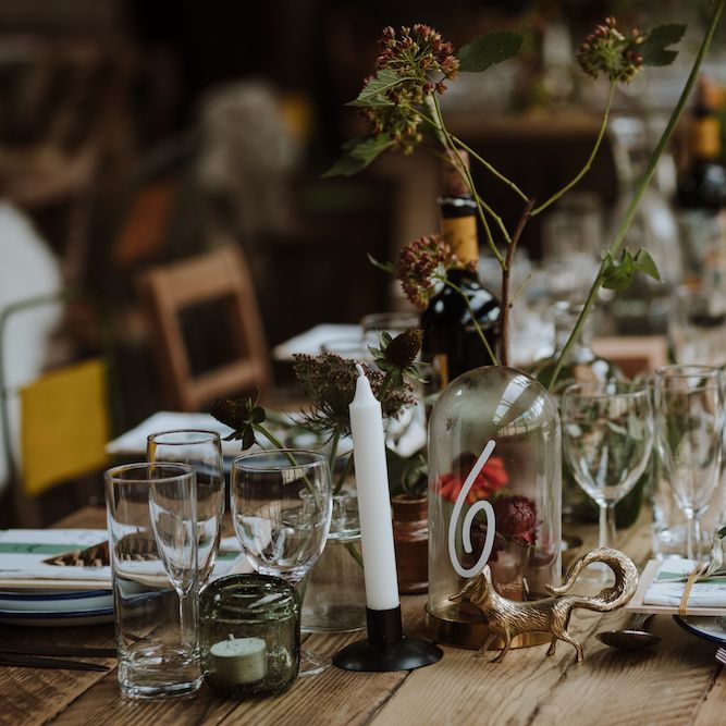 Lemonbox Studios to bring the vision to life. It was a great decision – they took care of all decorations and I got to enjoy the lead-up without worrying about ladders or moving tables, let alone packing up the following day. We had had a few conversations and they nailed it with their first conceptual designs. They summed the brief up perfectly: Subtle woodland feel, natural greenery, eclectic Scandinavian influences with a rich deep colour scheme. Lemonbox and