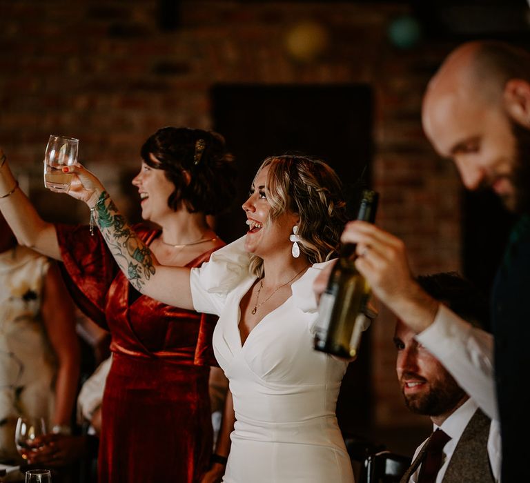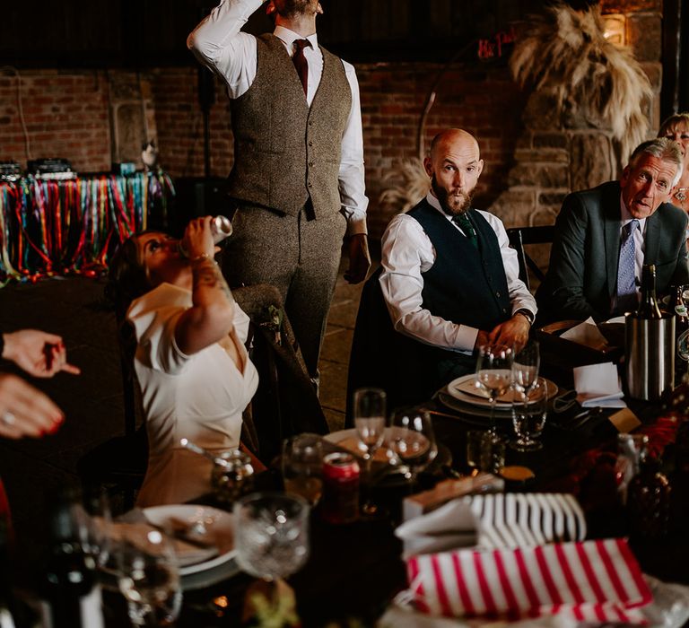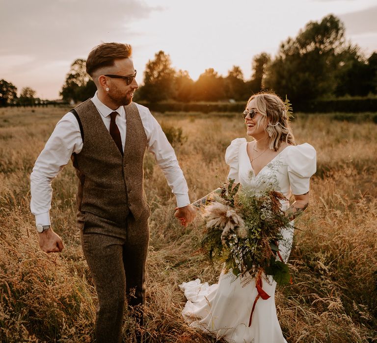 Apart from getting married to my best friend, the best part of the day was after we got married and walked down the aisle. The staff had drinks ready for us at the doorway, which were two espresso martinis (which Jon organised instead of Prosecco) and took us straight to the bar so we could have our own little moment chatting before seeing everyone. Having our photos taken at golden hour in the field with our photographer, was so funny. We had great fun with the smoke flare.