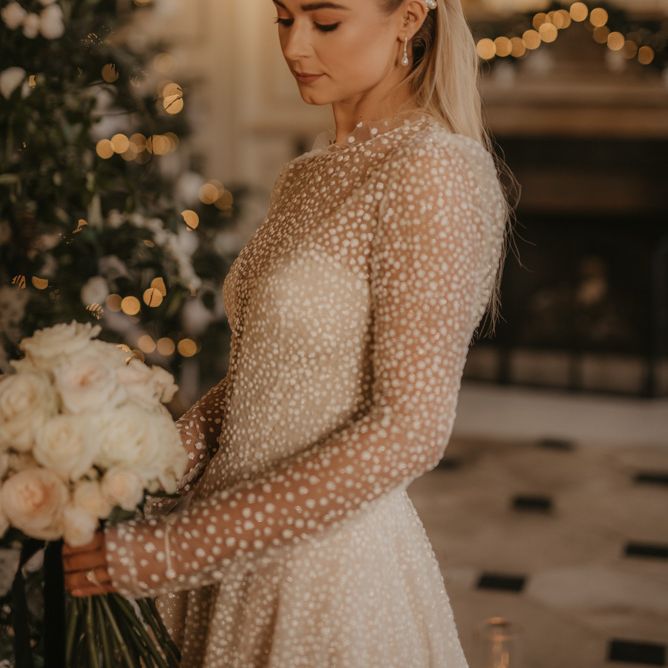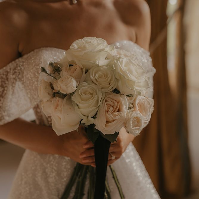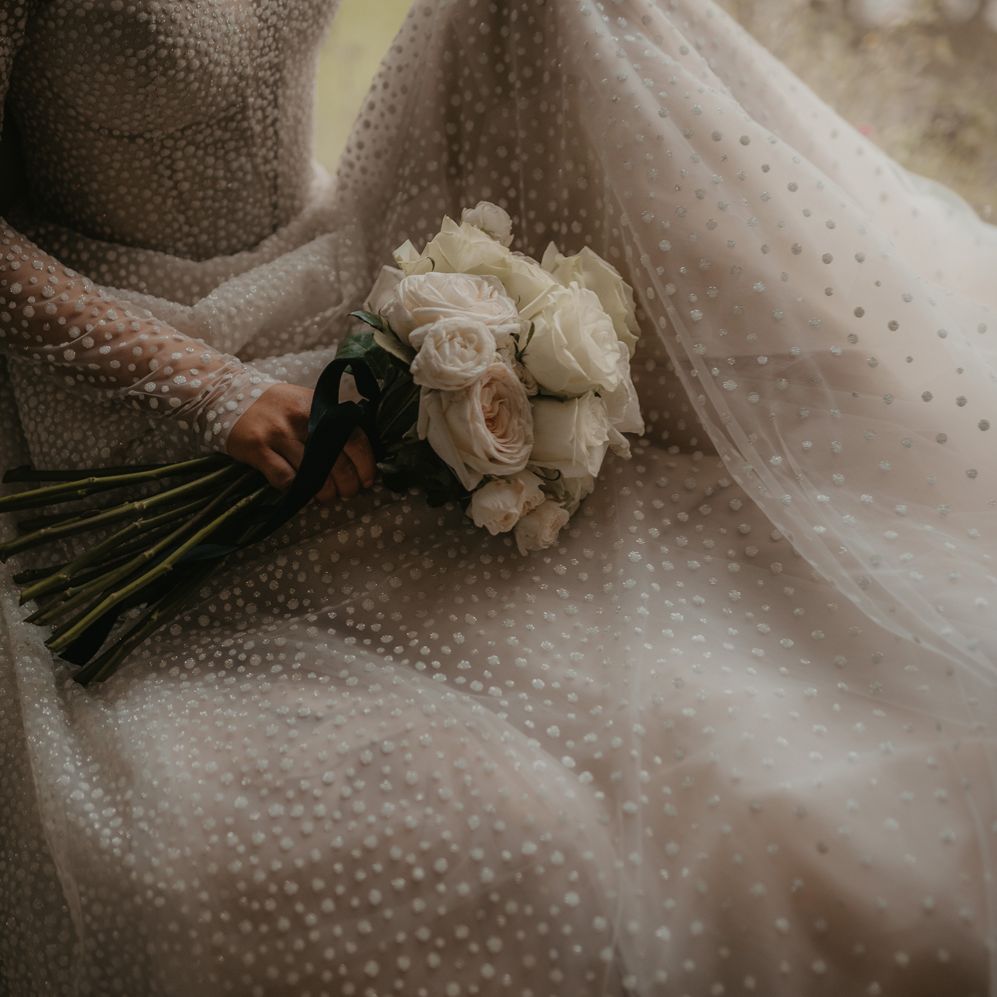 My inspiration was mainly from weddings themselves with a neutral pallet. We kept the flowers really simple with the bouquet made up of stunning white roses. We went with a really intimate setting with cosy lighting.