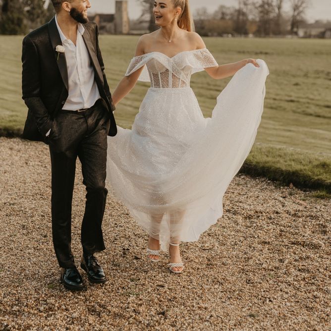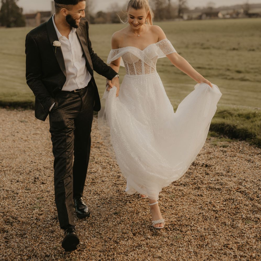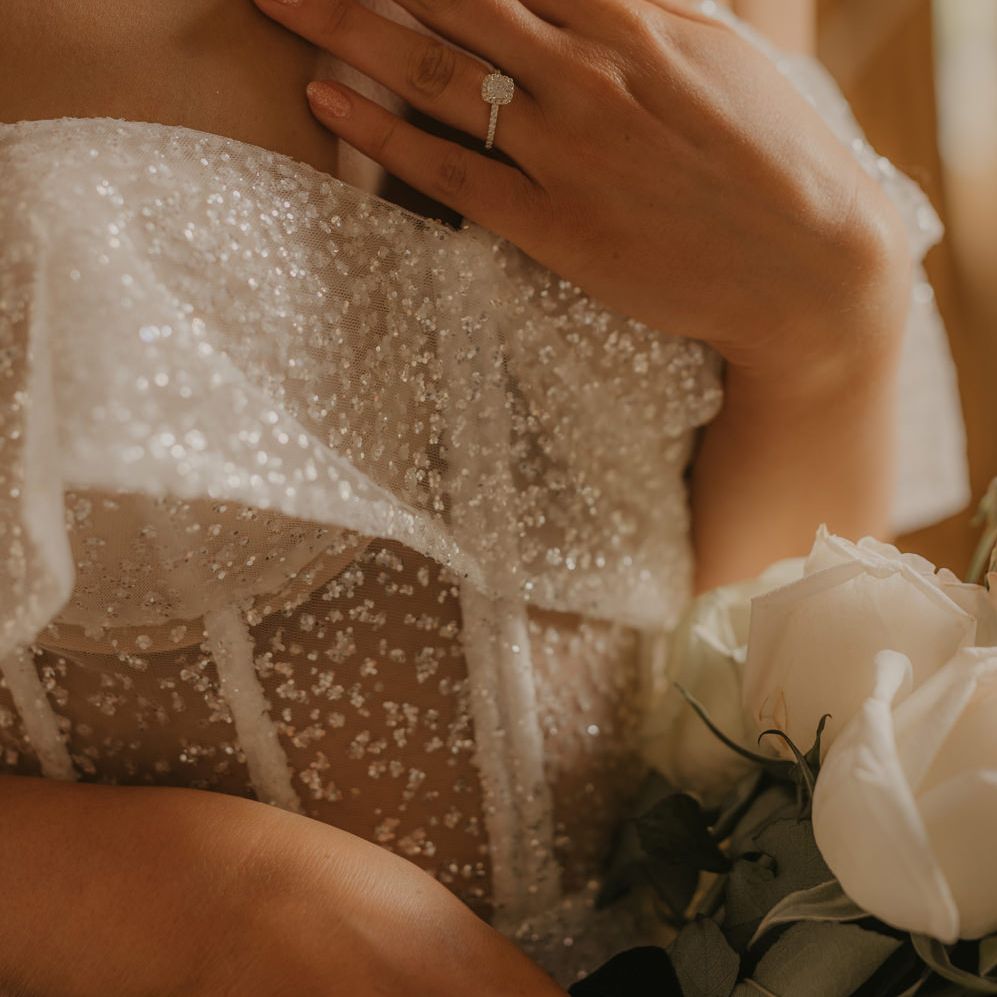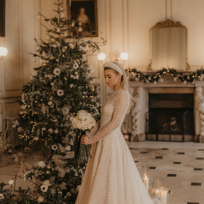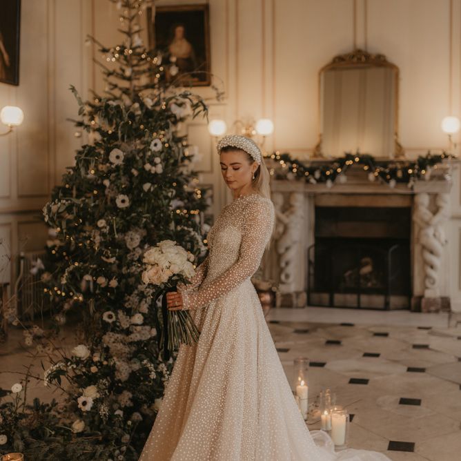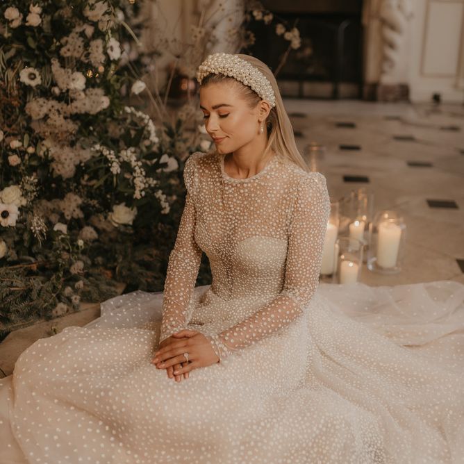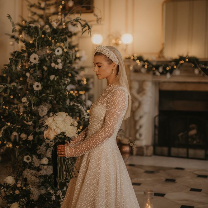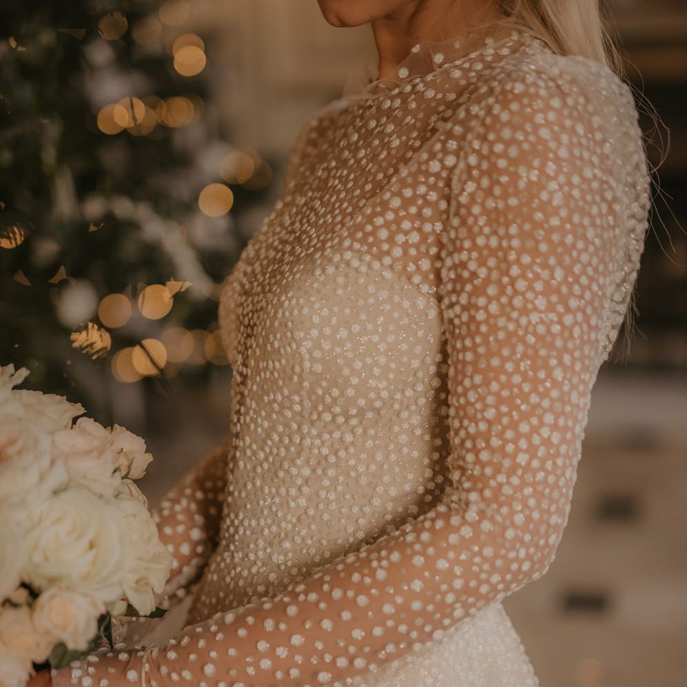 I asked Suzy, my hairstylist, to do a really slit back ponytail for our first dress and makeup from Lou not too heavy but to still give a glow. Then for our second dress, we went with a big pearl hairband to make a statement along with the stunning Tina dress. The gowns were supplied from Tala Daniel Bridal Couture located in the heart of Richmond. Amongst their unique selection was the ‘Andrea’ gown by Tina Valerdi. A phenomenal sparkly polka dot A-line gown. The second gown designed by Jolie by Berta has a Bardot neckline, sheer bodice and dipped in glitter from head to toe. The images bring out the beauty in how the gowns glistened in the winter sun. You will not find gowns so adorning, anywhere else like Tala Daniel Bridal Couture.