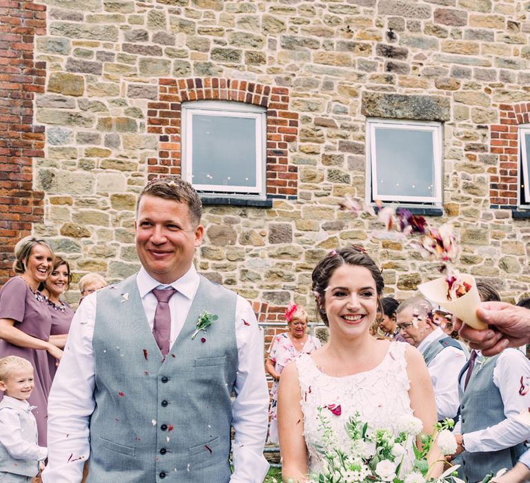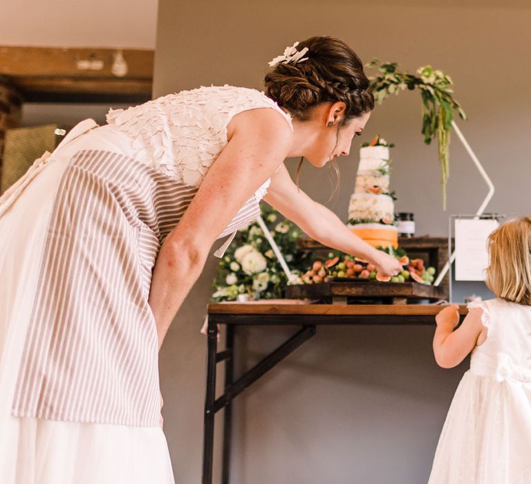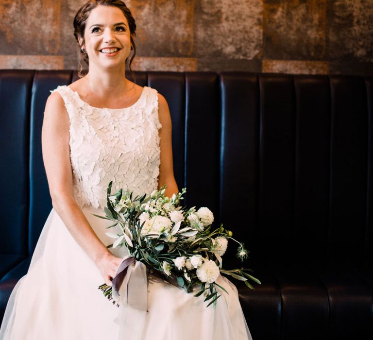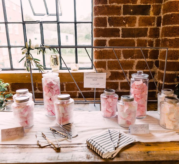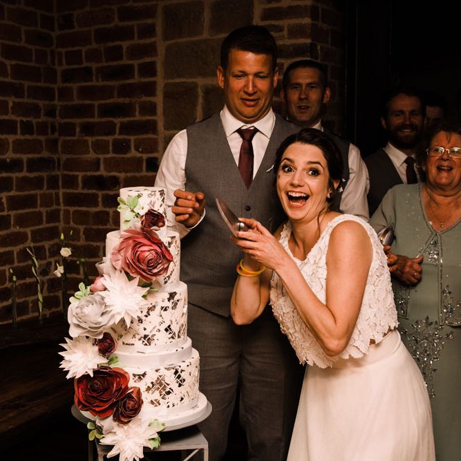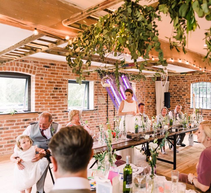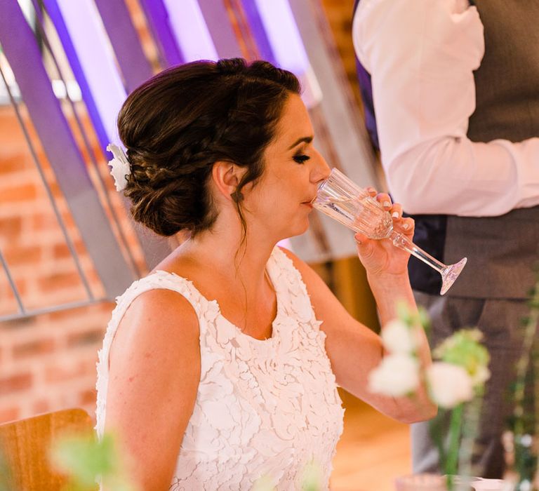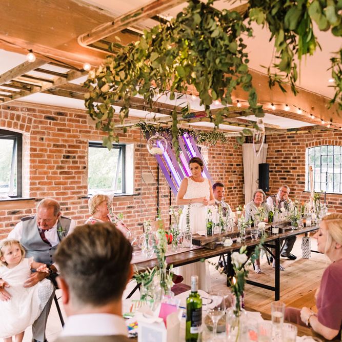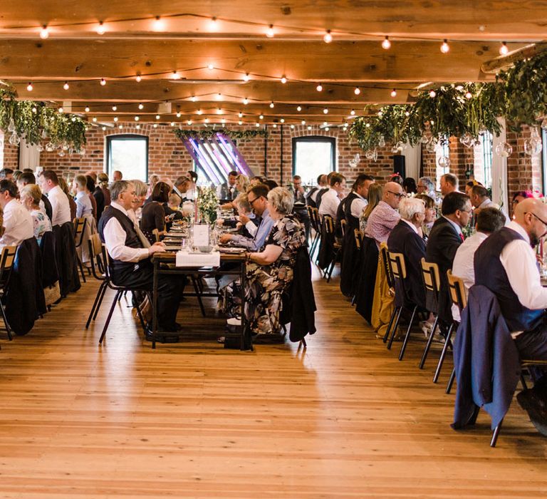Relaxed, chilled, a nice slow pace to everything. we had no real formal photo's and chose to have natural casual photography as I'm not keen on looking at the camera. Also being a greedy big family we put a lot of thought into the food or should I say food for in between the official meal. We offered Ice lollies, marshmallow bar and a huge Cake of cheese. There was not a scrap of cheese left. The style was modern, minimalist with a splash of purples to contrast from the industrial venue of steel and brick which was the base of the inspiration. The Venue has recently had their Ladder installation completed and we made full use of the great way to showcase them with baubles and lights which again is something I loved looking at on