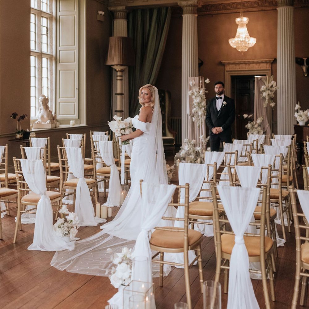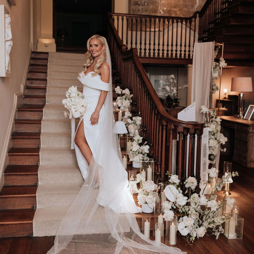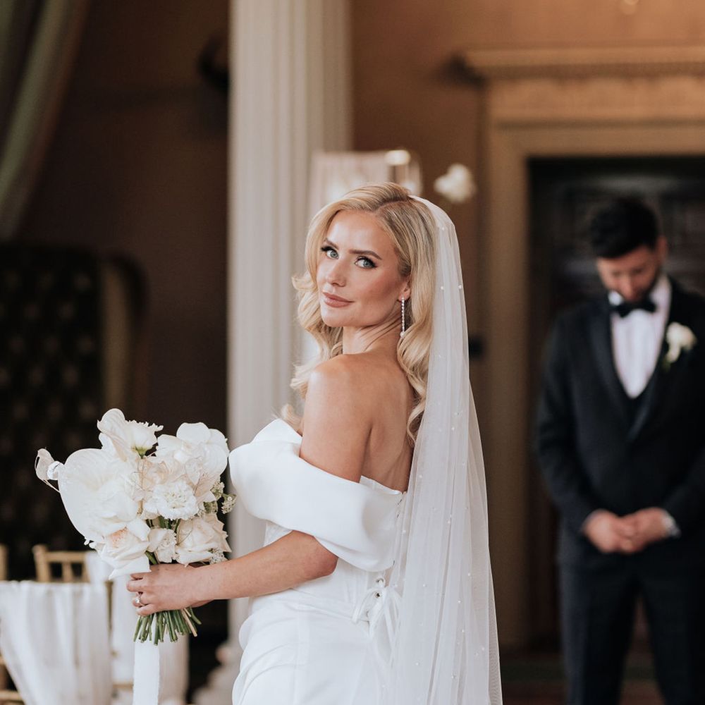 Makeup by Lorna created a timeless classic bridal look by using a medium to full coverage base, a black defined wing and blushed cheeks. This was complimented by Hollywood bouncy waves and volume created by Hair by Tosetti. The look was accessorised with pearled jewellery to capture the vintage inspiration.