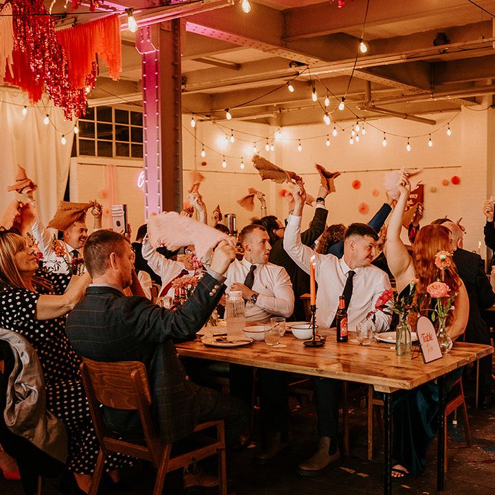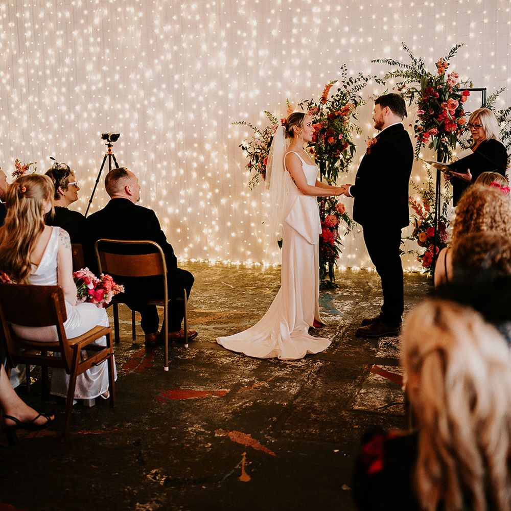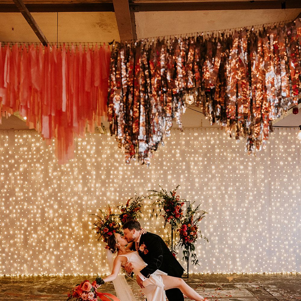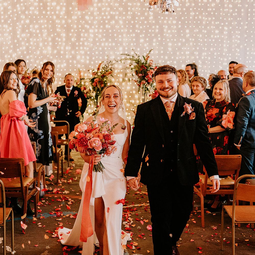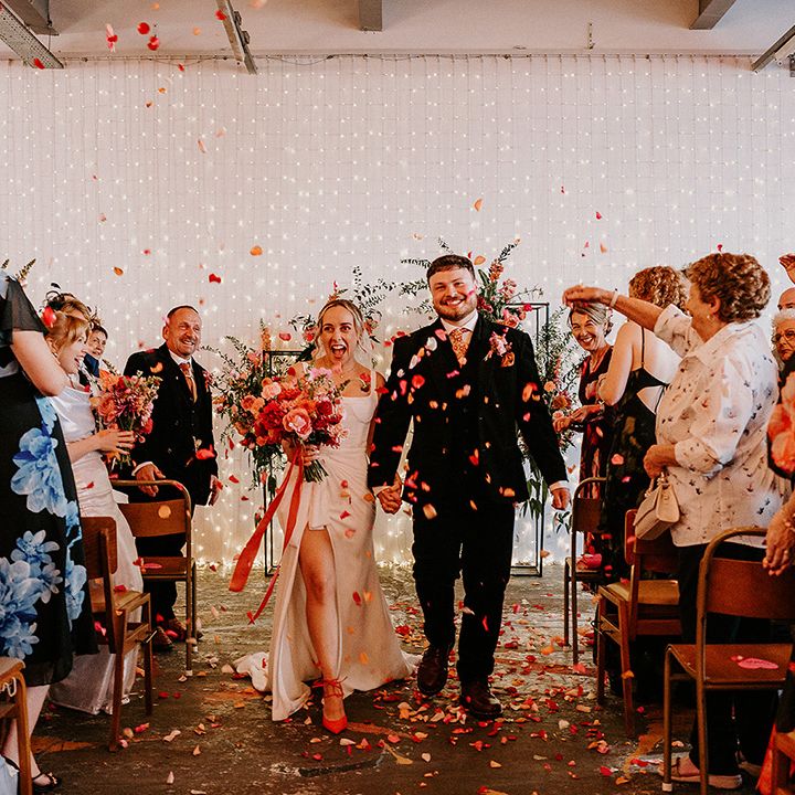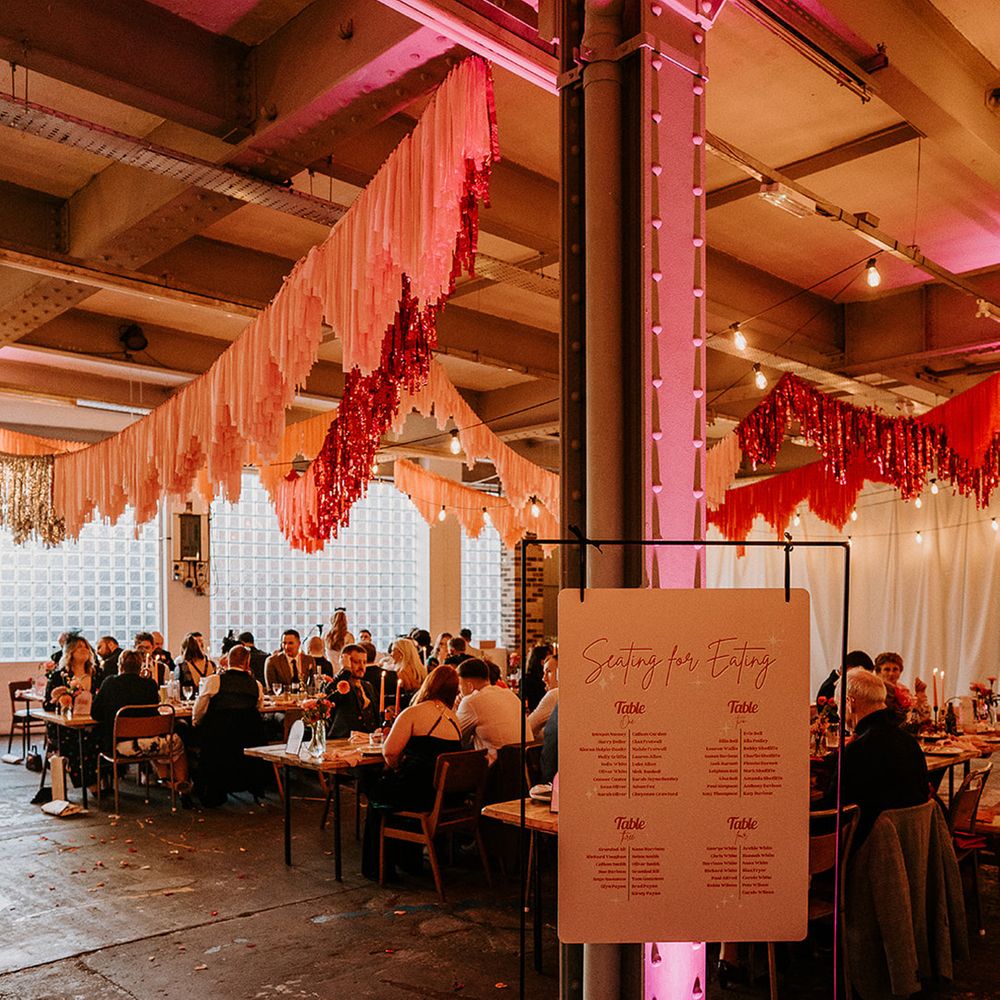 I [Jodie] work in weddings myself at a barn venue, but we knew we wanted to do something different. Choosing Trafalgar Warehouse helped make our wedding unique! It was different to any wedding our guests had been to, and we loved that! It was so fun to decorate and add our touch to a black canvas.