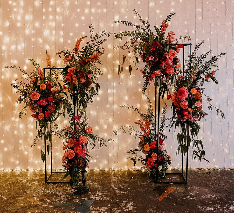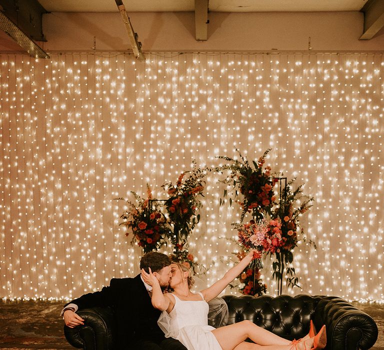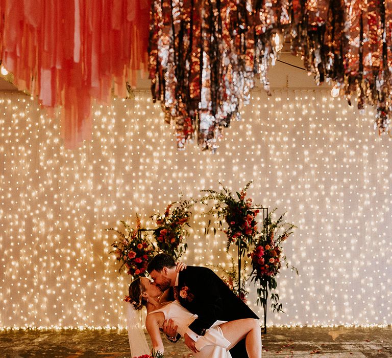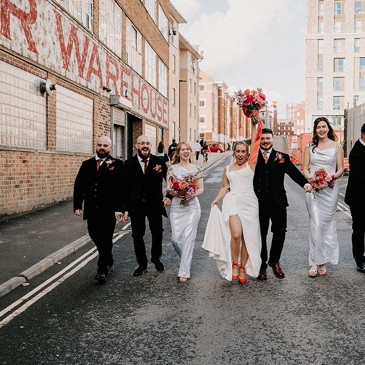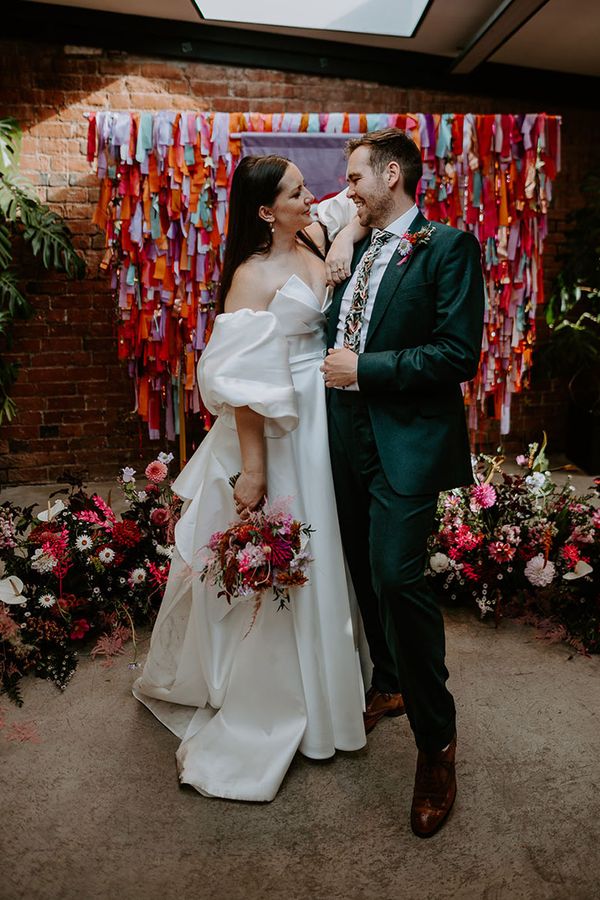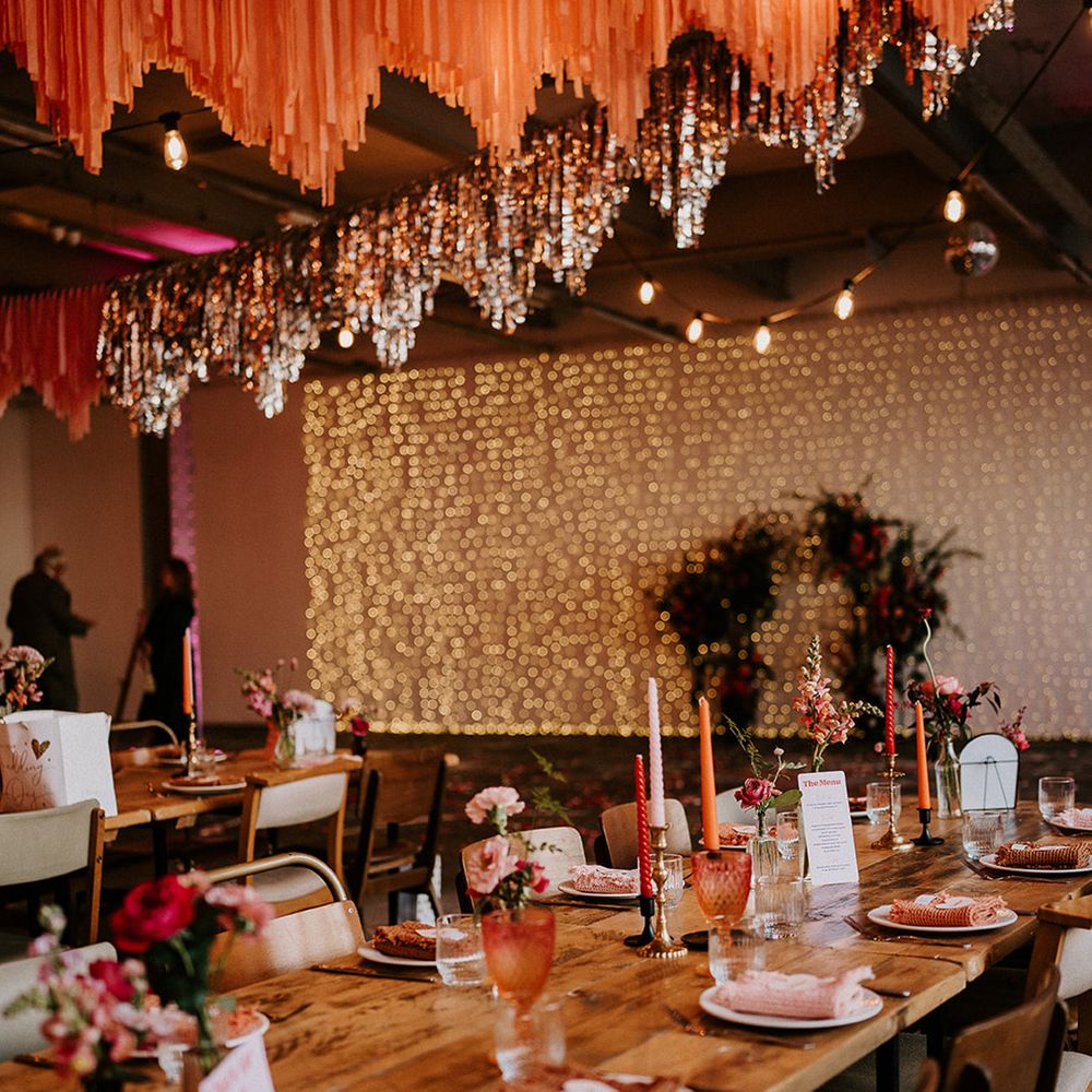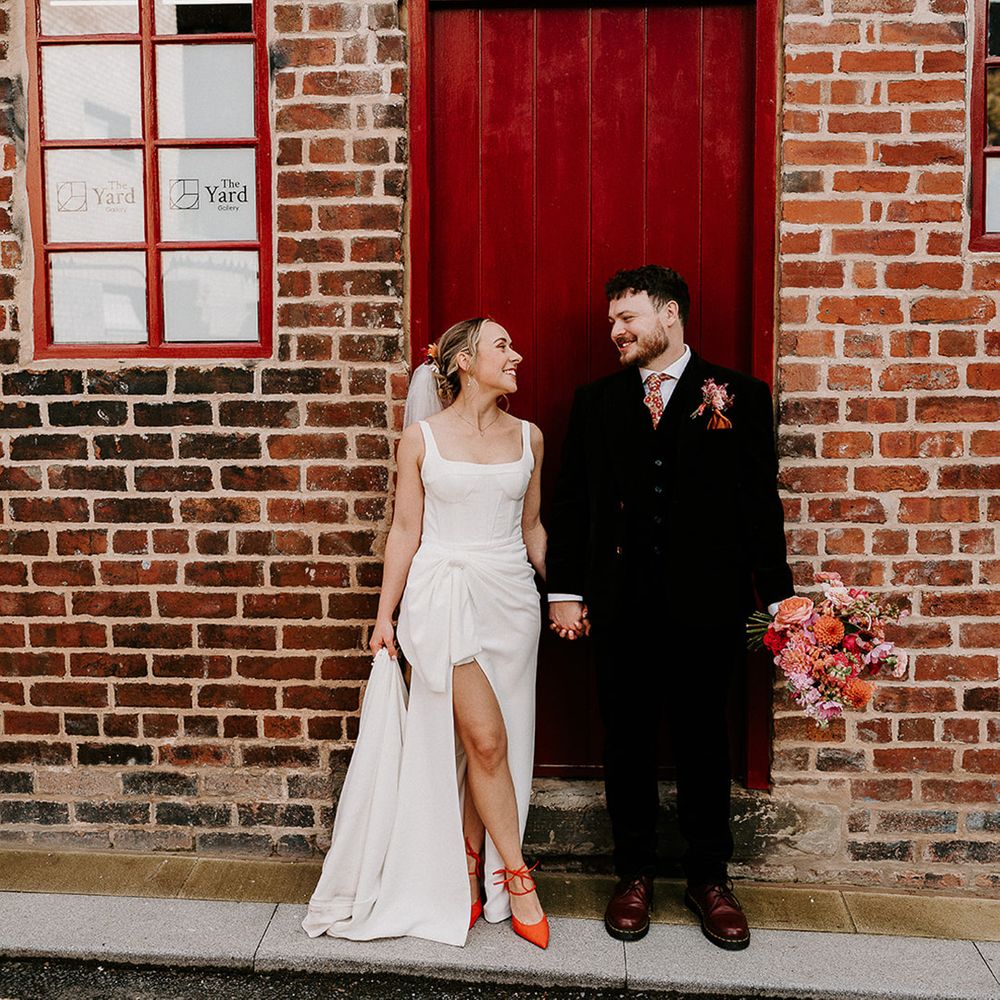 I [Jodie] work in weddings myself at a barn venue, but we knew we wanted to do something different. Choosing Trafalgar Warehouse helped make our wedding unique! It was different to any wedding our guests had been to, and we loved that! It was so fun to decorate and add our touch to a black canvas.