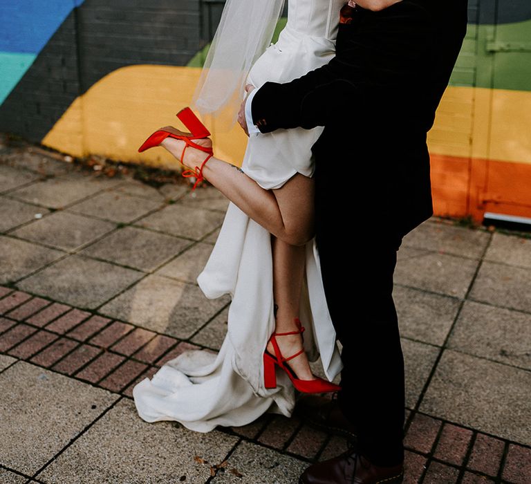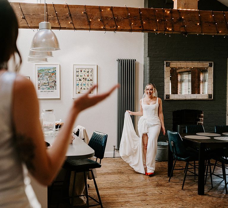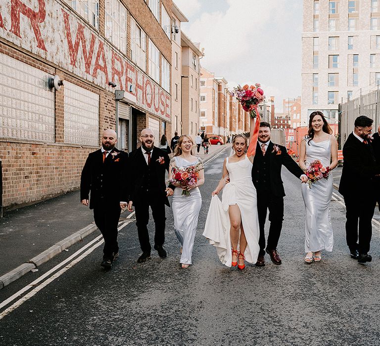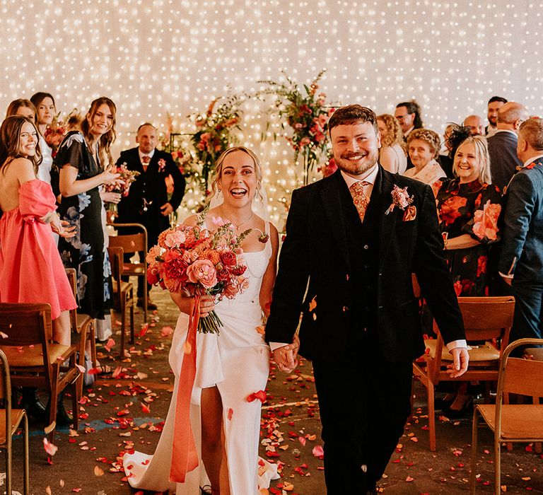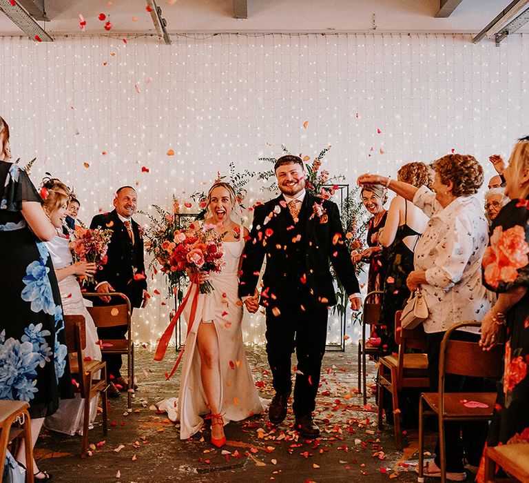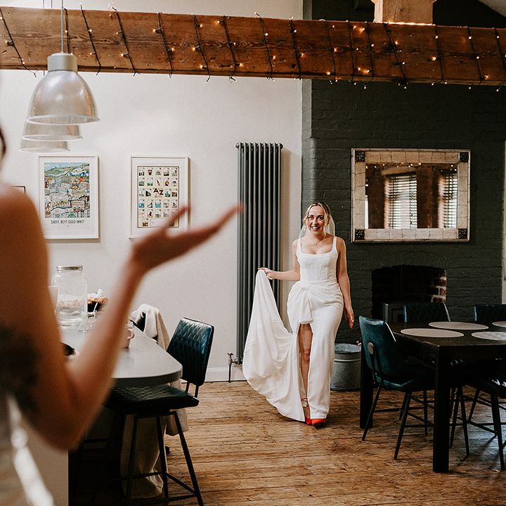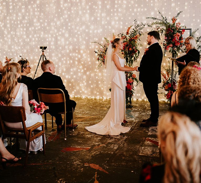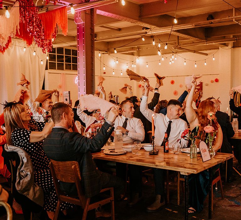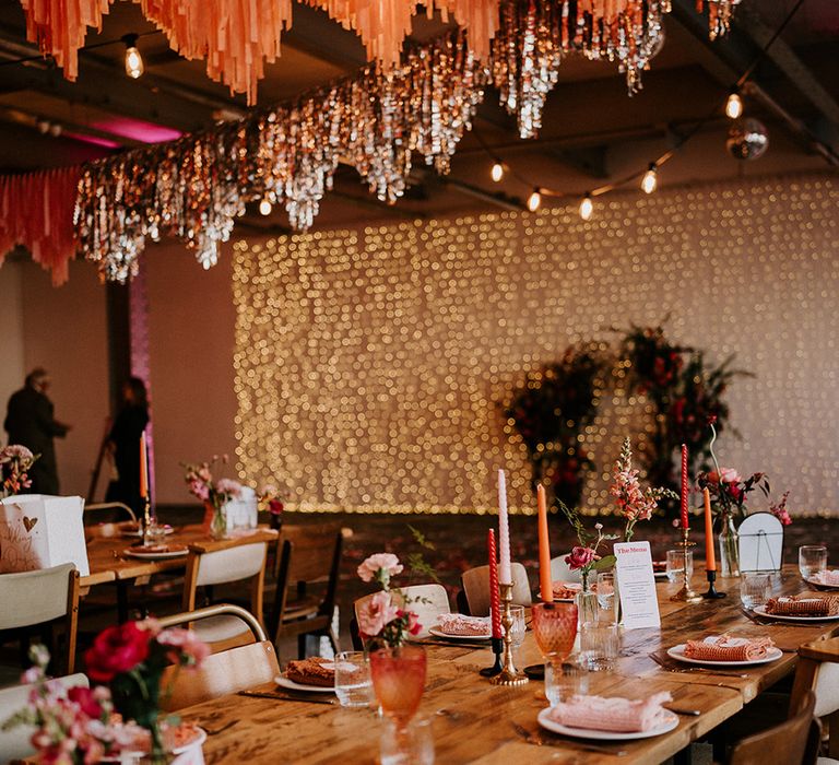 I [Jodie] work in weddings myself at a barn venue, but we knew we wanted to do something different. Choosing Trafalgar Warehouse helped make our wedding unique! It was different to any wedding our guests had been to, and we loved that! It was so fun to decorate and add our touch to a black canvas.