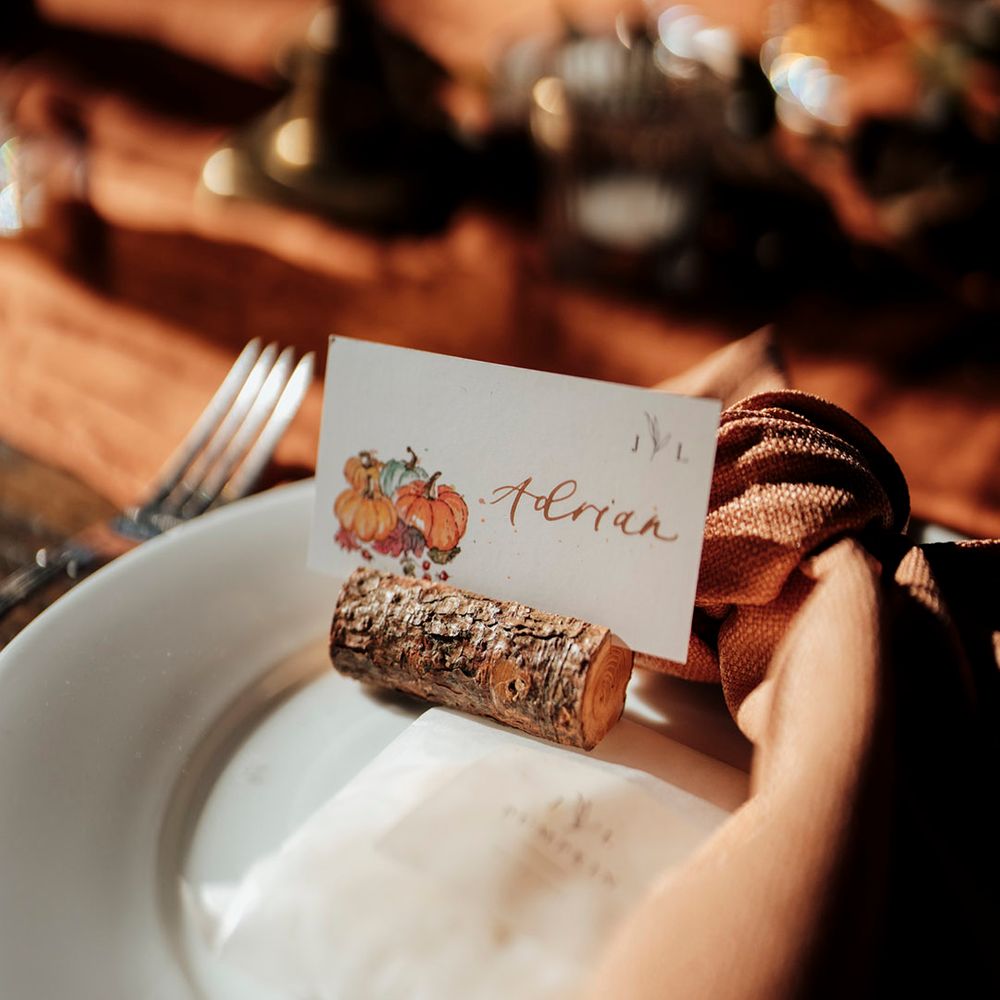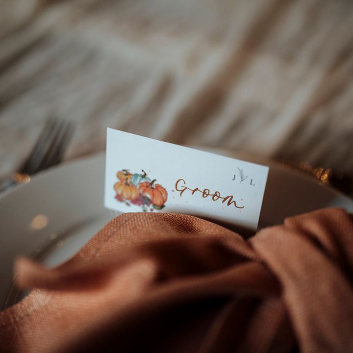 The theme was autumn in all its senses! We wanted to create an intimate, family and cosy autumn wedding. We are both from the wonderful world of theatre, so we definitely wanted to include that without it being too showbiz!