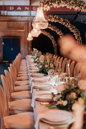 A stylish winter museum wedding featuring opulent styling by Strawberry Maple, a dramatic gallery aisle, live music, and a relaxed luxury party atmosphere at an iconic historic wedding venue.