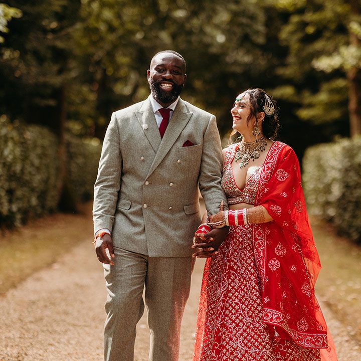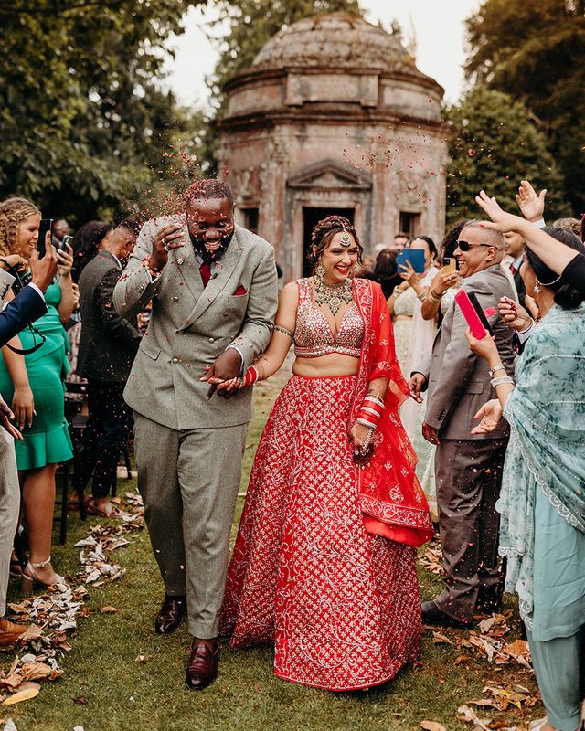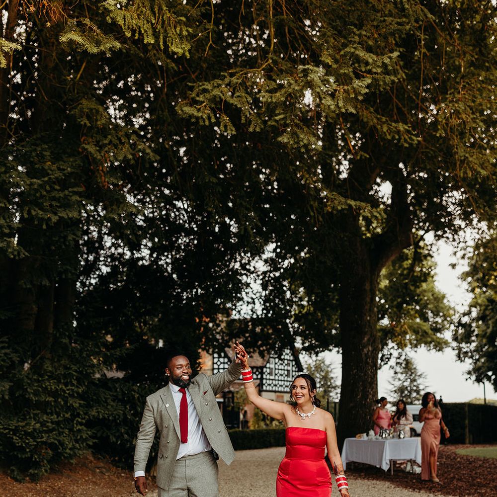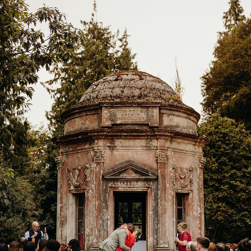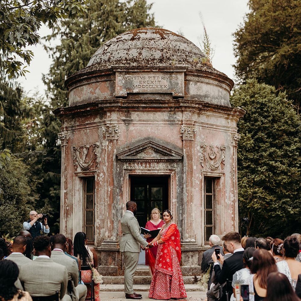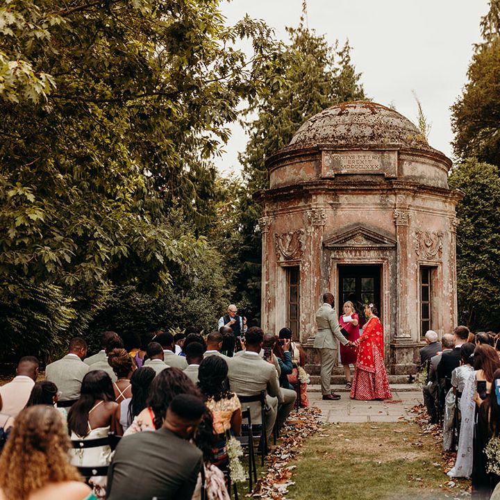 Asha & Kevin's Larmer Tree Gardens wedding was colourful and energetic! The couple completely fell in love with their stunning wedding venue and wanted to use as much of it as possible in their day. They moved seamlessly between different settings, both outdoors and indoors. The guests felt like they were on a wedding adventure, with a total of 6 different settings! From the iconic outdoor wedding ceremony to the luxe wedding breakfast and then heading back outdoors to the stage and live performances, this day is unforgettable. Asha & Kevin didn't use any flowers, the venue had so much natural beauty and they just decided to let Larmer Tree Gardens speak for itself. We don't blame them!