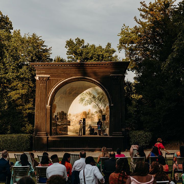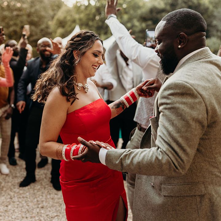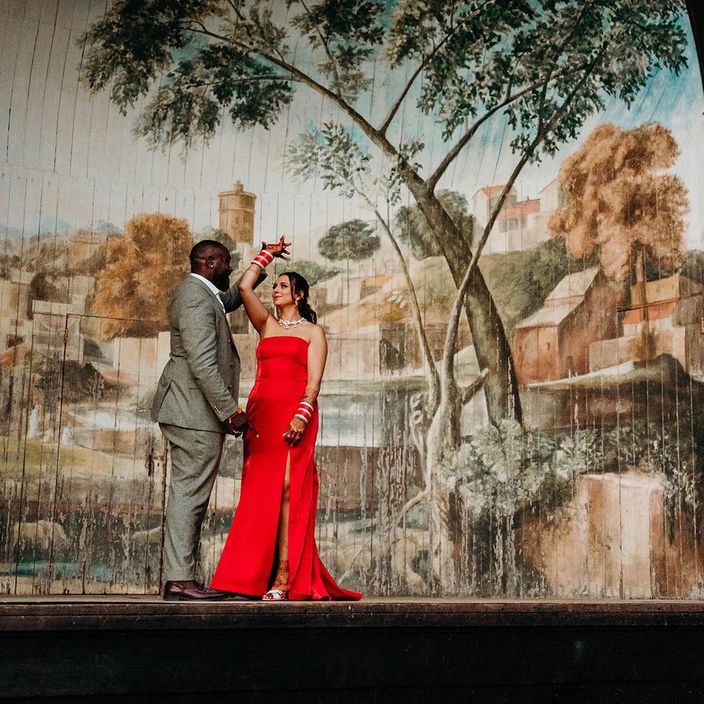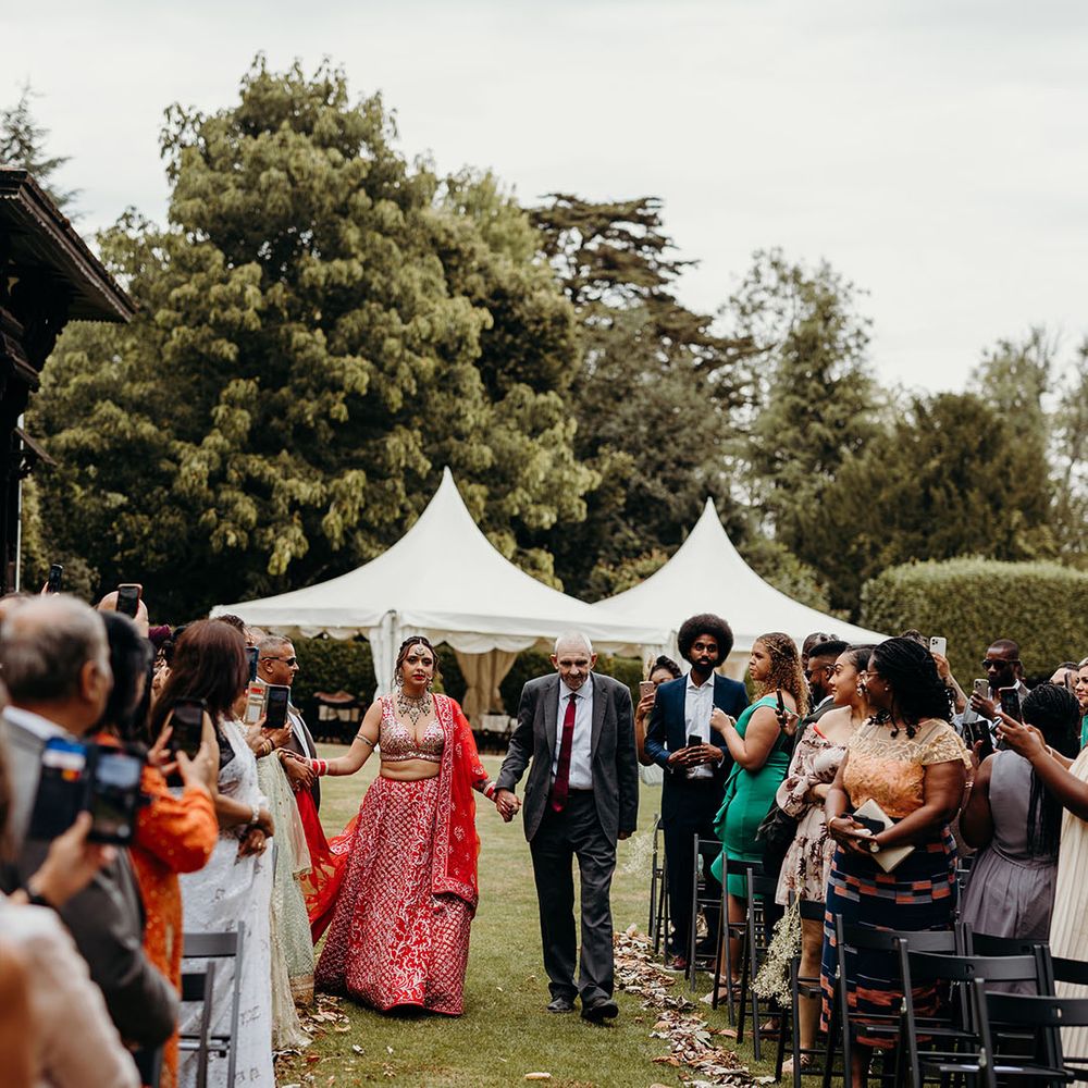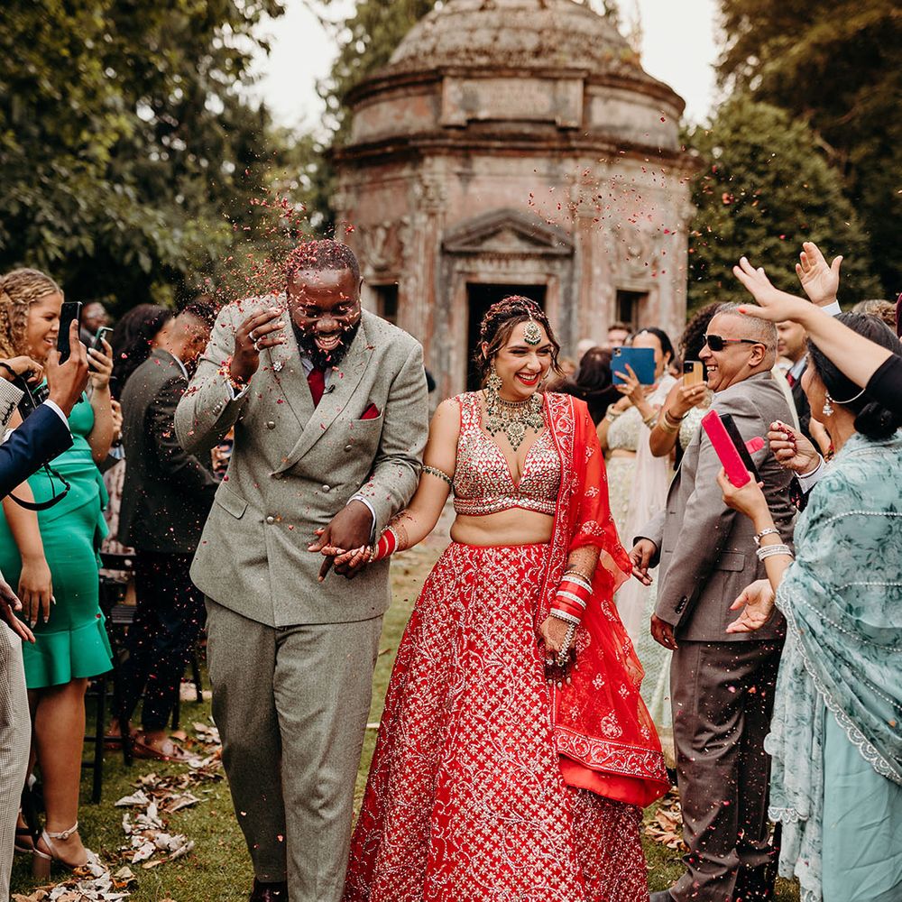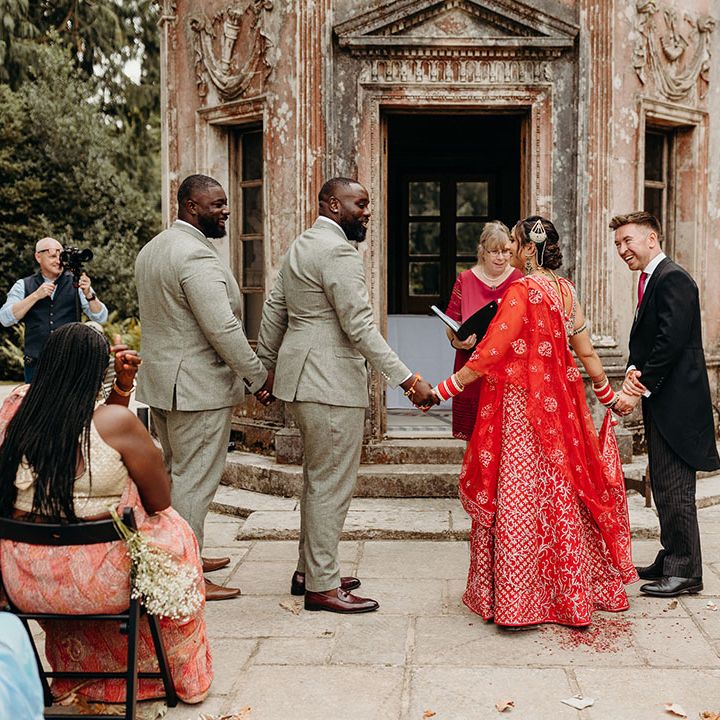 Asha & Kevin's Larmer Tree Gardens wedding was colourful and energetic! The couple completely fell in love with their stunning wedding venue and wanted to use as much of it as possible in their day. They moved seamlessly between different settings, both outdoors and indoors. The guests felt like they were on a wedding adventure, with a total of 6 different settings! From the iconic outdoor wedding ceremony to the luxe wedding breakfast and then heading back outdoors to the stage and live performances, this day is unforgettable. Asha & Kevin didn't use any flowers, the venue had so much natural beauty and they just decided to let Larmer Tree Gardens speak for itself. We don't blame them!