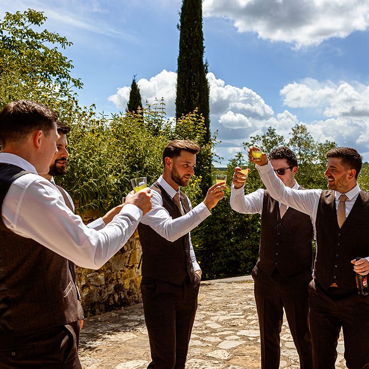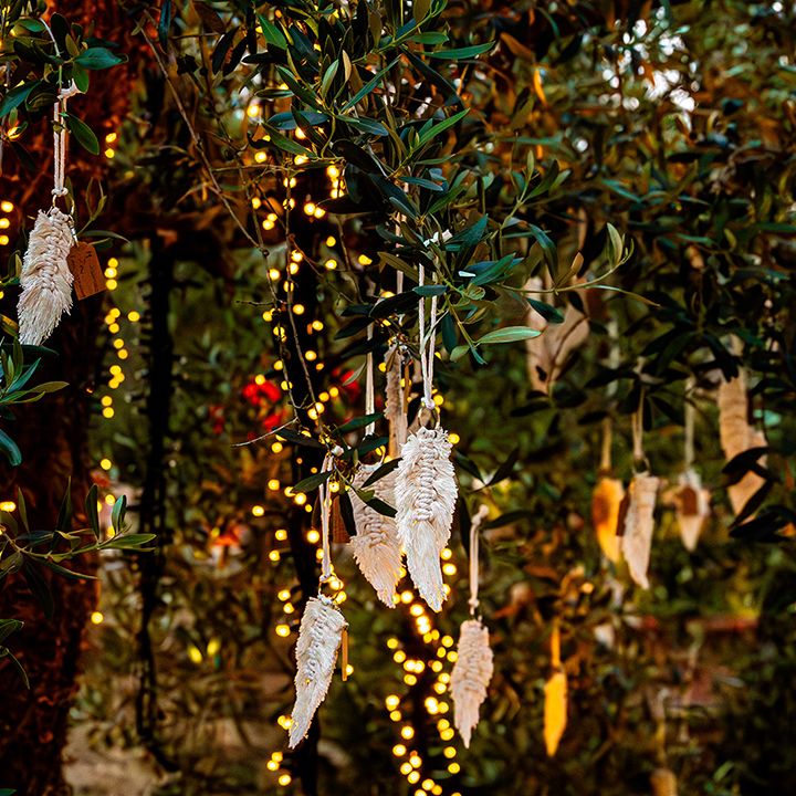 We have so many favourite moments, but one that sticks in my head was that first moment walking down the stone steps to our welcome party and seeing all our favourite people all together, abroad, in this place we'd dreamed about for the past two years. It was so surreal and overwhelming and incredible all at the same time, and we felt so very grateful and lucky to be surrounded by so much love. I loved that we had a prosecco tower complete with cold sparklers in place of a cake cutting – it was so much fun and really kicked off the 'party' section of our wedding in style – plus we got some fab photos! The cold sparklers were a gift from my mum and were a way of bringing some of my dad's 'light' into that special moment and tying in with the lights on our memory tree.
