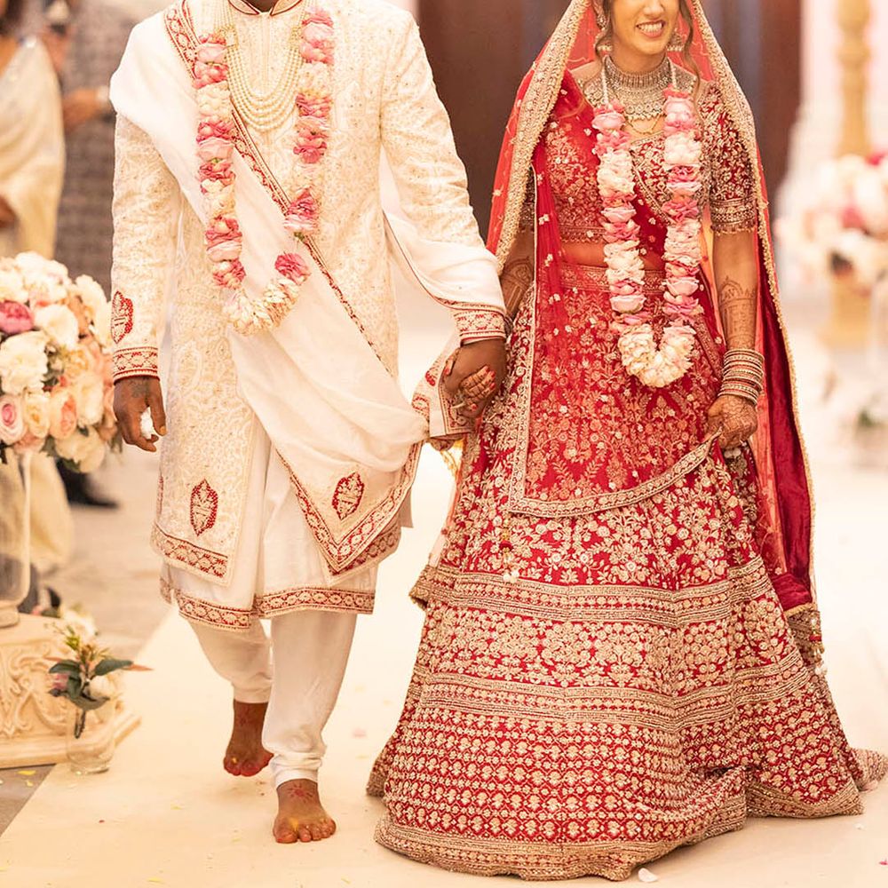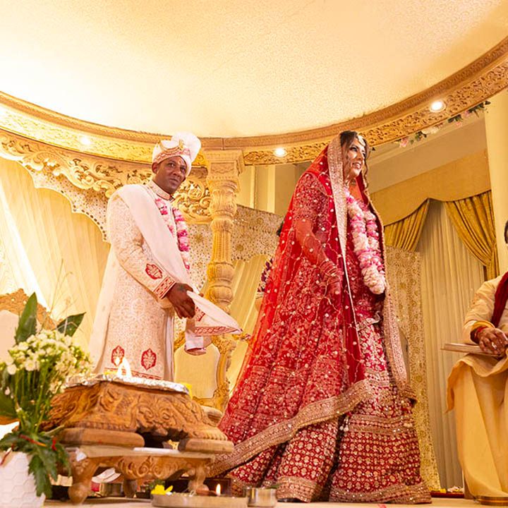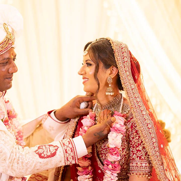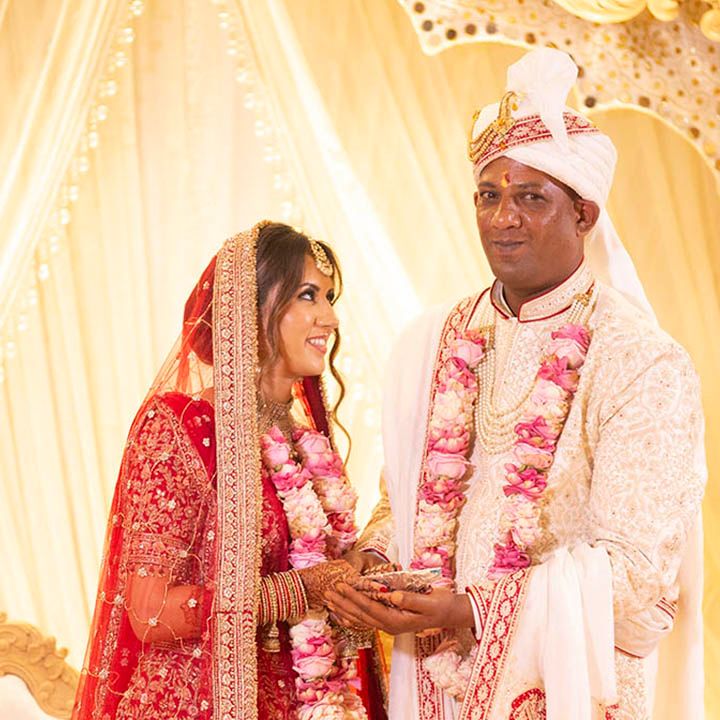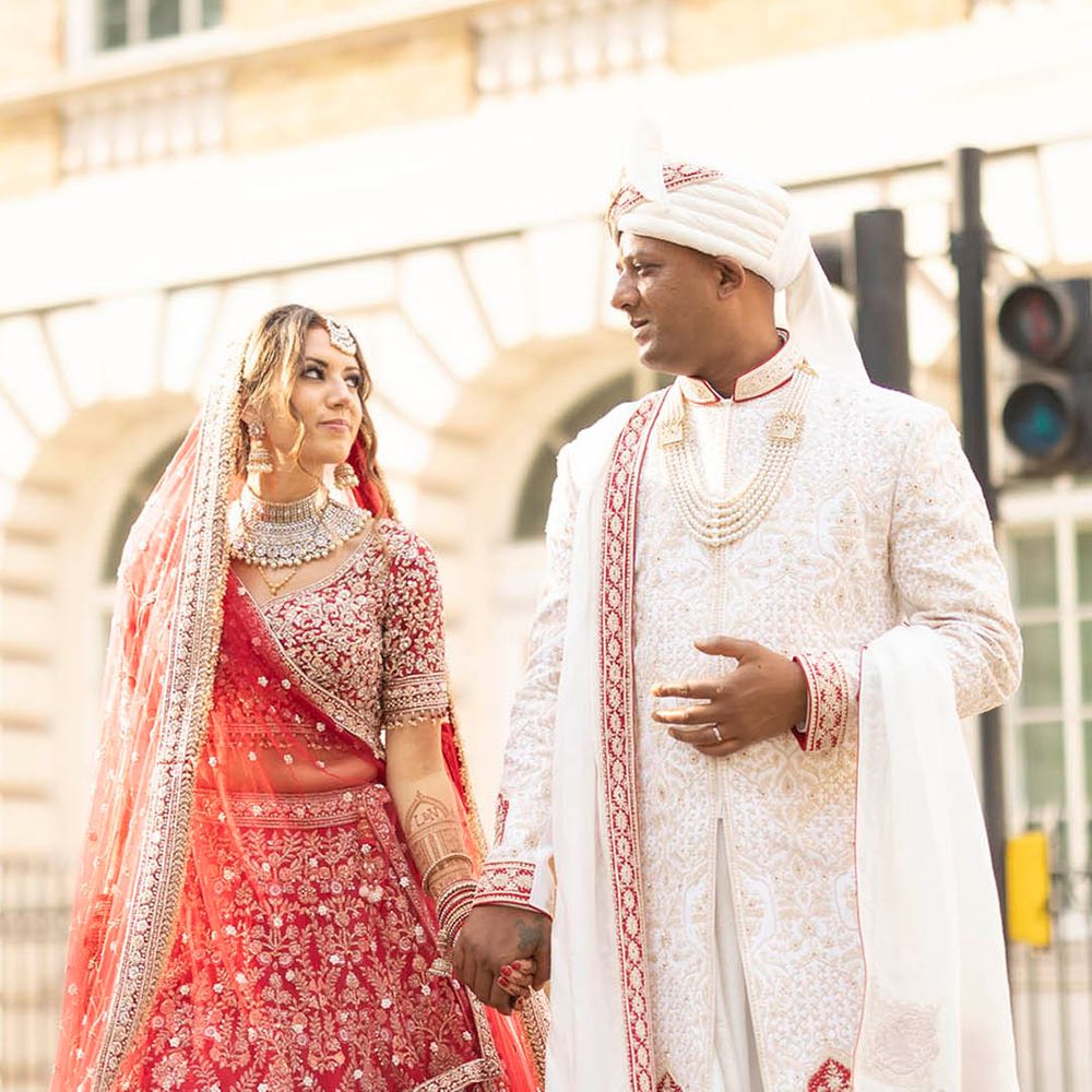 For the Mauritian Hindu wedding, Laura & Nitish wanted more classic vibes, so they chose the Langham in London as their second venue. The beautiful large event space meant the couple could accommodate the different customs within a Hindu wedding. The garden area was perfect for the drinks reception. Again, the colour scheme was red and pink for that classic glam look. Laura is a huge fan of music, so for her, having live musicians was a must. The couple found their musicians through Recommended Supplier, Alive Network. Everyone could just soak up the culture and let loose. Besides the music, the couple really made both days feel like them with lots and lots of personal touches and favours. From personalised tissues to personalised glasses, coat hangers and plenty of other bridesmaid and groomsmen gifts. These gestures of thanks were so important to Laura & Nitish to show appreciation to their guests who have turned up to some of the most special days in their lives.