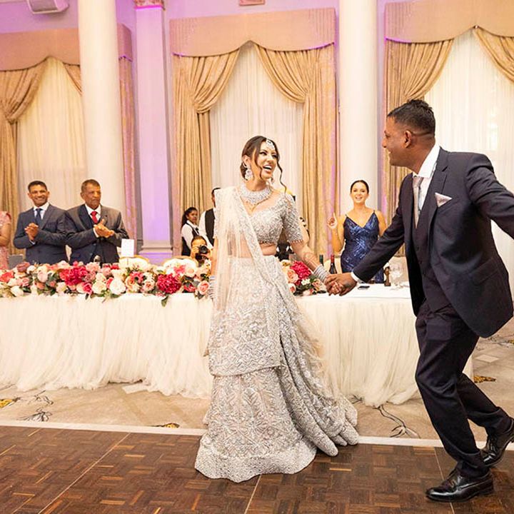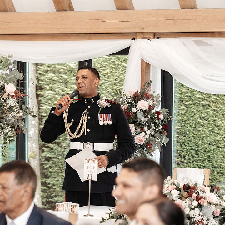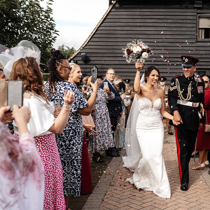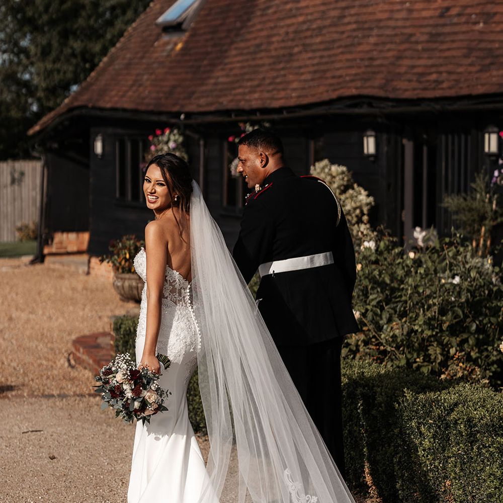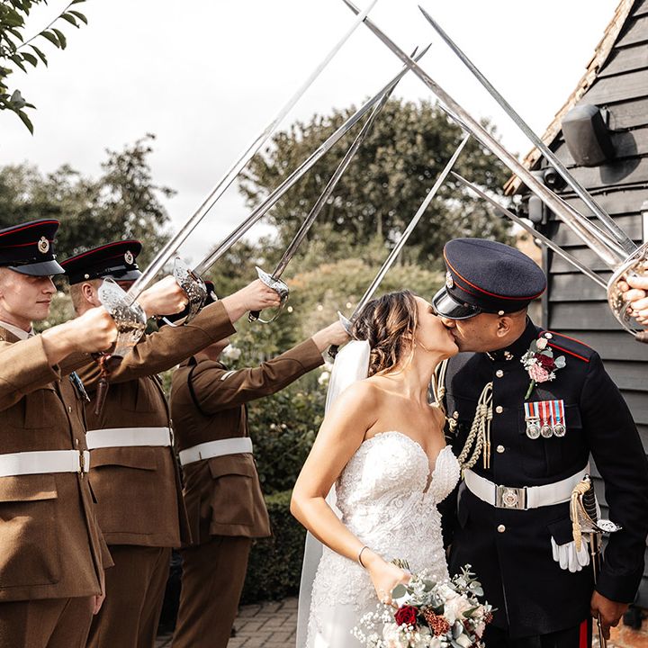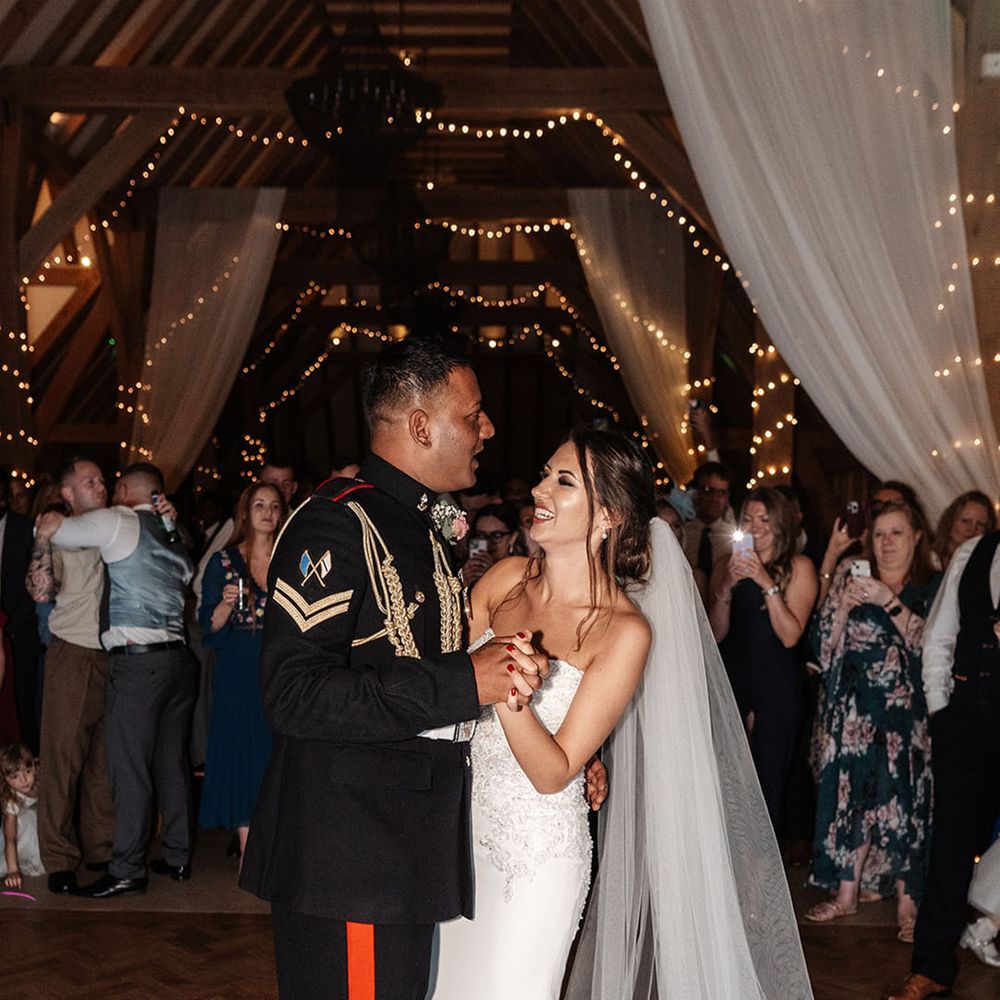 The Old Kent Barn was the backdrop for the reception to Laura & Nitish’s Irish Catholic wedding. The first wedding was a traditional Irish Catholic ceremony with military influence. The aim was to embrace the outdoors, which is why a barn venue made sense. Rather than a rustic look, Laura & Nitish chose more sleek decor, with the colour scheme being burgundy and soft touches of light pink. The stunning flowers by Recommended Supplier, Chic Weddings and Events, matched this palette. The team at Old Kent Barn were brilliant. Laura & Nitish were so impressed by the attention to detail and the food was fantastic! More importantly, the wedding planner, is the one and only Recommended Supplier, Ella Parisa, was an absolute star! She heard the vision and did everything possible to make this couple’s dreams come true. Nitish loved the build-up to the moment of actually getting married. Having a wedding is such a grounding experience that made him appreciate the journey the couple have been on.