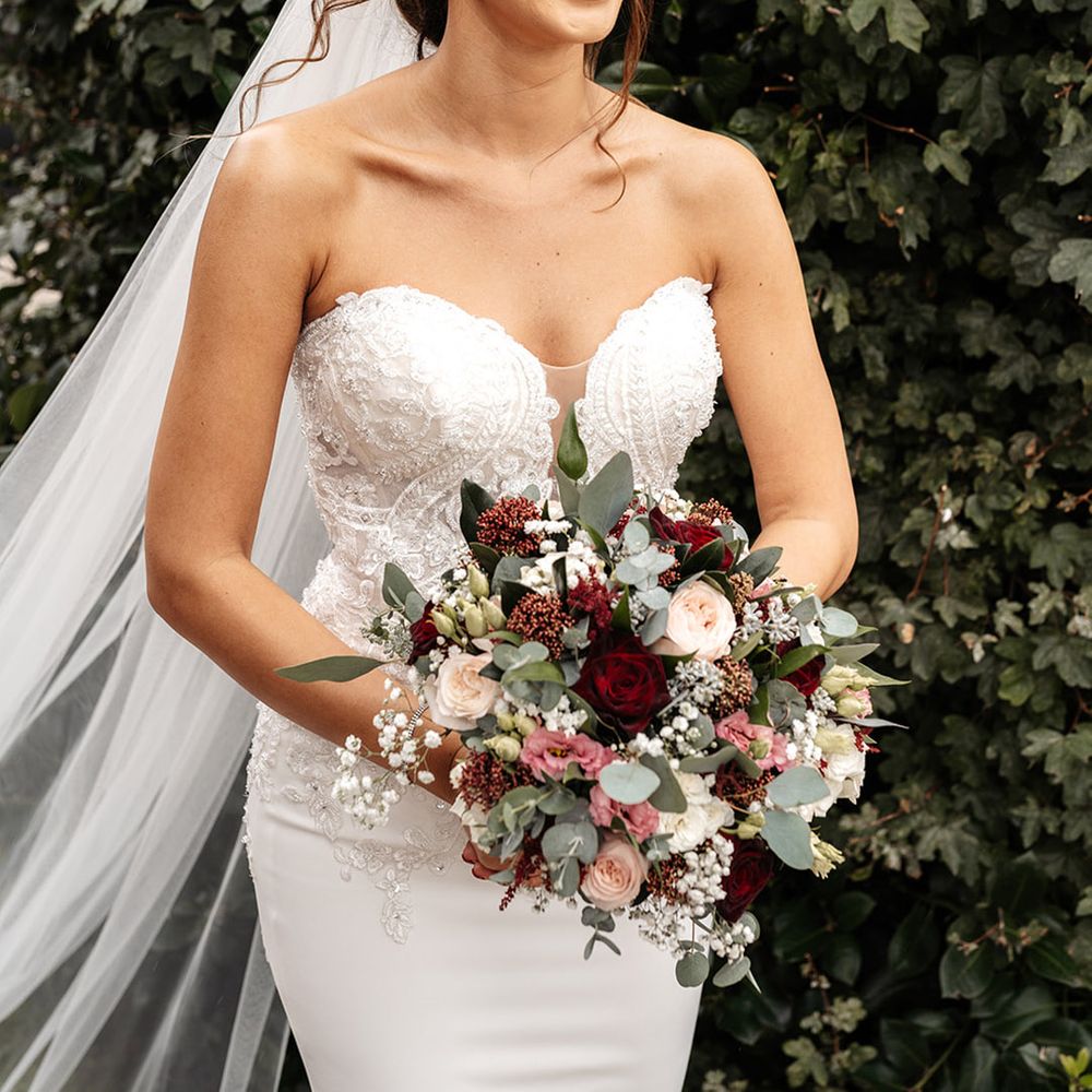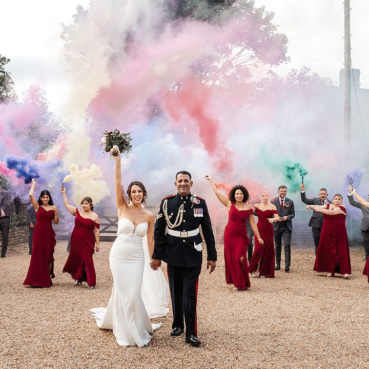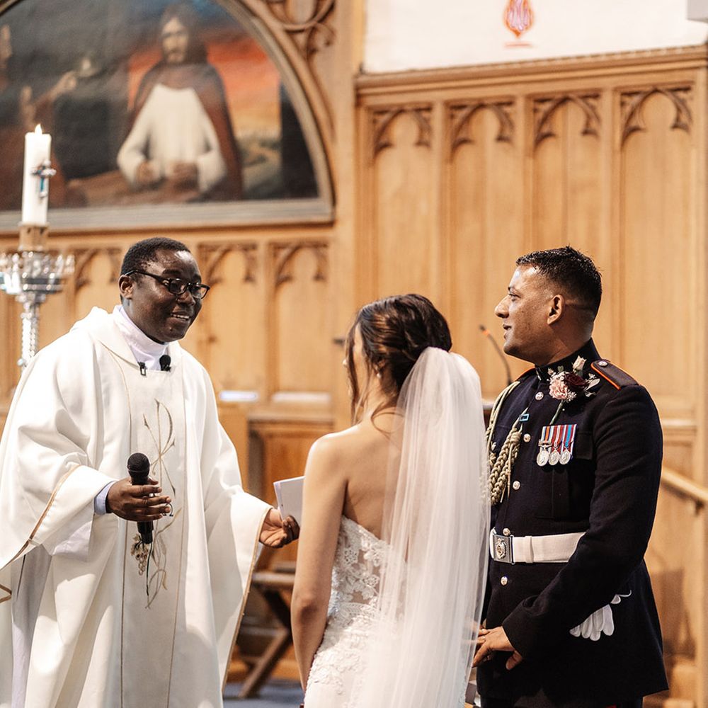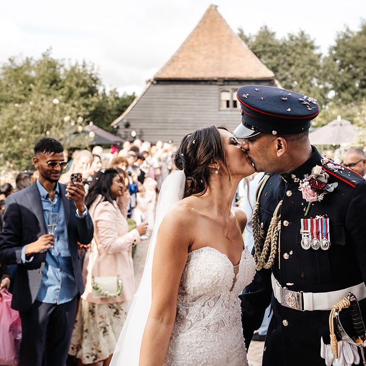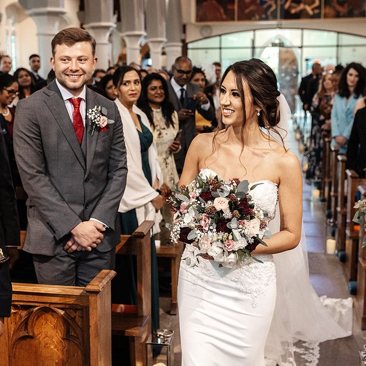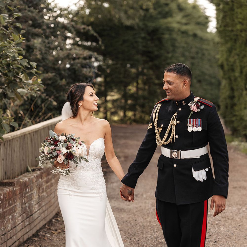 The Old Kent Barn was the backdrop for the reception to Laura & Nitish’s Irish Catholic wedding. The first wedding was a traditional Irish Catholic ceremony with military influence. The aim was to embrace the outdoors, which is why a barn venue made sense. Rather than a rustic look, Laura & Nitish chose more sleek decor, with the colour scheme being burgundy and soft touches of light pink. The stunning flowers by Recommended Supplier, Chic Weddings and Events, matched this palette. The team at Old Kent Barn were brilliant. Laura & Nitish were so impressed by the attention to detail and the food was fantastic! More importantly, the wedding planner, is the one and only Recommended Supplier, Ella Parisa, was an absolute star! She heard the vision and did everything possible to make this couple’s dreams come true. Nitish loved the build-up to the moment of actually getting married. Having a wedding is such a grounding experience that made him appreciate the journey the couple have been on.