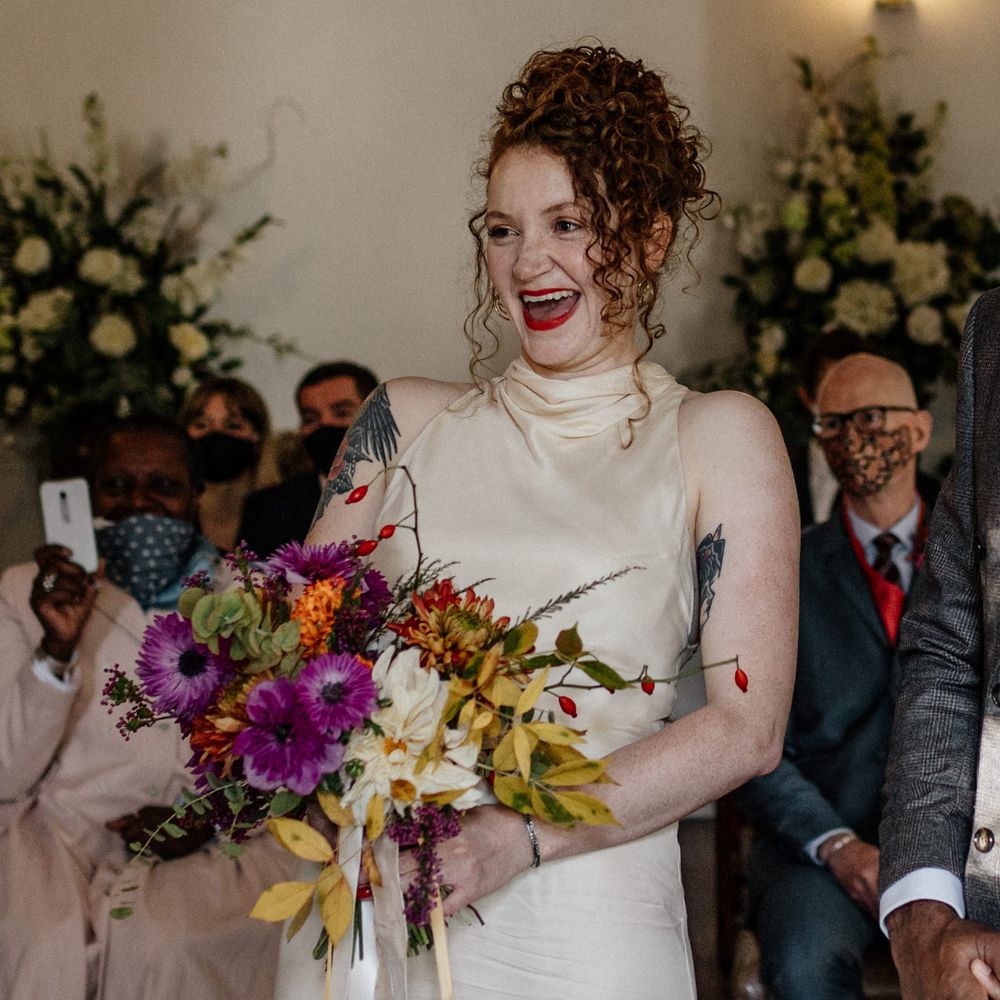 We had already made the call to downsize our 100-guest wedding rather than postponing. But when lockdown #2 happened, we decided to bring it forward again, leaving us with just 48 hours to rearrange our wedding. Luckily, the essential suppliers could co-operate, we already had out outfits and our guests were able to drop everything and join us mid-week. We ended up getting married in our local area with our family and best mates and could afford to spend a bit more on an amazing meal and drinks. The sun even came out for us!