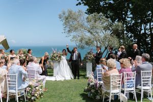 Madeleine and Clint's whirlwind six-week wedding brought Caribbean flair, Middle Eastern bites and a surprise pirate treasure hunt to the UK coast on Valentine's Day!