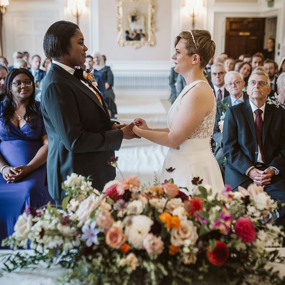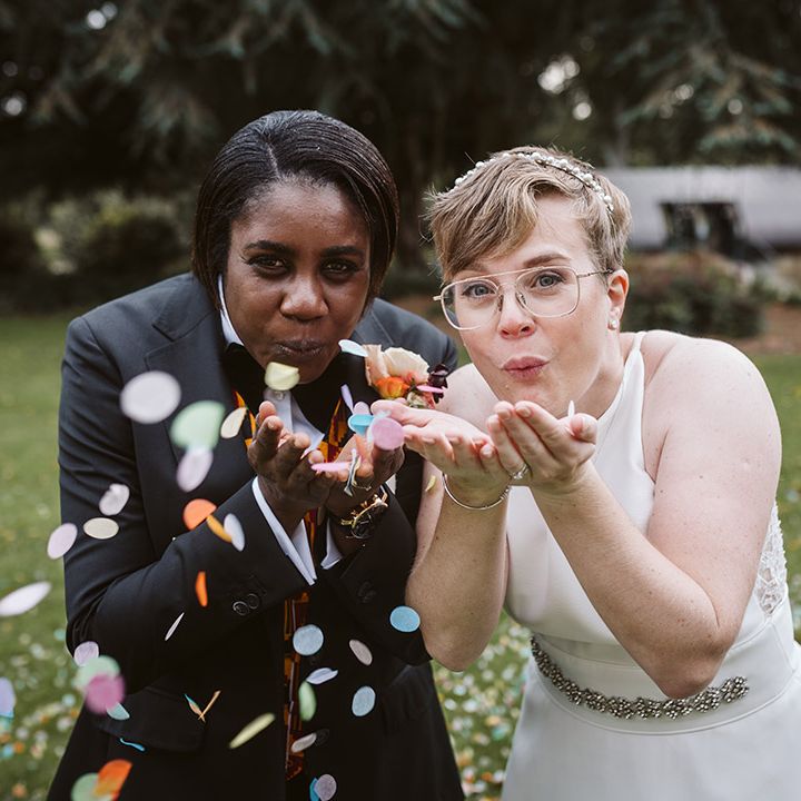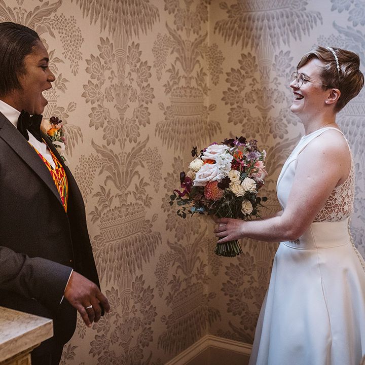 We loved every part of the day! Especially seeing all our friends and family together celebrating us. Two stand-out moments were the first look, which gave us a chance to see each other and calm our nerves before the ceremony. Singing and dancing along with the live band in the evening with our friends was another moment. There were even some roly-polies happening!