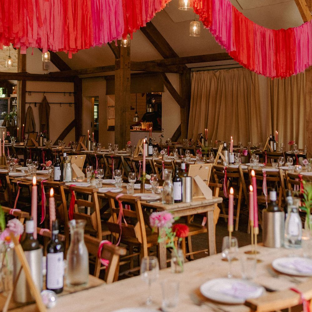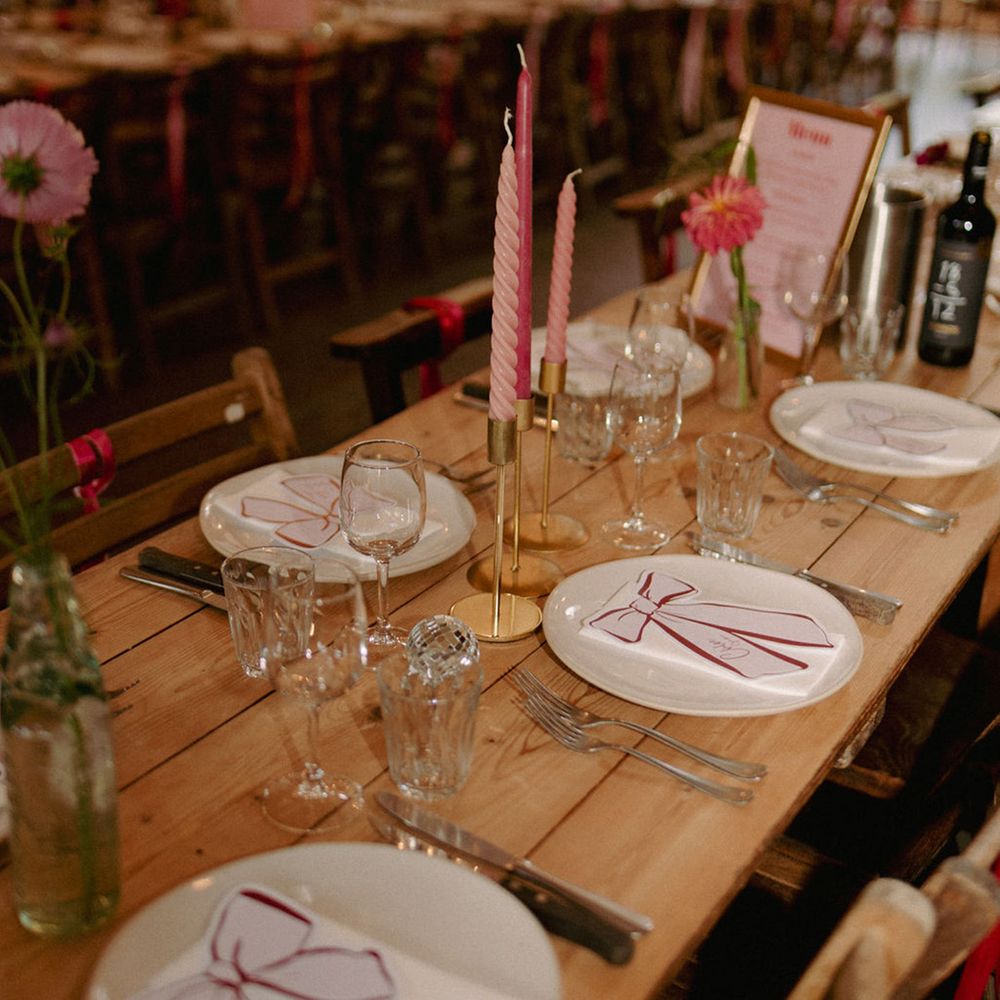 When deciding on the vibe for our wedding day, Rock My Wedding and Pinterest helped a lot with the inspiration. From early on, I was set on pink and red being the colours for the day and adding disco balls, flowers, ribbon and tall dinner candles just brought everything together.