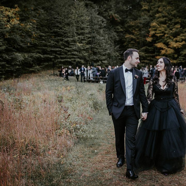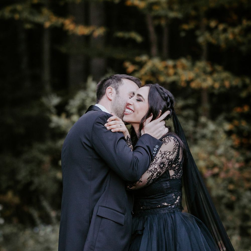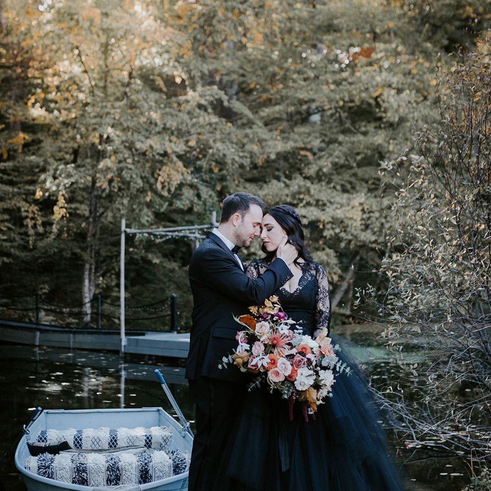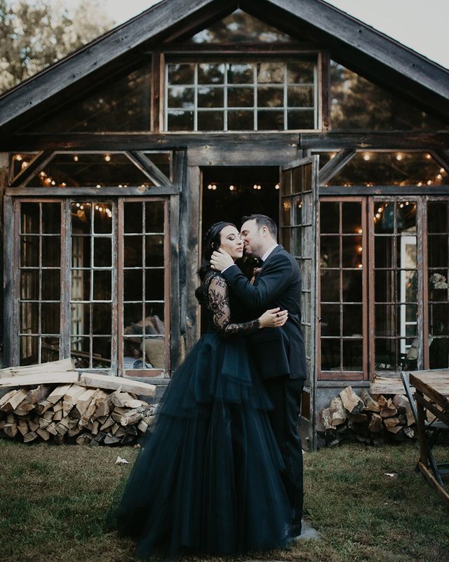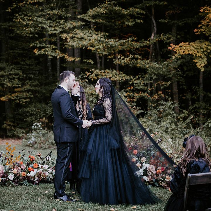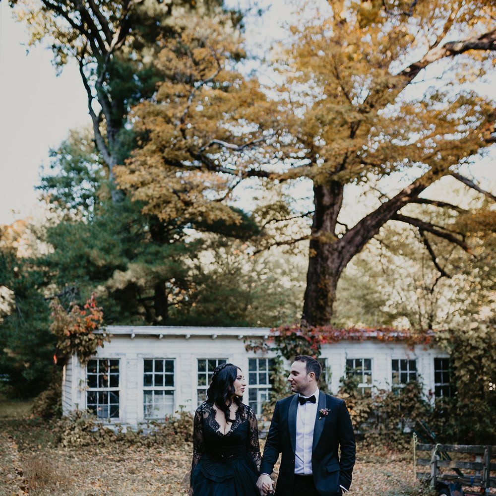 This fall wedding at Foxfire Mountain House transcended the ordinary, embracing the bride's witchy charm and love for Halloween. With her black wedding dress, their unconventional ring tattoos, and the warmth of the foliage at Foxfire Mountain House, everything was absolutely perfect. As a wedding photographer, capturing this enchanting love story, a real-life fairytale made of autumnal magic and everlasting commitment, was an absolute joy.