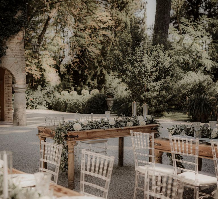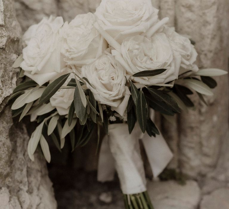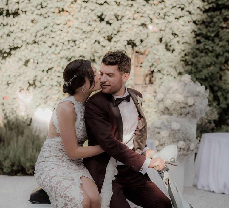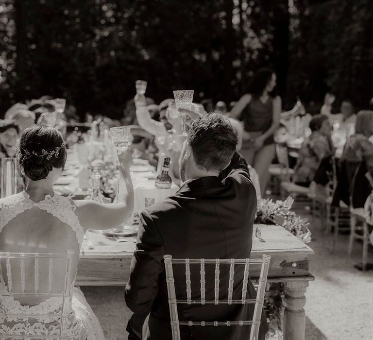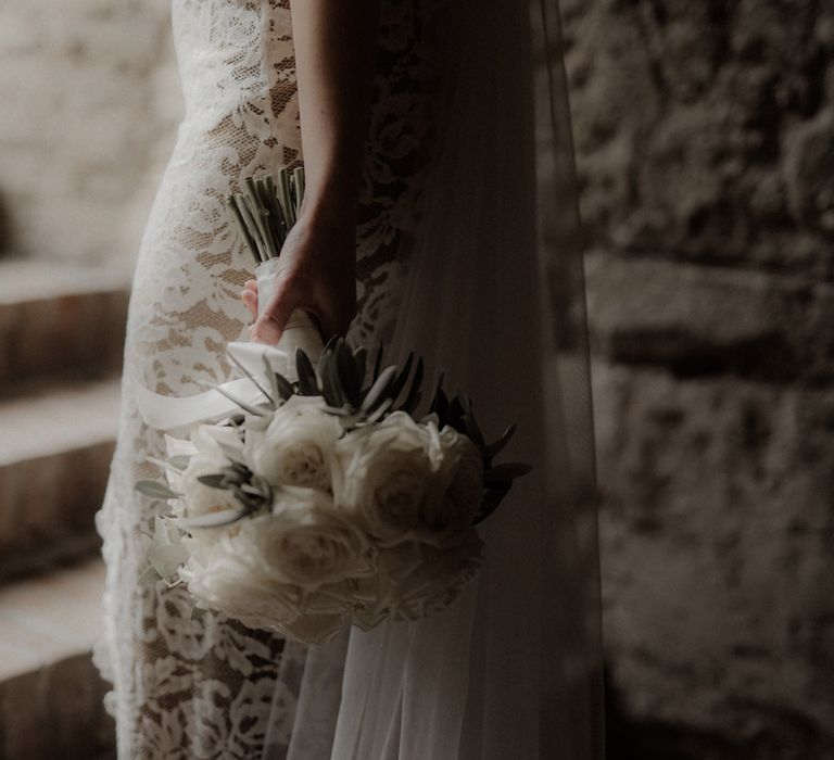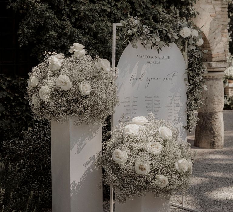 Natalie & Marco’s wedding ceremony and reception were decorated with white roses, gypsophila and white signage for that timeless feel. The couple had guests coming from different parts of the world including Australia, so it was important to Natalie & Marco that their guests felt at home and relaxed. They opted for an intimate wedding dinner party where they could enjoy the food, weather, music and their loved ones all at once. Natalie & Marco’s wedding was a multi-lingual event. The bride’s brother and groom’s sister acted as the celebrants. The groom’s sister led the ceremony in Italian, followed by the bride’s brother in English. We’re just in love with the welcoming, homely vibe that this couple created for their day.
