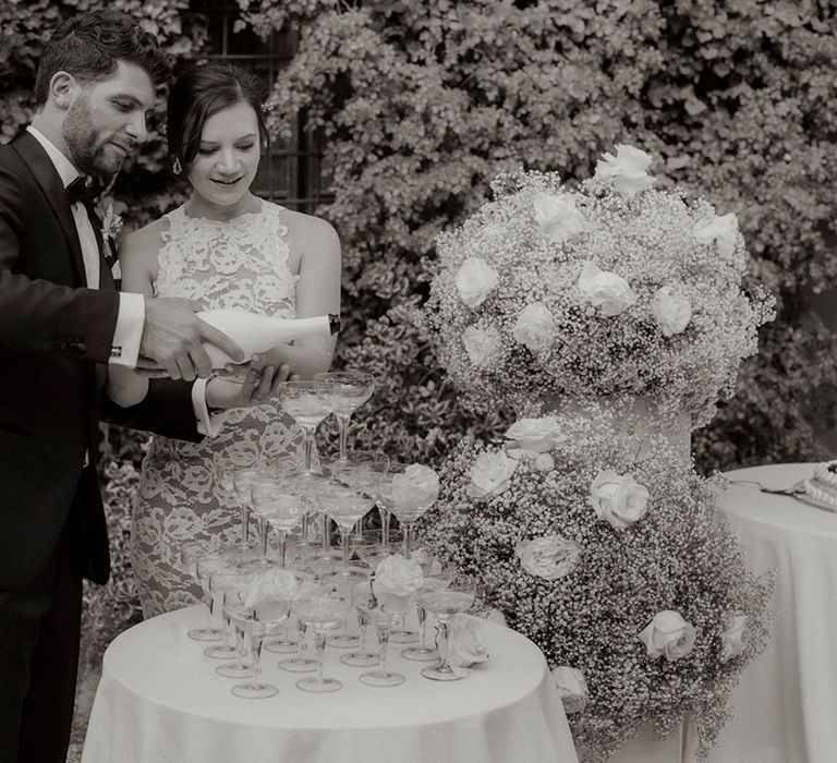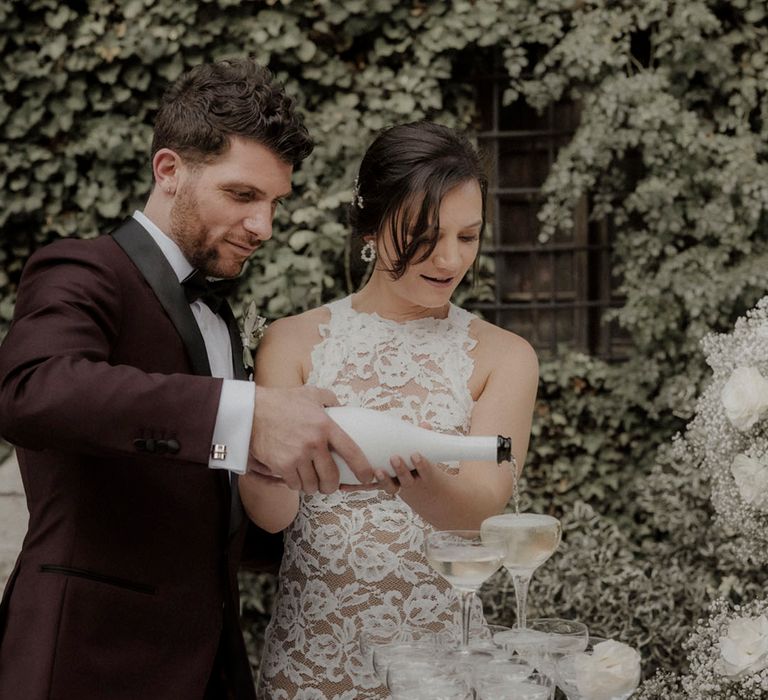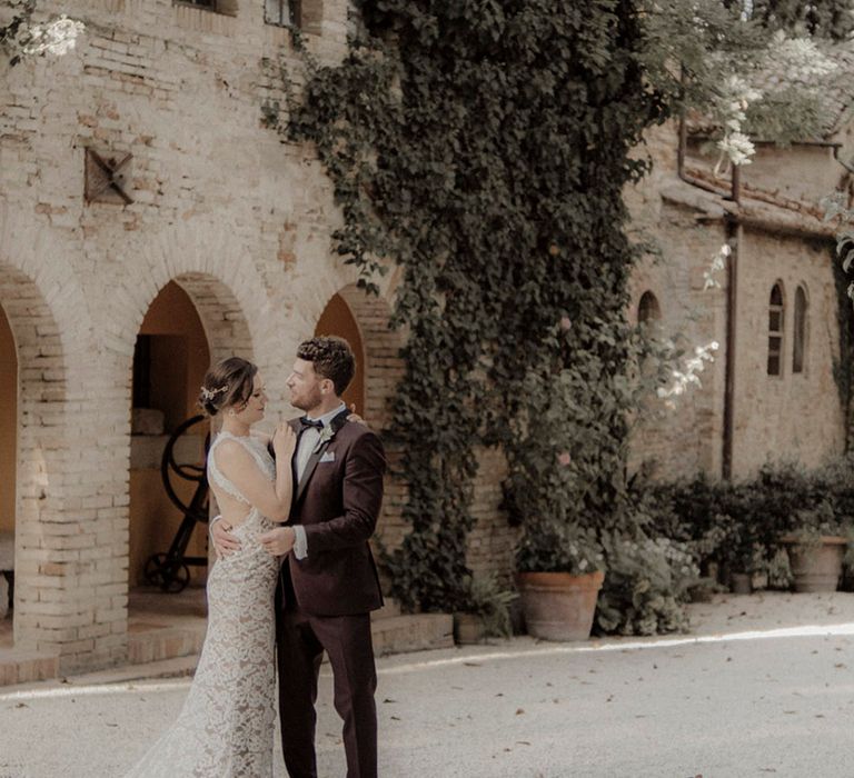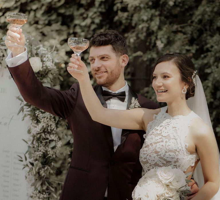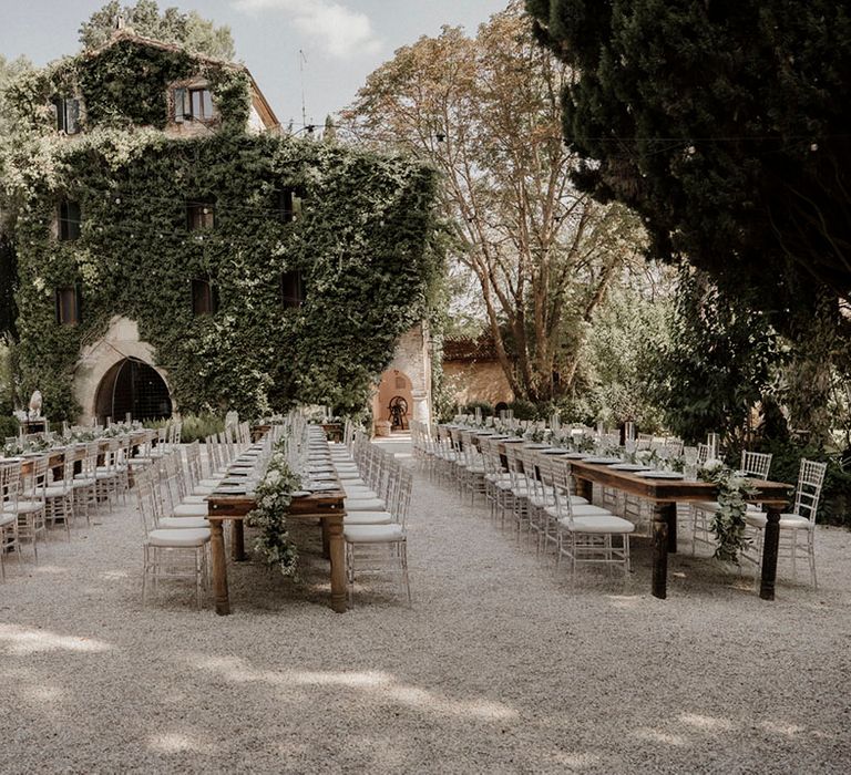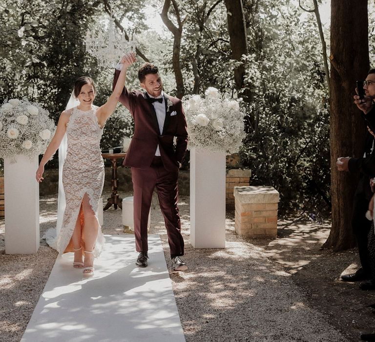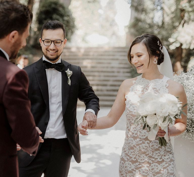 Natalie & Marco’s wedding ceremony and reception were decorated with white roses, gypsophila and white signage for that timeless feel. The couple had guests coming from different parts of the world including Australia, so it was important to Natalie & Marco that their guests felt at home and relaxed. They opted for an intimate wedding dinner party where they could enjoy the food, weather, music and their loved ones all at once. Natalie & Marco’s wedding was a multi-lingual event. The bride’s brother and groom’s sister acted as the celebrants. The groom’s sister led the ceremony in Italian, followed by the bride’s brother in English. We’re just in love with the welcoming, homely vibe that this couple created for their day.