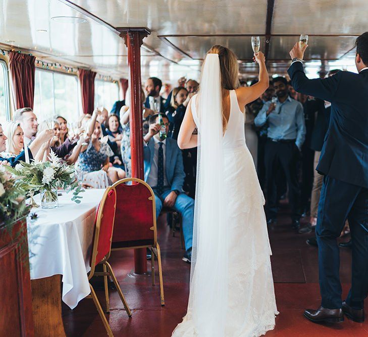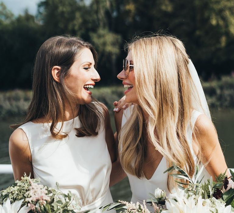 We wanted the day to be chilled, fun and not too traditional - pretty much just a riverside garden party (with a champagne reception boat trip!). We didn't really have any decorations as we thought the venues were beautiful as they were and just added some floral arrangements throughout.